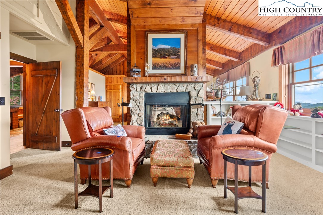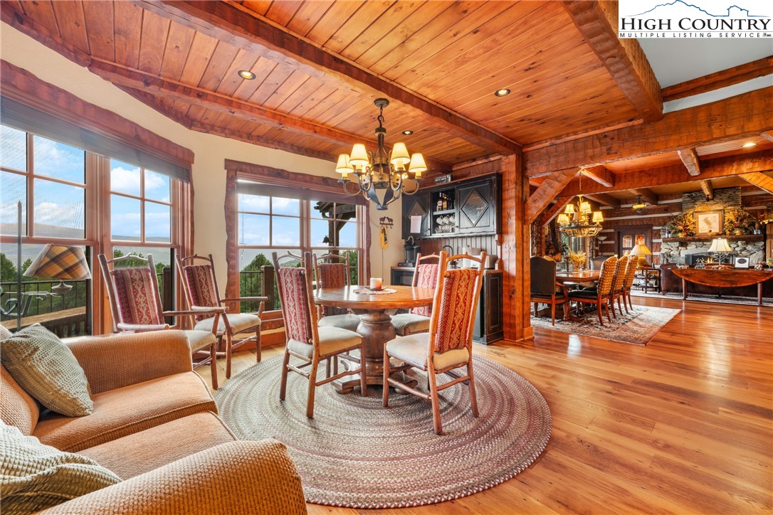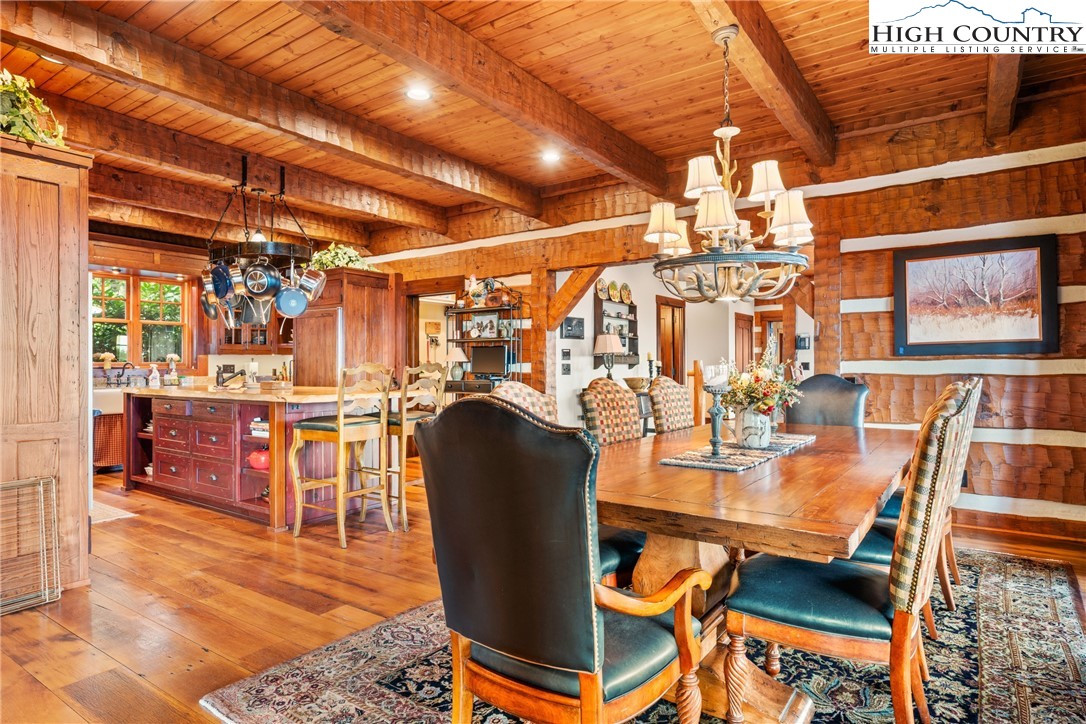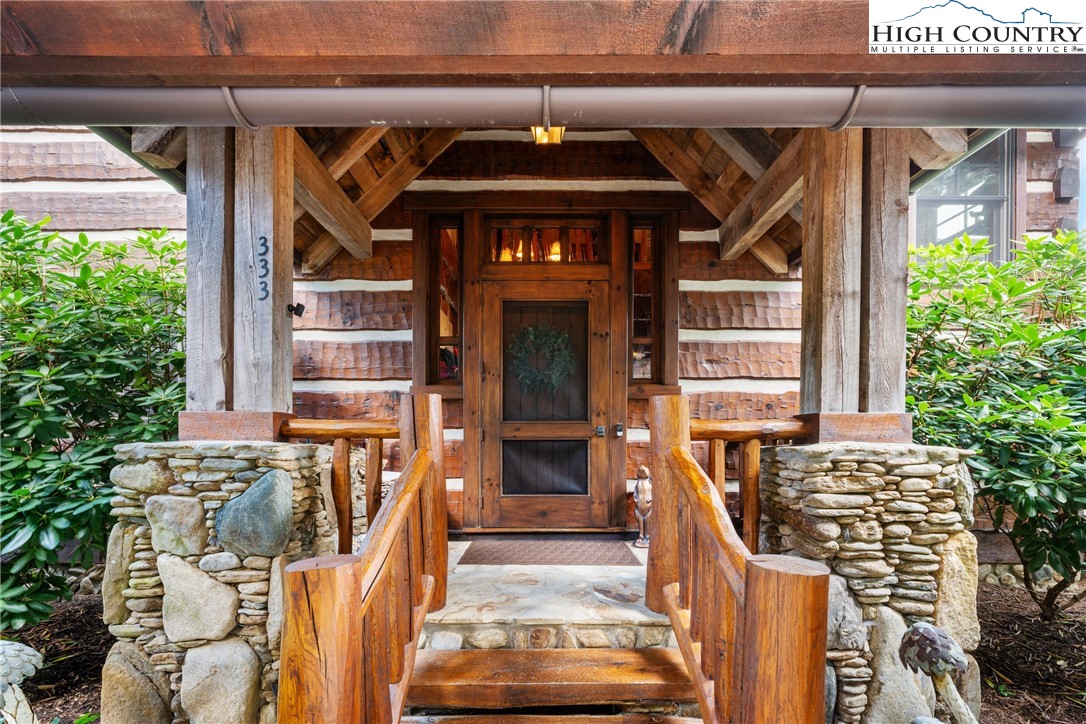 Welcome to 333 Windy Ridge Road in Vilas, an exquisite log and timber frame residence crafted by noted builder Mark Kirkpatrick. The home is situated on almost 14 acres with exquisite landscaping and over 6,900 square feet of heated living area. Positioned to capture unobstructed long-range views, the home is oriented for passive solar exposure, enhancing natural light throughout the interior. A substantial timber porte-cochere and a hand-constructed stone and round log portico introduce the residence, reflecting the integrity of its log and timber construction. Inside, wide plank recycled wood flooring and custom doors extend throughout, reinforcing a cohesive material palette. The residence offers four bedroom suites, including a primary suite with a den and private office. Seven fireplaces, including wood burning and gas, are integrated across multiple living spaces. The main level includes a great room, dining area and a kitchen appointed with Viking and Sub-Zero appliances, centered by a handcrafted maple live-edge island plus an adjacent walk-in pantry. A spacious family room with a wet bar, an additional bedroom suite and an exercise room are located on the lower level, providing flexible living arrangements. Upstairs is another beautiful suite plus a large office/den. Additional features include an elevator, central vacuum system, radon mitigation system, tankless water heater, generator and security system. Garage capacity includes an attached lower-level garage and a detached structure suitable for recreational vehicles and additional storage, complemented by a workshop. Most furnishings are included, with select exclusions to be removed prior to closing. This extraordinary home is for those who value the best quality and a serene lifestyle with abundant nature all around. The tax measurements and professional measurements have a discrepancy. We have no explanation but will say the numbers are different every time this home is measured.