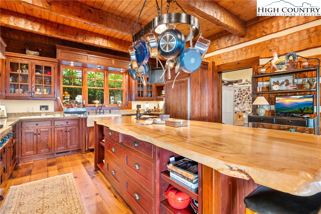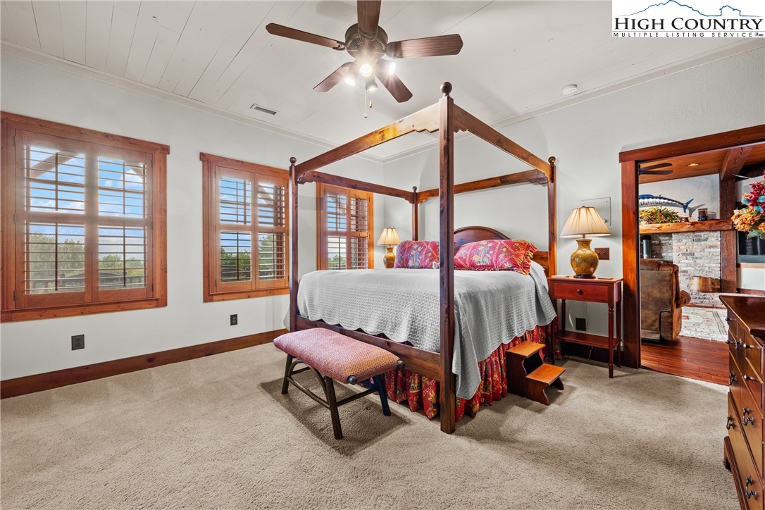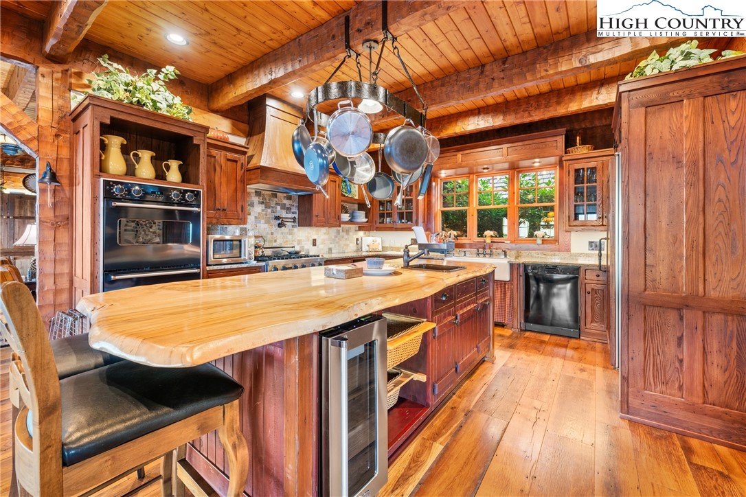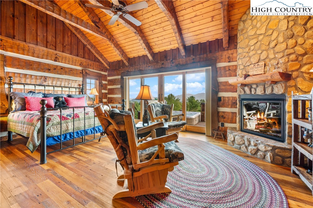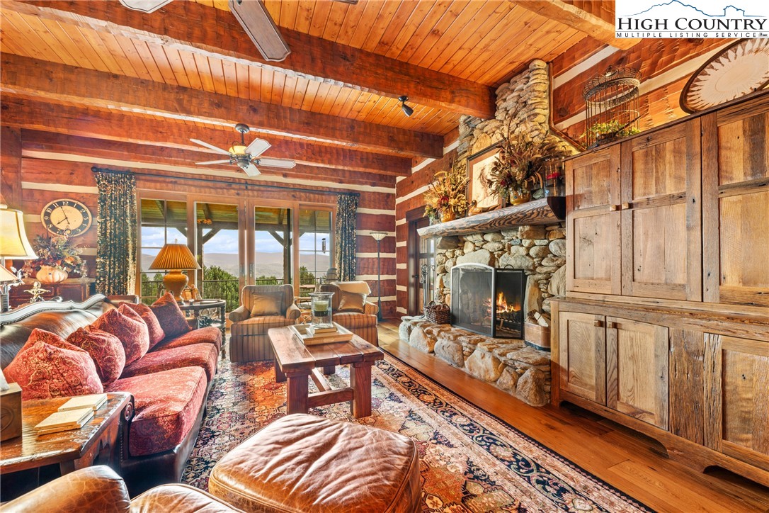 Welcome to 333 Windy Ridge Road in Vilas, an exquisite log and timber frame residence crafted by noted builder Mark Kirkpatrick. The home is situated on almost 14 acres with exquisite landscaping and over 6,900 square feet of heated living area. Positioned to capture unobstructed long-range views, the home is oriented for passive solar exposure, enhancing natural light throughout the interior. A substantial timber porte-cochere and a hand-constructed stone and round log portico introduce the residence, reflecting the integrity of its log and timber construction. Inside, wide plank recycled wood flooring and custom doors extend throughout, reinforcing a cohesive material palette. The residence offers four bedroom suites, including a primary suite with a den and private office. Seven fireplaces, including wood burning and gas, are integrated across multiple living spaces. The main level includes a great room, dining area and a kitchen appointed with Viking and Sub-Zero appliances, centered by a handcrafted maple live-edge island plus an adjacent walk-in pantry. A spacious family room with a wet bar, an additional bedroom suite and an exercise room are located on the lower level, providing flexible living arrangements. Upstairs is another beautiful suite plus a large office/den. Additional features include an elevator, central vacuum system, radon mitigation system, tankless water heater, generator and security system. Garage capacity includes an attached lower-level garage and a detached structure suitable for recreational vehicles and additional storage, complemented by a workshop. Most furnishings are included, with select exclusions to be removed prior to closing. This extraordinary home is for those who value the best quality and a serene lifestyle with abundant nature all around. The tax measurements and professional measurements have a discrepancy. We have no explanation but will say the numbers are different every time this home is measured.