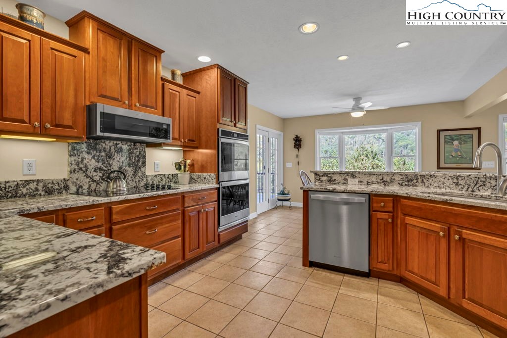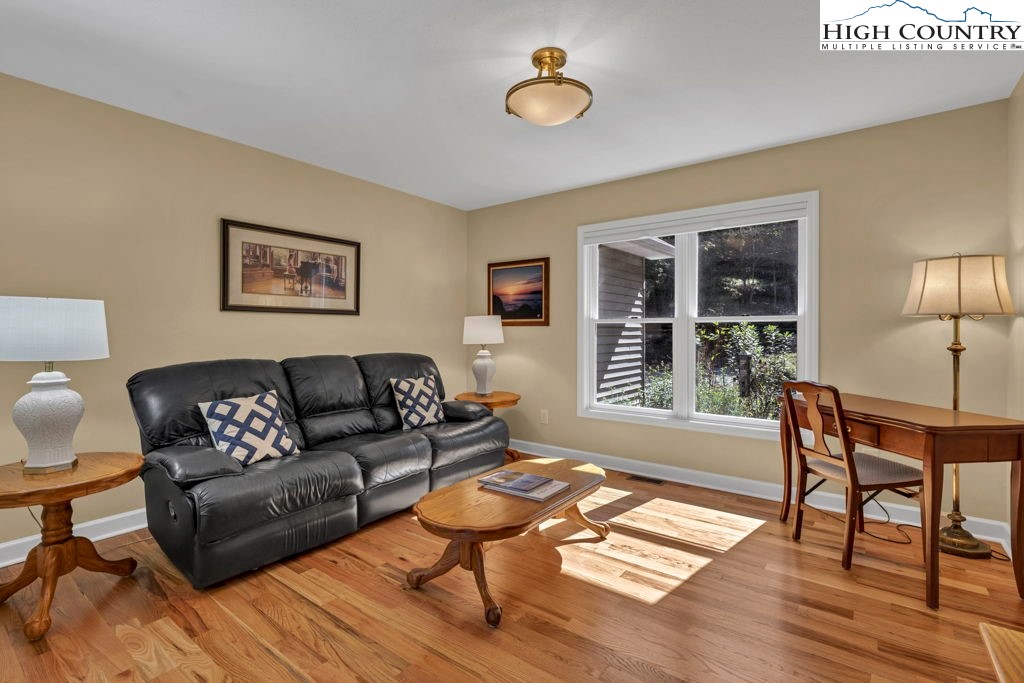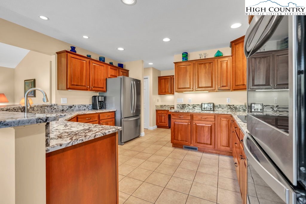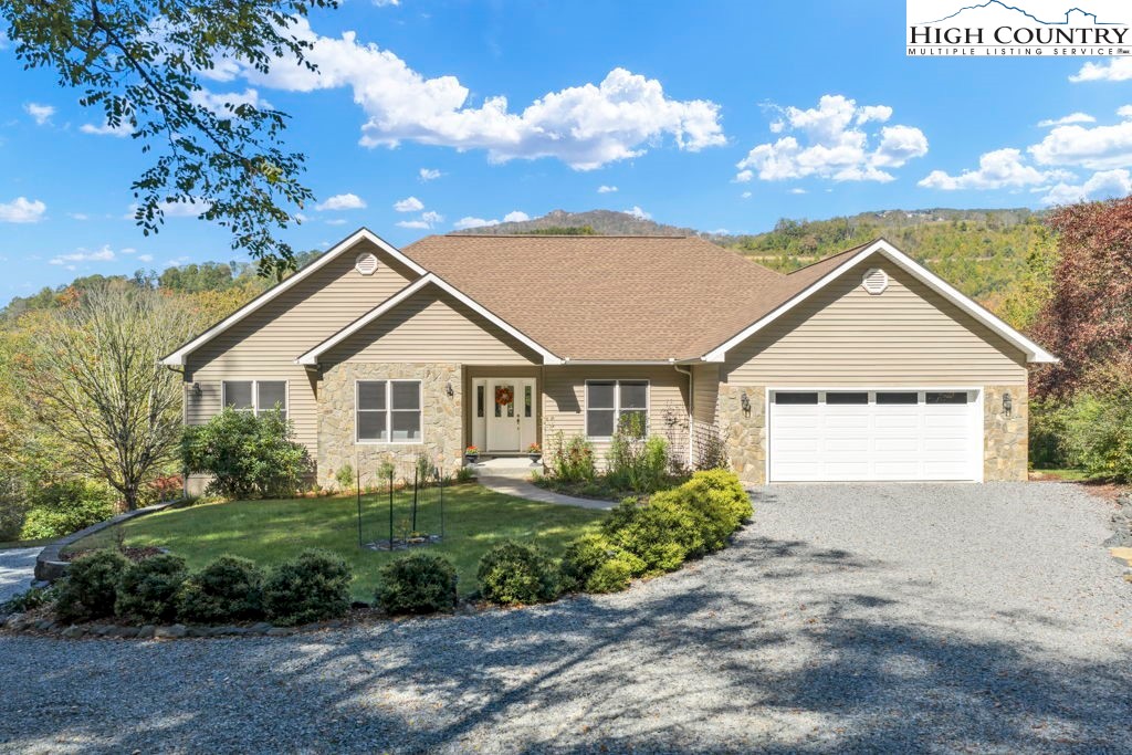 This beautiful and meticulously maintained home is located in the town limits of Banner Elk with easy access to the Banner Elk Park and the downtown area. The main level offers first floor living with two bedrooms and a full bath, plus a large primary suite featuring a walk-in closet, separate vanity and shower area, a den, and fabulous deck access with a great view of Beech Mountain. A formal dining room, spacious living room, partially vaulted ceilings, a kitchen with cherry cabinets, new appliances, granite countertops, a built-in desk, and laundry area complete the main floor. A convenient two car garage is also located on this level. The finished basement provides two additional bedrooms or office space, a full bath, an extra flex space, a large storage area, and a one car garage with a separate entrance. In total, the home offers five spacious bedrooms, multiple entertainment areas, and abundant closet and storage space throughout. Recent updates include a new roof (2021), new HVAC system, new kitchen appliances, new carpet and hardwood floors, new window treatments and more. The property has been thoughtfully maintained inside and out, with a beautifully landscaped and manicured 1.87 acre corner lot. Fabulous views can be enjoyed from the living room, kitchen, dining room, and primary bedroom. The setting is excellent for mornings with coffee on the porch while taking in the mountains or evening drinks by the firepit. Located a short distance from the village of Banner Elk, this home is only minutes to both Sugar Mountain and Beech Mountain ski resorts. With its prime location, generous layout, and significant updates already in place, this property offers an excellent opportunity for buyers to add their own personal touch and create their personalized mountain retreat.