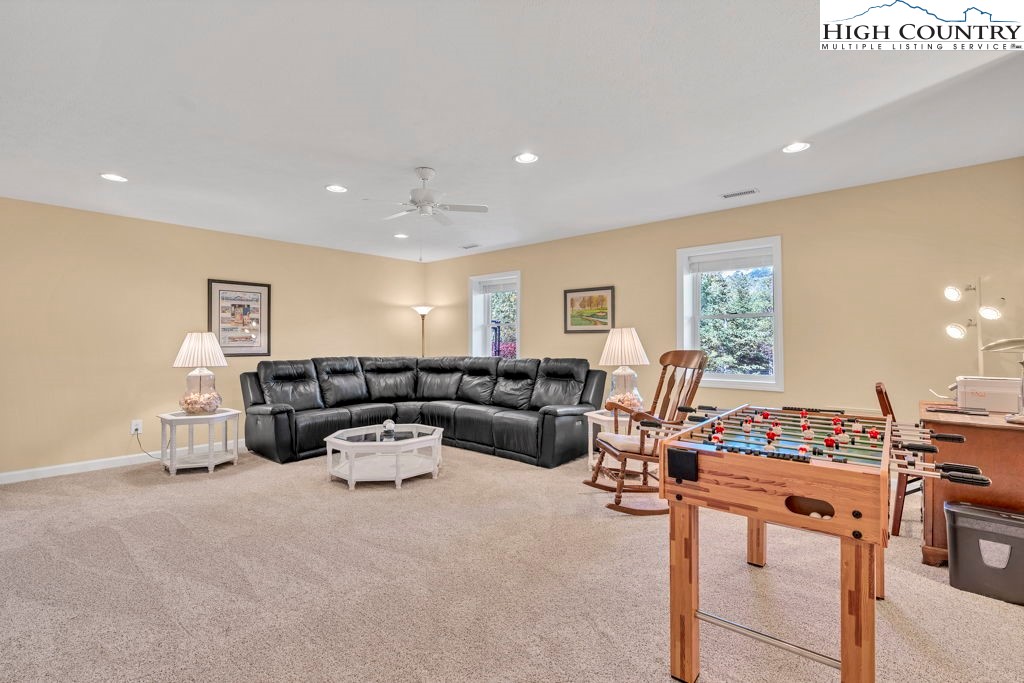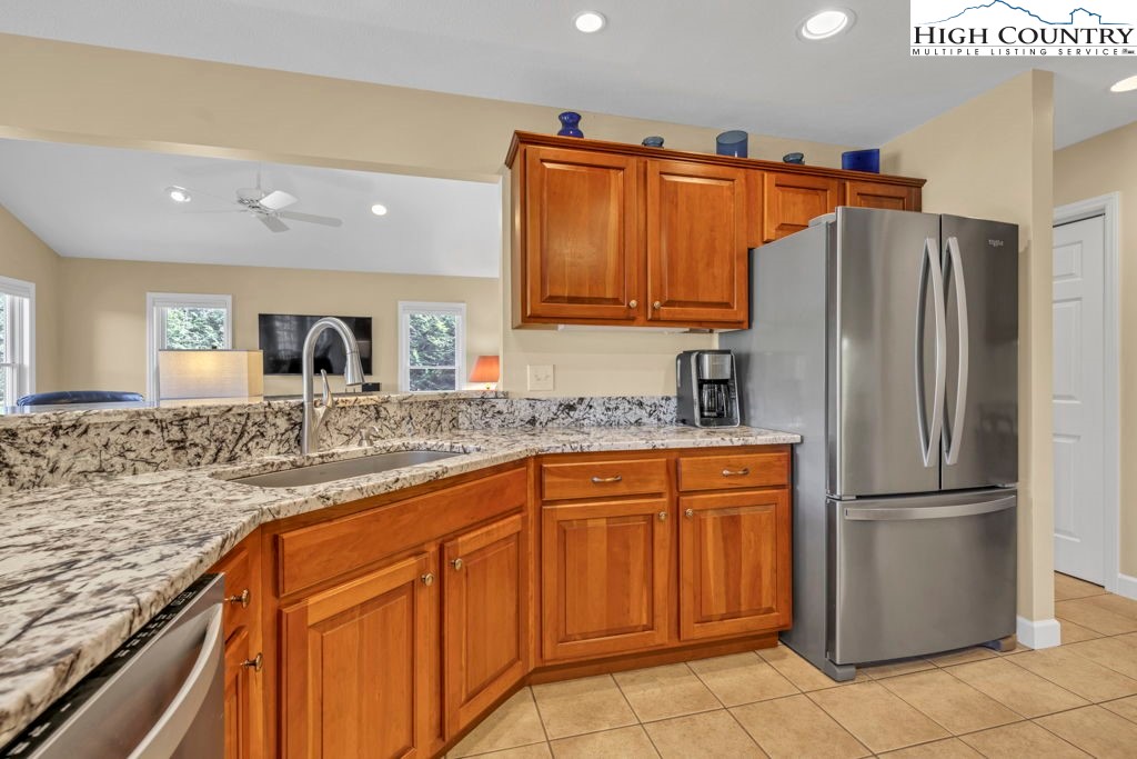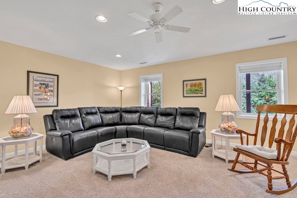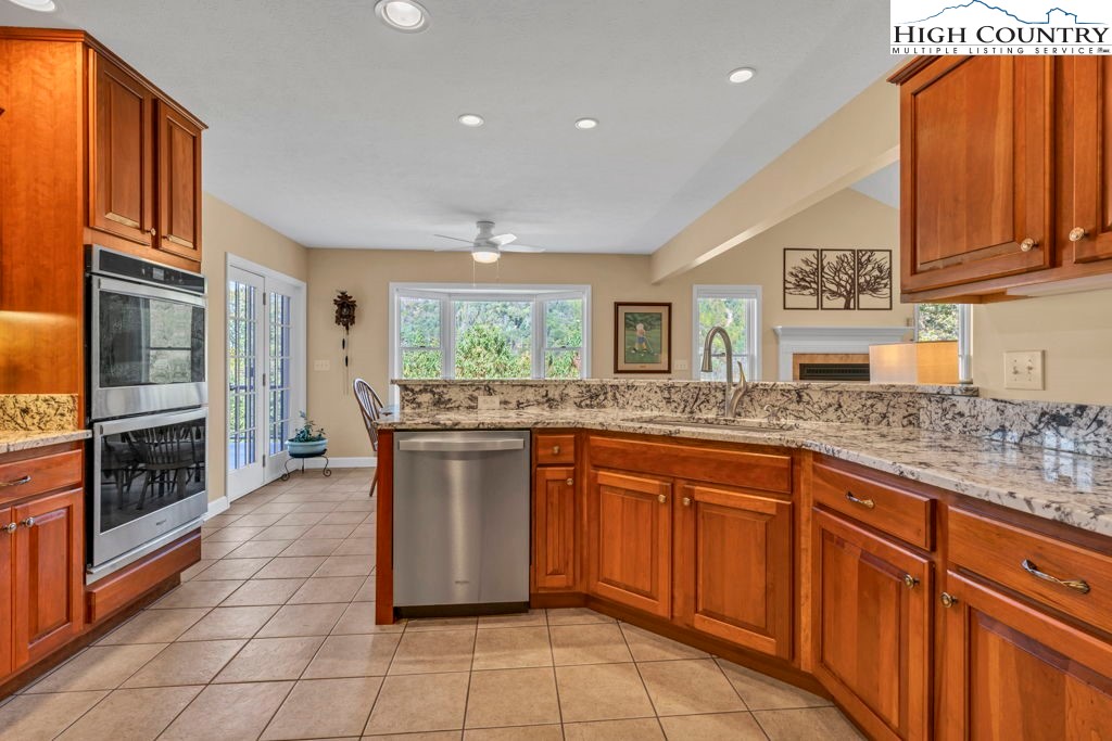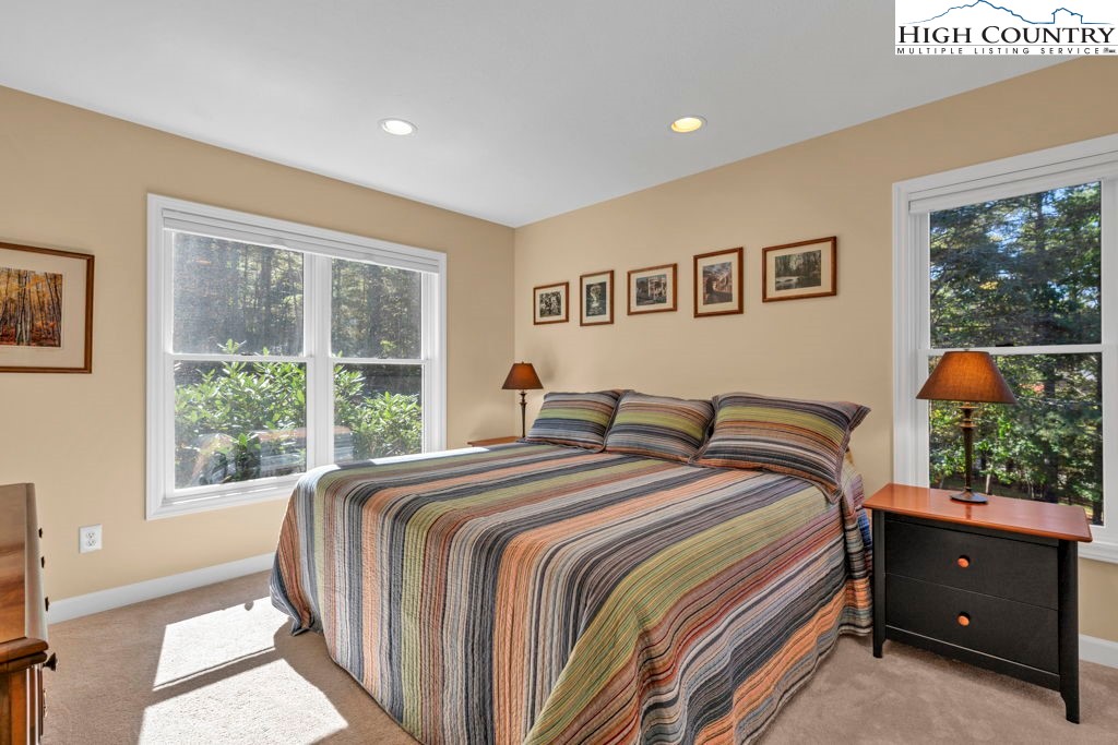 This beautiful and meticulously maintained home is located in the town limits of Banner Elk with easy access to the Banner Elk Park and the downtown area. The main level offers first floor living with two bedrooms and a full bath, plus a large primary suite featuring a walk-in closet, separate vanity and shower area, a den, and fabulous deck access with a great view of Beech Mountain. A formal dining room, spacious living room, partially vaulted ceilings, a kitchen with cherry cabinets, new appliances, granite countertops, a built-in desk, and laundry area complete the main floor. A convenient two car garage is also located on this level. The finished basement provides two additional bedrooms or office space, a full bath, an extra flex space, a large storage area, and a one car garage with a separate entrance. In total, the home offers five spacious bedrooms, multiple entertainment areas, and abundant closet and storage space throughout. Recent updates include a new roof (2021), new HVAC system, new kitchen appliances, new carpet and hardwood floors, new window treatments and more. The property has been thoughtfully maintained inside and out, with a beautifully landscaped and manicured 1.87 acre corner lot. Fabulous views can be enjoyed from the living room, kitchen, dining room, and primary bedroom. The setting is excellent for mornings with coffee on the porch while taking in the mountains or evening drinks by the firepit. Located a short distance from the village of Banner Elk, this home is only minutes to both Sugar Mountain and Beech Mountain ski resorts. With its prime location, generous layout, and significant updates already in place, this property offers an excellent opportunity for buyers to add their own personal touch and create their personalized mountain retreat.