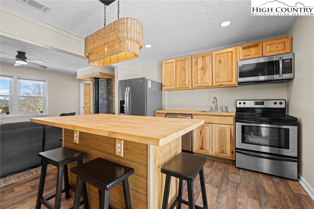 BANNER ELK PRIME LOCATION + VIEWS + CREEK & over 1/2 ACRE of LAND! Welcome HOME to Sugar View Cottage nestled in the very heart of Banner Elk! Don't wait to see this nicely renovated 3 BEDROOM - 2 BATH ranch-style home perfectly situated on over a 1/2 acre of land! Imagine relaxing on the front porch while listening to the sounds of the flowing creek which borders the property as well as views of the Sugar Mountain ski slopes & pond! Step inside to a bright, open layout filled with natural light and tasteful modern updates throughout. The home features central A/C and heat, a brand-new roof and a thoughtfully designed floor plan that makes everyday living easy. Whether you're relaxing in the living area, cooking in the updated kitchen or unwinding in one of the spacious bedrooms, every space feels warm and inviting. Outside, the large fenced-in yard offers endless possibilities — a dream space for children to play, pets to roam freely or friends to gather around a fire pit to stargaze! The paved road access makes year-round living simple, while the location puts you just five minutes from downtown Banner Elk, top restaurants, shopping and Sugar Mountain skiing. With one of the most desirable locations in the High Country, the ski slope views, all the amenities & modern upgrades this home truly has it all — and opportunities like this are truly rare and are not to be missed
