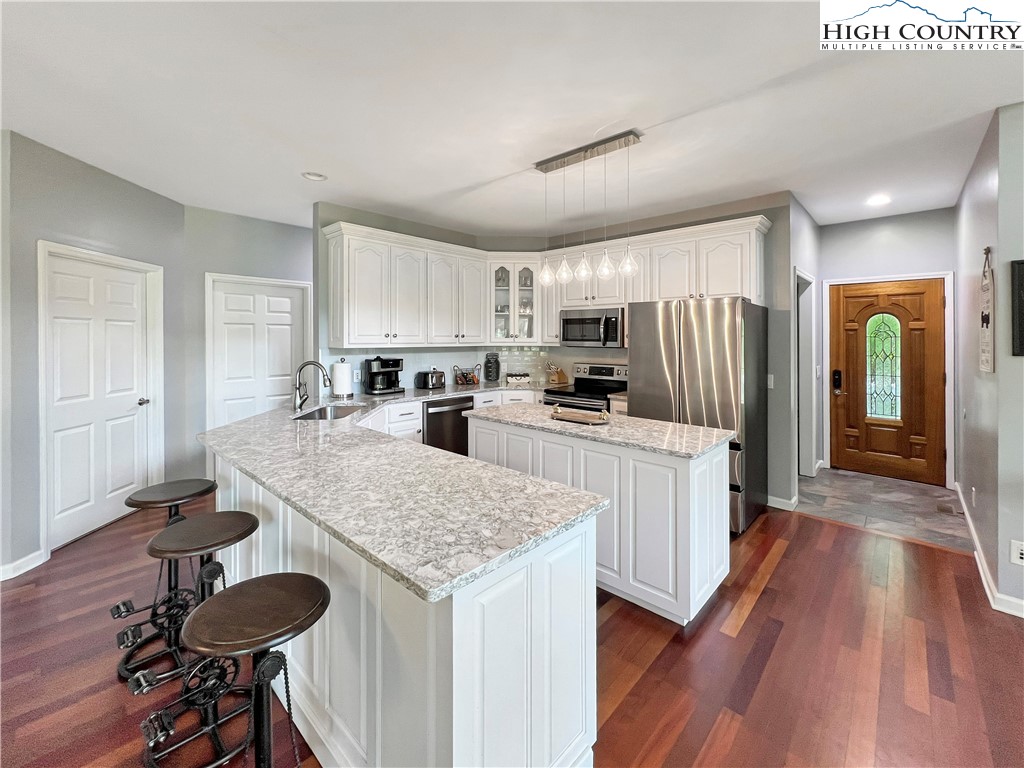 Modern Farmhouse Estate with New River Frontage Experience the perfect blend of luxury, privacy, and natural beauty with this large modern farmhouse, set on 10 pristine acres with end of road privacy. Nearly 1,000 feet of direct New River frontage create an unparalleled retreat for outdoor enthusiasts. A 6-stall barn makes this property a horse lover’s dream, while covered porches and a relaxing hot tub provide endless opportunities to enjoy the peaceful surroundings. Inside, discover both formal and informal living areas, anchored by a cozy wood-burning fireplace. The well-appointed primary suite features a walk-in closet and spa-like bath with dual vanities, a two-person jetted tub, and an expansive dual shower. Thoughtful finishes throughout offer comfort and style in every corner. Conveniently located near West Jefferson, Boone, and Blowing Rock, this one-of-a-kind estate combines end-of-road privacy with proximity to some of the High Country’s best attractions. A true sanctuary for equestrian living and riverfront relaxation.