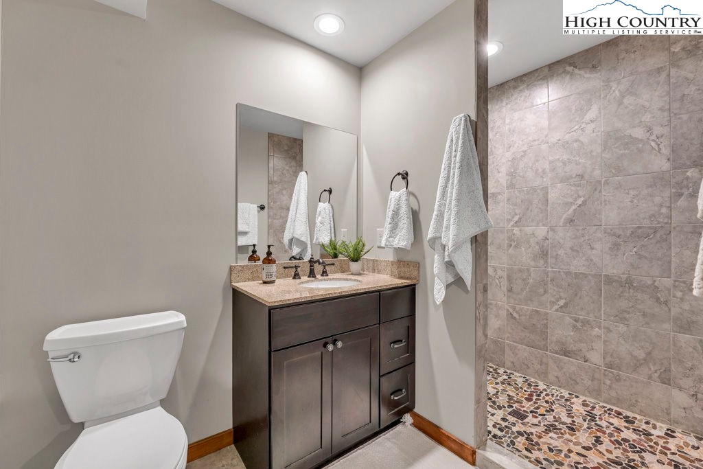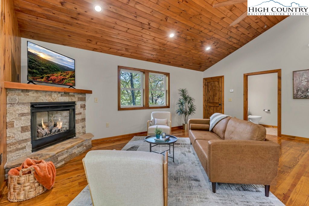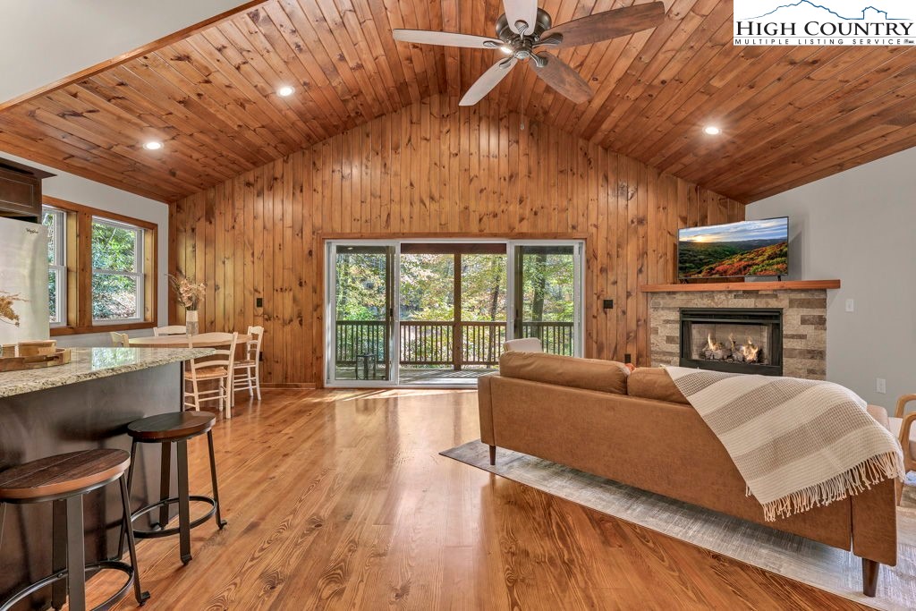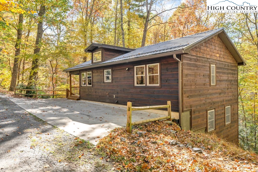 Great cabin nestled in the trees in the lovely community of Sorrento Falls. This 3 bedroom 2.5 bath home features an open concept great room with vaulted ceilings and a beautiful mixture of gorgeous tongue in groove and sheetrock with lots of windows and natural light that keeps the space feeling bright and airy. The kitchen features beautiful granite counters and plenty of cabinetry and island with bar seating as well as a dining area all open to the living room, wonderful for entertaining guests. There is also a half bath on this level that also houses the stack washer and dryer for convenience. The primary bedroom features a beautiful en suite bathroom with walk-in tiled shower and an amazing custom walk-in closet. The lower level features a second living area and kitchenette as well as the two guest bedrooms and a second full bath with walk-in tiled shower. Head outside onto either of your decks and soak in the fresh mountain air and natural setting that surrounds you while listening to the sounds of the stream running along the back of the property. Conveniently located between Blowing Rock and Boone, with paved roads up to the driveway and within minutes of Appalachian State University and App Ski Mountain and all of the outdoor adventures the High Country has to offer. Sorrento Falls is a short term rental friendly neighborhood, making this home an excellent option for full time living or as a vacation home or rental investment opportunity.