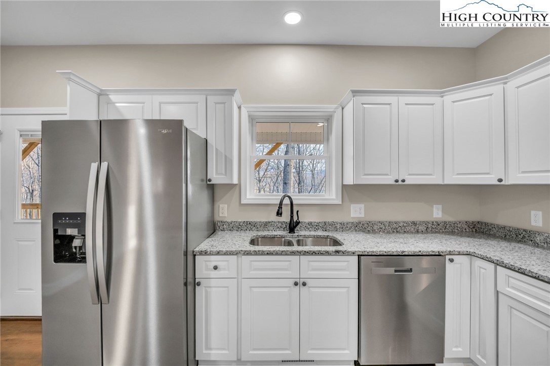 New Construction – Just Completed in the desirable Woodcroft Subdivision in Jefferson! Enjoy the ease of paved roads with no POA fees, as the town maintains the streets—giving you both convenience and value. This thoughtfully designed 4-bedroom, 2.5-bath home blends modern finishes with functional living in a peaceful, established neighborhood. Step inside to an inviting open-concept main level featuring durable luxury vinyl plank flooring and a seamless flow between the kitchen, dining, and living areas—perfect for everyday living or entertaining. The kitchen stands out with granite countertops, stainless steel appliances, and a center island with bar seating. The main-level primary suite offers comfort and privacy, complete with a walk-in closet with sliding barn door and a stylish en-suite bath featuring a granite vanity, walk-in shower, and convenient laundry closet suitable for a stackable washer and dryer. Upstairs, you’ll find three spacious bedrooms, a full bath, and a second laundry area with room for a full-size washer and dryer—ideal for busy households or guests.The full unfinished basement provides excellent potential for future expansion, with plumbing already roughed in for an additional bathroom. Additional storage is available in the second-level attic. Relax on the covered front or back porches and enjoy the natural setting, including a small creek running along the lower portion of the property. Recent landscaping has been completed, which consists of seed and straw and the driveway is scheduled for paving in mid- April. Conveniently located just minutes from the hospital, shopping, dining, and all the amenities of Jefferson and West Jefferson. See today