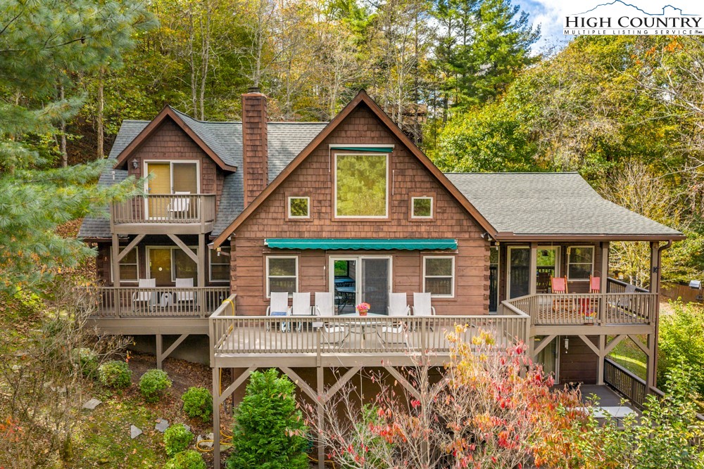 Tranquility awaits! This high-quality, well-maintained 4BR/4BA log cabin is situated in the historic Valle Crucis area. The cabin borders a land conservancy & is just a short distance to the Watauga River, and the heart of Valle Crucis. Enjoy end-of-the-road privacy and no POA. This beautifully UPDATED home boasts mountain views and expansive multiple decks (both open and covered) from which to enjoy the view. Inside, the home features black walnut floors throughout the main level and an impressive great room with vaulted ceilings, a stone fireplace with gas logs, and French doors that lead to the open deck. The open kitchen features a large central bar, granite countertops, a new LG French door refrigerator, and a newer gas range. The adjoining dining room offers easy access to the back deck, making it perfect for entertaining. The primary bedroom and two full bathrooms are conveniently located on the main level of the home, as well as a bonus room (currently being used as a home office, but could also function as a bedroom) and a spacious laundry room. Upstairs, you will find an open loft, a large bedroom with vaulted ceilings and deck access, and a full bathroom. Downstairs features the third and fourth bedrooms (with deck access), and another full bathroom. The deck off of this lower bedroom has a large hot tub and stairs leading to the yard. Outside, you will find an elegant detached 2-car carport (beautifully finished with vaulted tongue & groove ceiling, exposed beams, and a chandelier) as well as an attached workshop. Some recent upgrades include: enlarged parking area, extensive landscaping, gutters with leaf guards, and a newer heat pump and gas furnace (3-zone system). A generator will automatically come on in the event of a power outage and will power the kitchen, laundry room, great room, dining room, office, furnace, and the well pump. Home is also equipped with an ADT security system. This house would be a wonderful primary home or a great rental/secondary residence and is being offered fully furnished and ready to move in (less minor exclusions - see attached list)! It had great success with short-term rentals in the past; the current owners have not rented it.