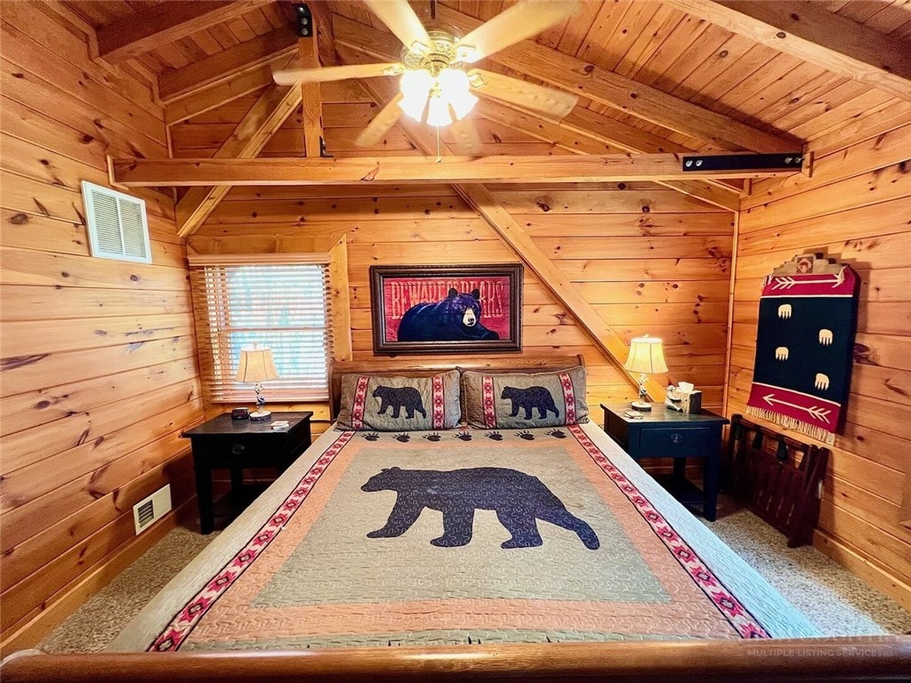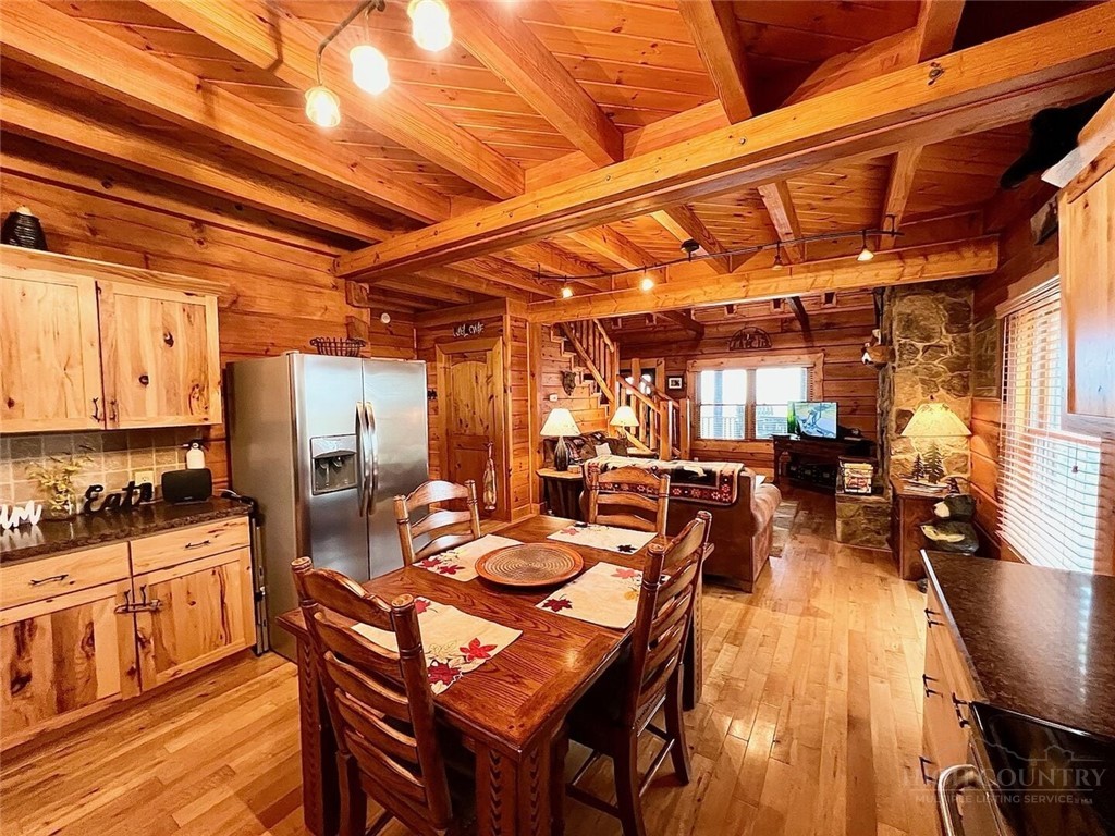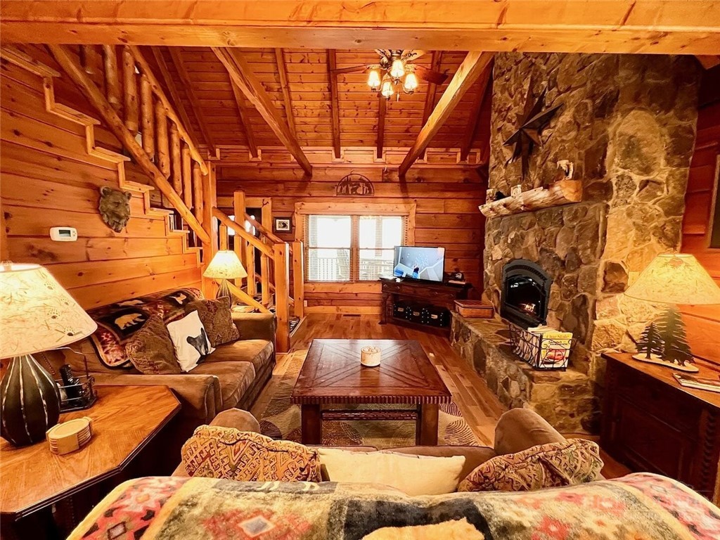 MOUNTAIN VIEWS from this log cabin located in the gated community of Leatherwood Mountain offering an Equestian Center, Pool, Tennis, Pickleball, horse riding trails, fishing from trout waters, 60 boarding stalls, lighted and covered horseback riding arena and the fun list just goes on and on. This beautiful area offers paved roads with lush greenery creating a lovely drive to this cabin. This home is currently a short term vacation rental and is being sold completely furnished including linens, stocked kitchen and everything needed for a turn key ready to rent property. Screened back porch and open deck to enjoy the sweeping views. Soap stone kitchen sink, wood floors, main level with easy entry. Easy access driveway with the home tucked behind trees for added seclusion. Pack your toothbrush and move in!