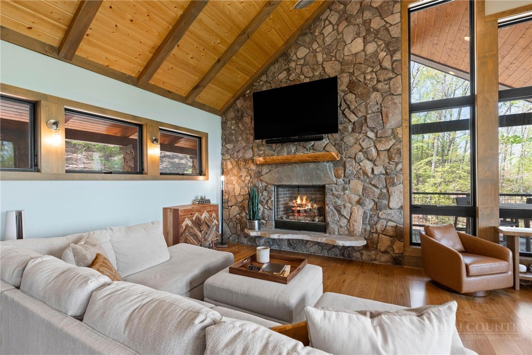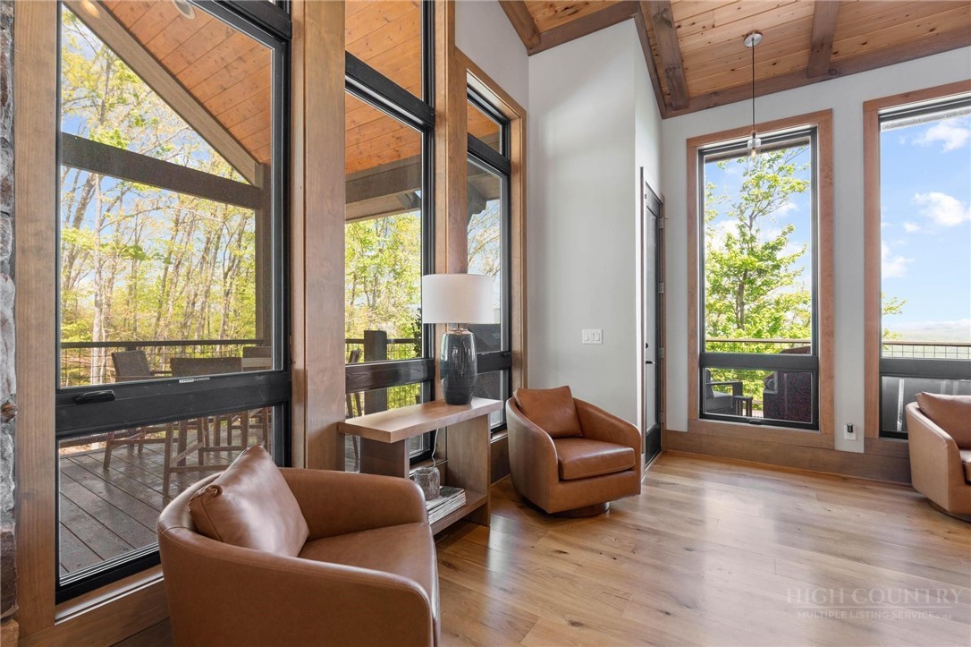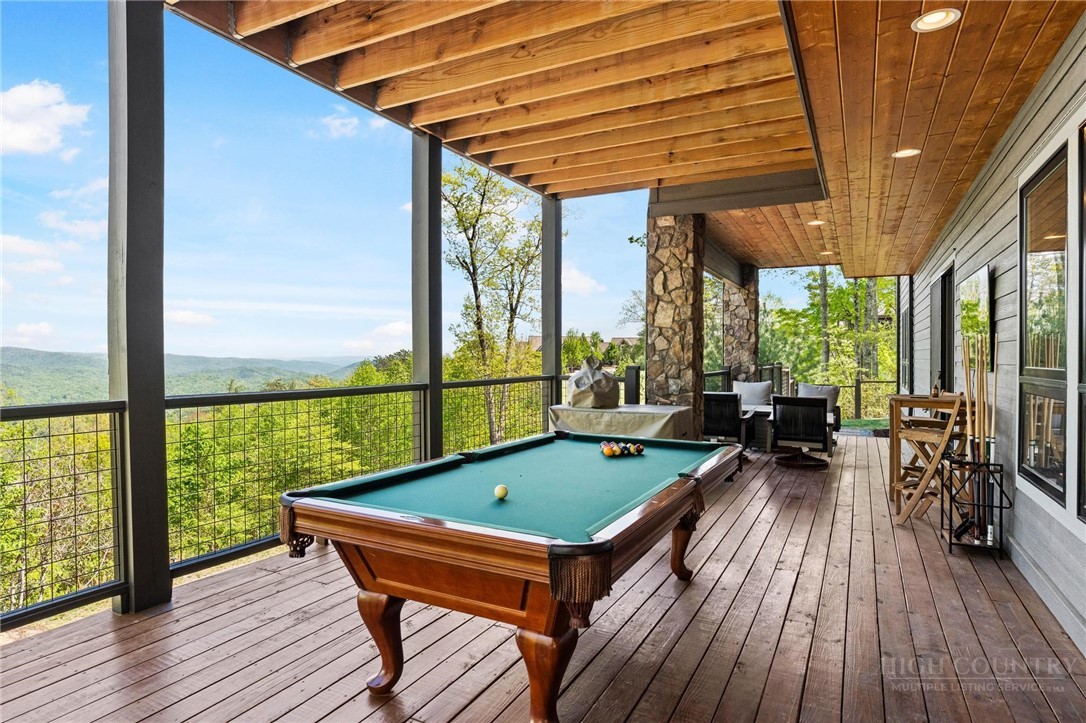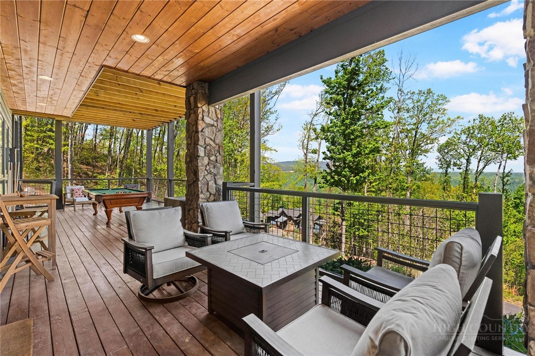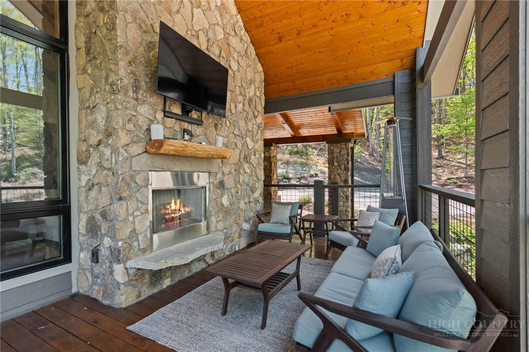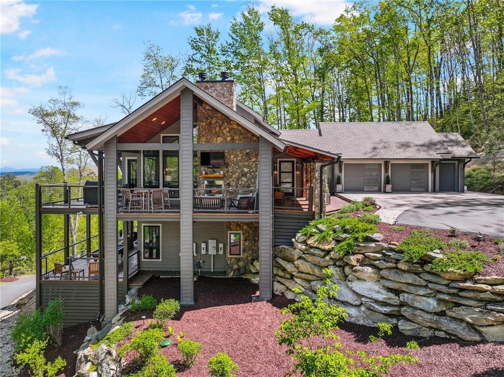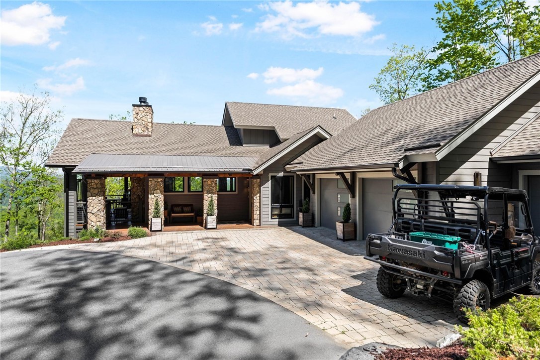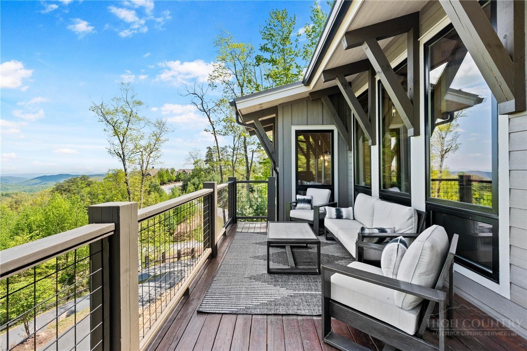 This stunning mountain contemporary home, located in the prestigious Blue Ridge Mountain Club, offers breathtaking long-range views and meticulous landscaping that perfectly complements its natural surroundings. Enjoy plenty of parking space along with a detached two-car heated garage, featuring an additional UTV garage for all your storage needs. The seamless open floor plan is perfect for entertaining, highlighting a great room with a striking stone fireplace. An abundance of windows floods the space with natural light, creating a warm and inviting atmosphere. Flowing effortlessly from the dining area, the kitchen boasts sleek granite countertops with modern edges and a spacious oversized sink, making it a chef's delight. The main level hosts the primary bedroom, complete with a beautifully designed en-suite bath featuring an oversized soaking tub and a luxurious walk-in shower. Upstairs, find another well-appointed bedroom with its own en-suite bath, providing privacy for guests or family. Venture downstairs to discover a cozy family room equipped with a wet bar and wine room, along with two additional en-suite bedrooms for ultimate comfort. The expansive outdoor deck spaces feature an outdoor fireplace, perfect for enjoying serene evenings under the stars while soaking in the magnificent views. A partial fence offers safety and comfort for your furry friends. This home combines modern elegance with mountain charm, making it the perfect sanctuary for those seeking luxury and tranquility. This home is not just a place to live; it’s a lifestyle. Residents of the Blue Ridge Mountain Club are invited to indulge in an unparalleled lifestyle, surrounded by a wealth of exceptional amenities, including hiking trails, UTV trails, mountain streams, swimming holes, wellness spa, pickleball courts, restaurant, etc.
