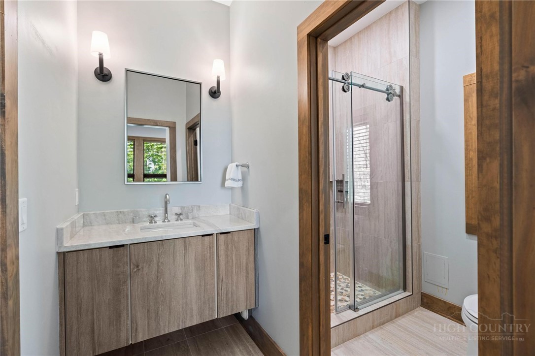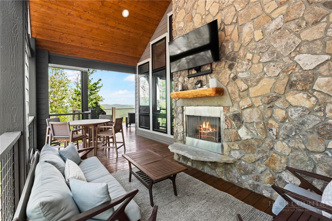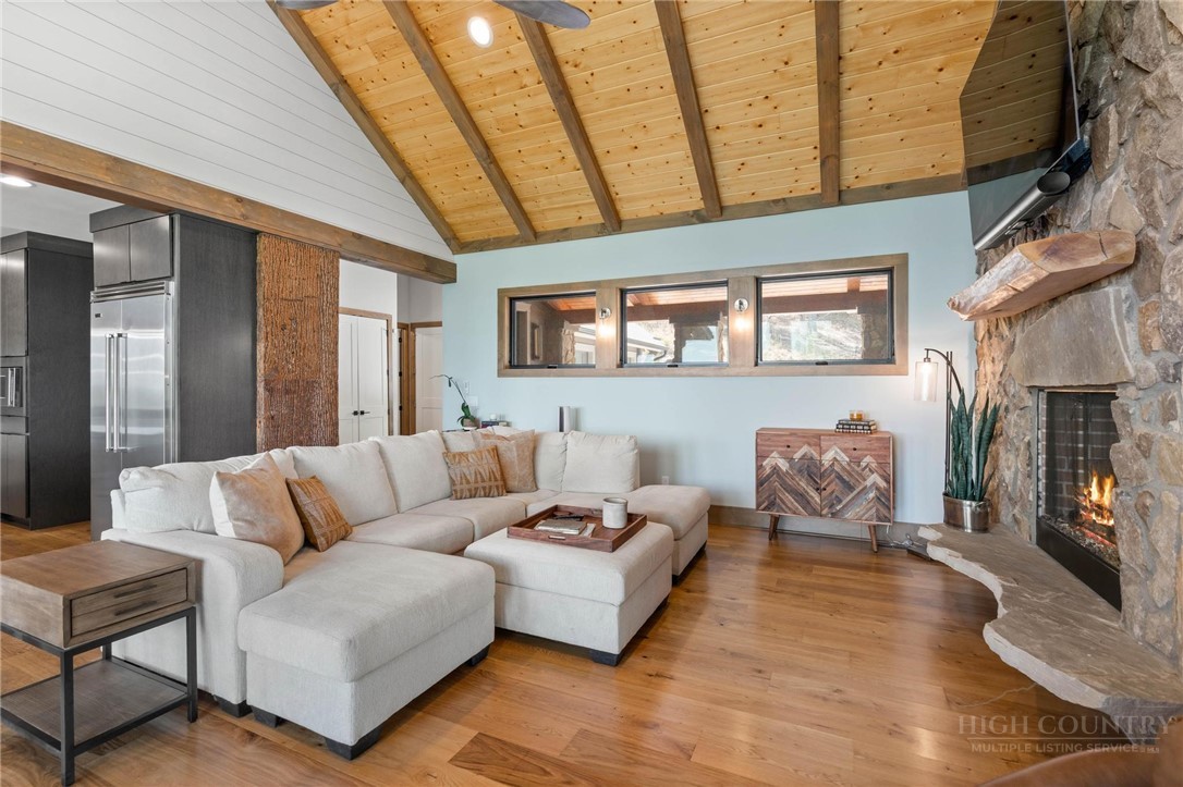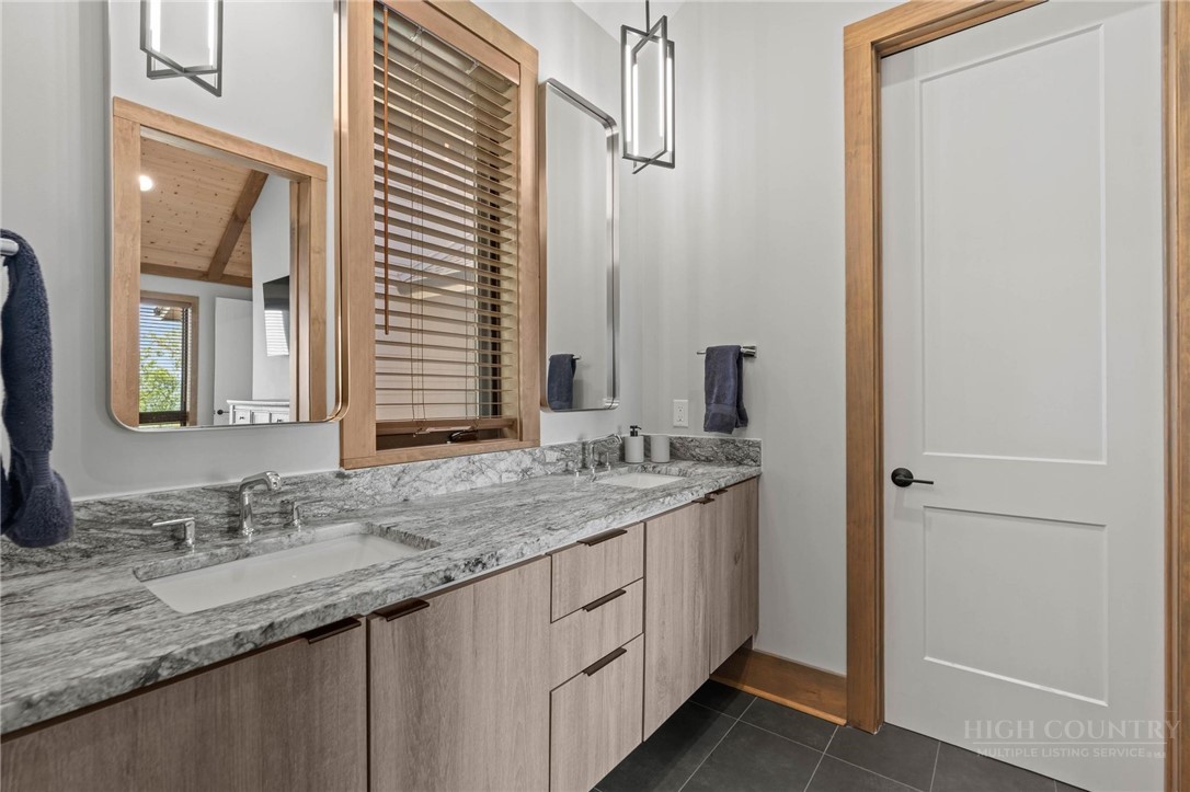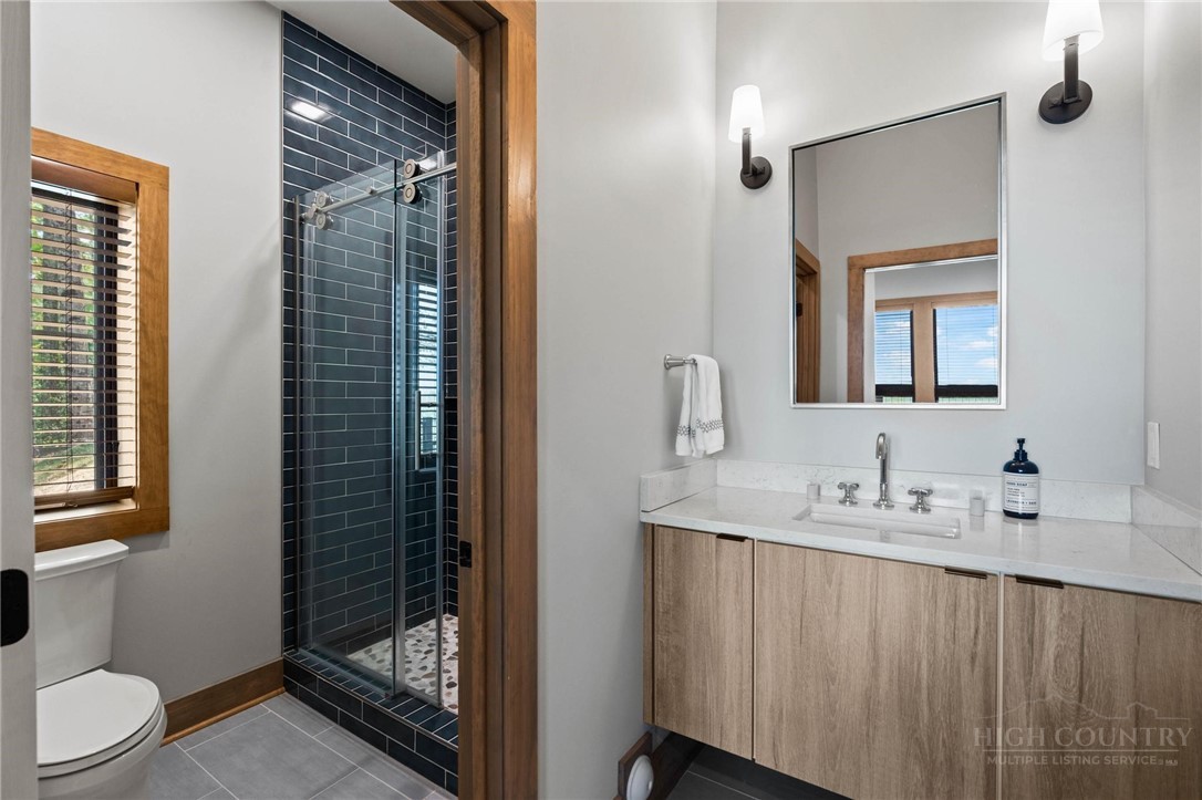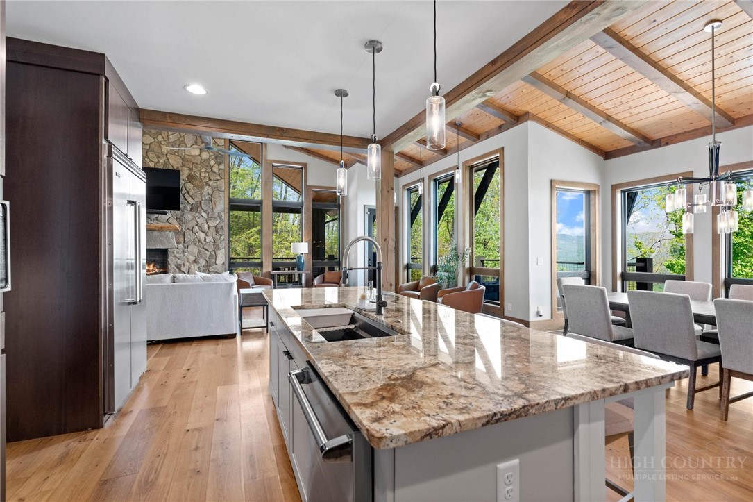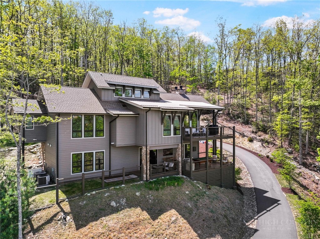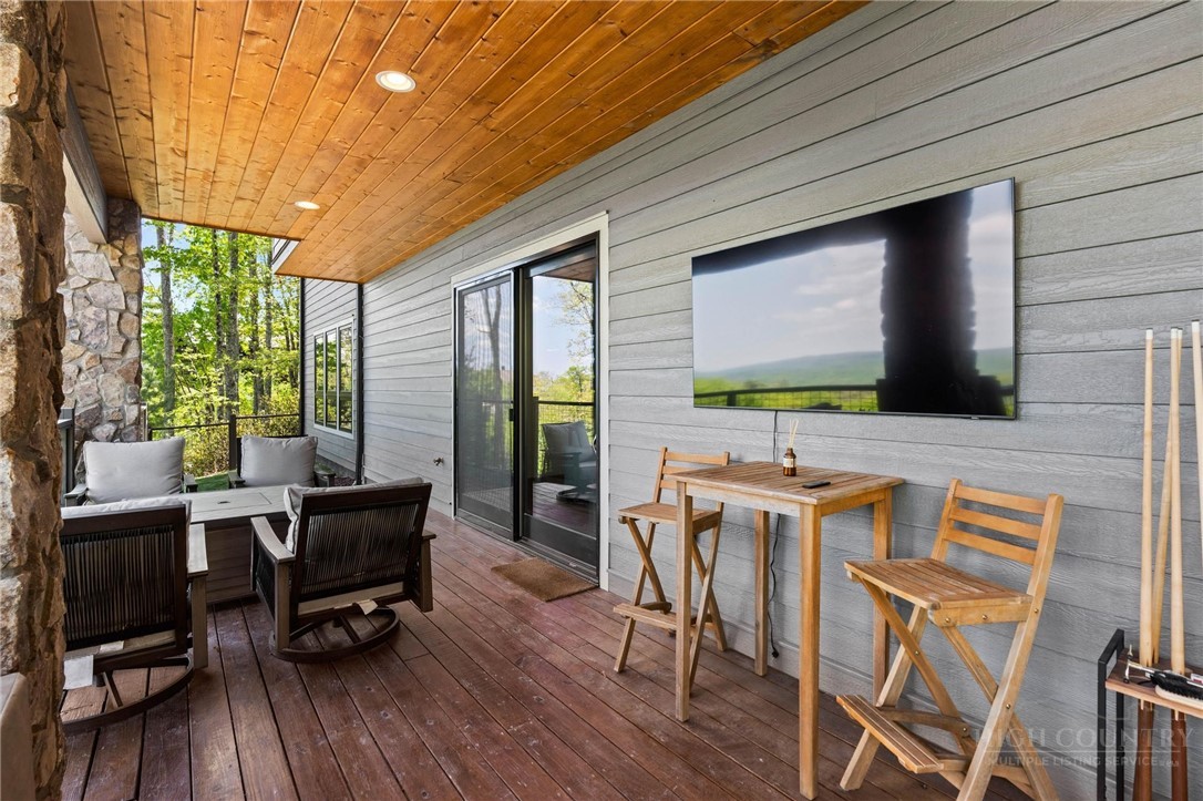 This stunning mountain contemporary home, located in the prestigious Blue Ridge Mountain Club, offers breathtaking long-range views and meticulous landscaping that perfectly complements its natural surroundings. Enjoy plenty of parking space along with a detached two-car heated garage, featuring an additional UTV garage for all your storage needs. The seamless open floor plan is perfect for entertaining, highlighting a great room with a striking stone fireplace. An abundance of windows floods the space with natural light, creating a warm and inviting atmosphere. Flowing effortlessly from the dining area, the kitchen boasts sleek granite countertops with modern edges and a spacious oversized sink, making it a chef's delight. The main level hosts the primary bedroom, complete with a beautifully designed en-suite bath featuring an oversized soaking tub and a luxurious walk-in shower. Upstairs, find another well-appointed bedroom with its own en-suite bath, providing privacy for guests or family. Venture downstairs to discover a cozy family room equipped with a wet bar and wine room, along with two additional en-suite bedrooms for ultimate comfort. The expansive outdoor deck spaces feature an outdoor fireplace, perfect for enjoying serene evenings under the stars while soaking in the magnificent views. A partial fence offers safety and comfort for your furry friends. This home combines modern elegance with mountain charm, making it the perfect sanctuary for those seeking luxury and tranquility. This home is not just a place to live; it’s a lifestyle. Residents of the Blue Ridge Mountain Club are invited to indulge in an unparalleled lifestyle, surrounded by a wealth of exceptional amenities, including hiking trails, UTV trails, mountain streams, swimming holes, wellness spa, pickleball courts, restaurant, etc.