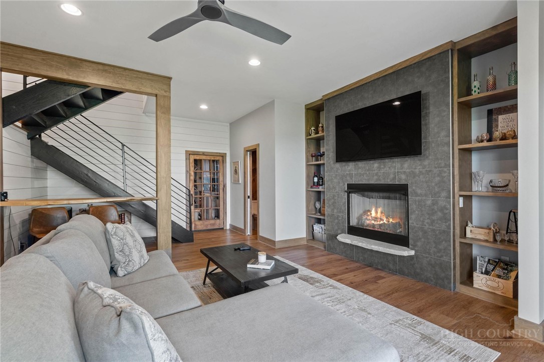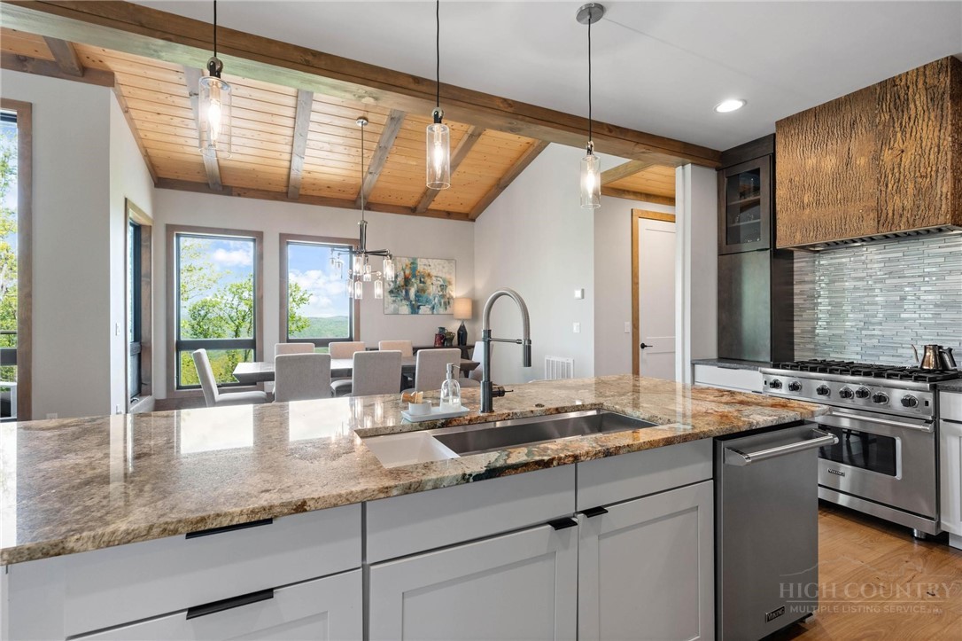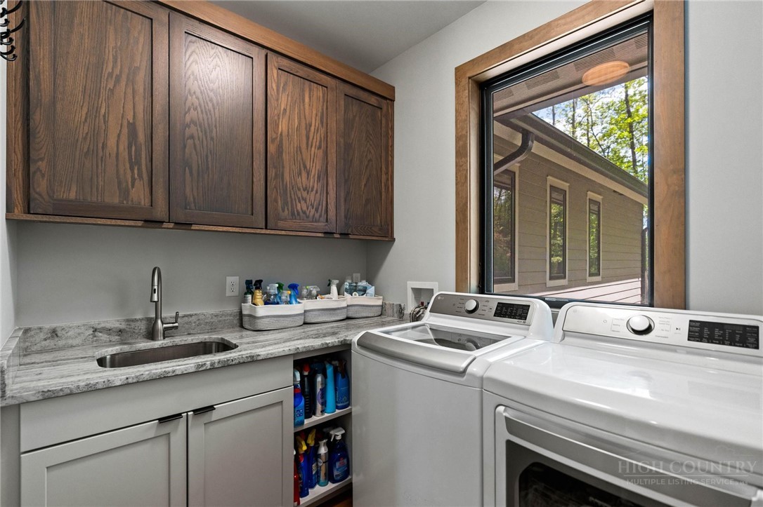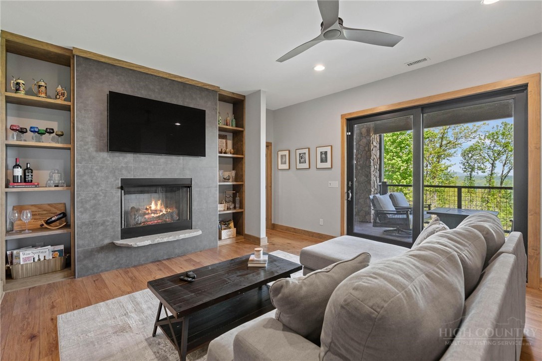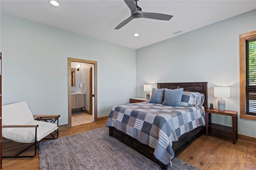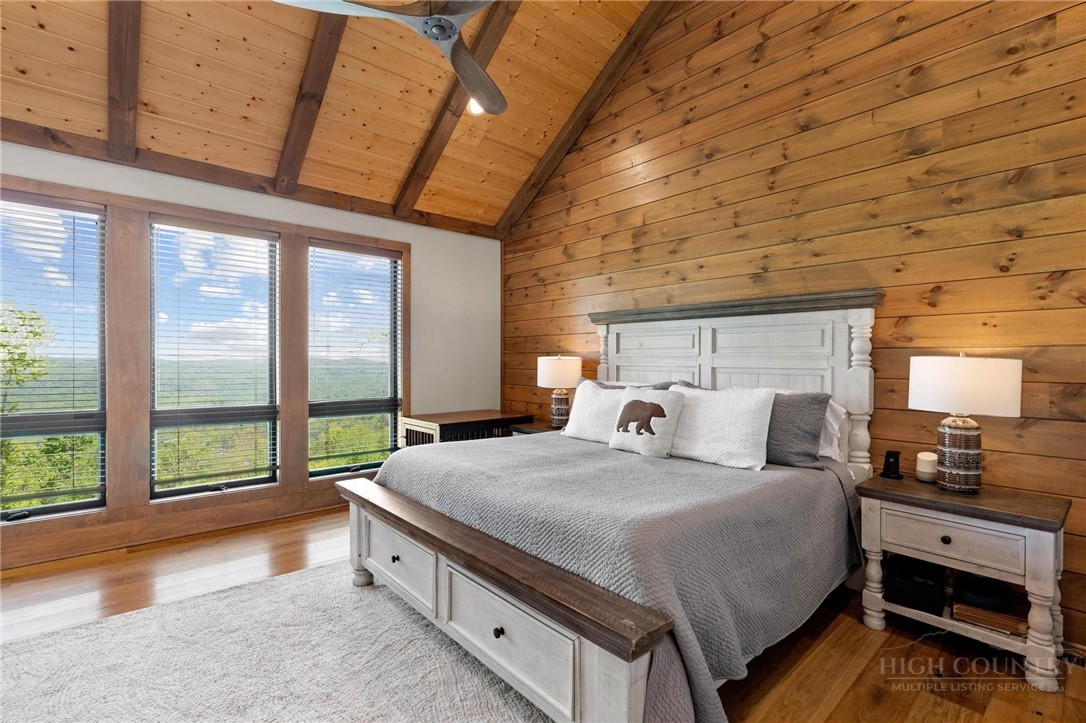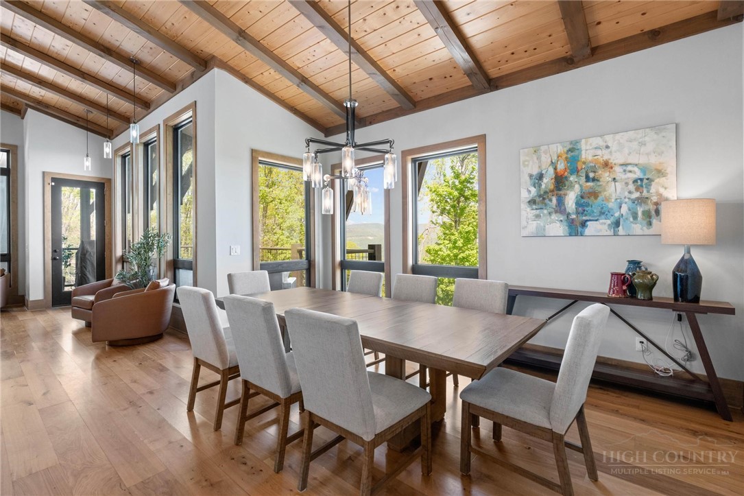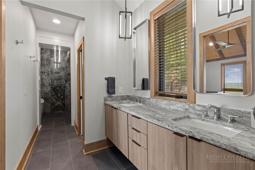 This stunning mountain contemporary home, located in the prestigious Blue Ridge Mountain Club, offers breathtaking long-range views and meticulous landscaping that perfectly complements its natural surroundings. Enjoy plenty of parking space along with a detached two-car heated garage, featuring an additional UTV garage for all your storage needs. The seamless open floor plan is perfect for entertaining, highlighting a great room with a striking stone fireplace. An abundance of windows floods the space with natural light, creating a warm and inviting atmosphere. Flowing effortlessly from the dining area, the kitchen boasts sleek granite countertops with modern edges and a spacious oversized sink, making it a chef's delight. The main level hosts the primary bedroom, complete with a beautifully designed en-suite bath featuring an oversized soaking tub and a luxurious walk-in shower. Upstairs, find another well-appointed bedroom with its own en-suite bath, providing privacy for guests or family. Venture downstairs to discover a cozy family room equipped with a wet bar and wine room, along with two additional en-suite bedrooms for ultimate comfort. The expansive outdoor deck spaces feature an outdoor fireplace, perfect for enjoying serene evenings under the stars while soaking in the magnificent views. A partial fence offers safety and comfort for your furry friends. This home combines modern elegance with mountain charm, making it the perfect sanctuary for those seeking luxury and tranquility. This home is not just a place to live; it’s a lifestyle. Residents of the Blue Ridge Mountain Club are invited to indulge in an unparalleled lifestyle, surrounded by a wealth of exceptional amenities, including hiking trails, UTV trails, mountain streams, swimming holes, wellness spa, pickleball courts, restaurant, etc.