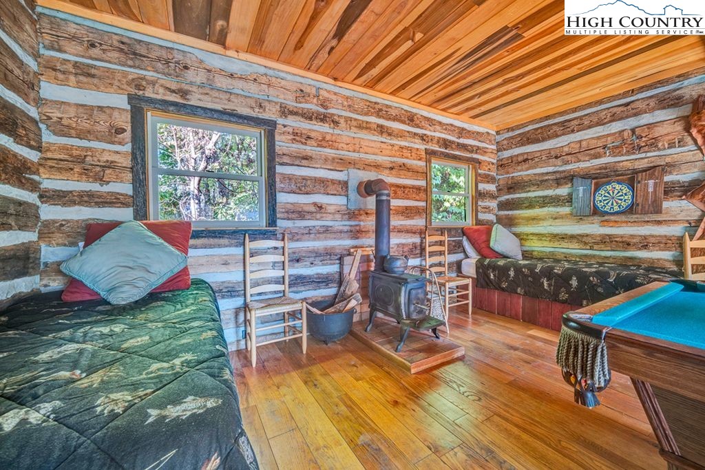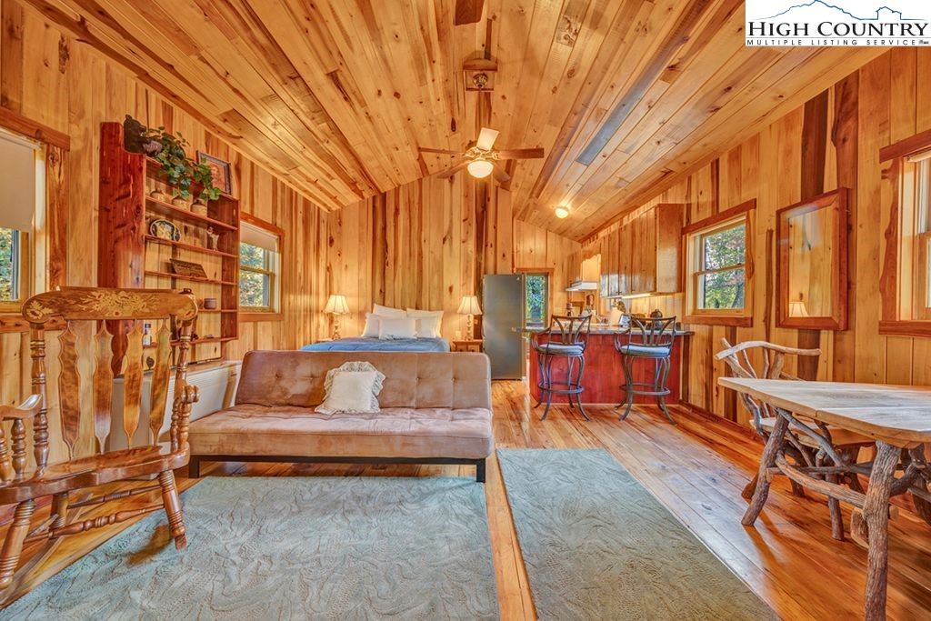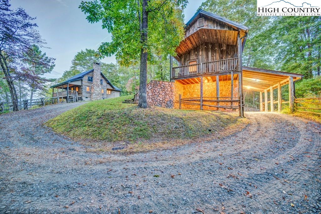 Discover a one-of-a-kind opportunity to own four charming log cabins tucked away on 4.64 unrestricted acres at the end of a private road. This secluded property blends rustic character with modern comfort, making it an amazing personal retreat, an investment property, or even a horse property. Cabin #1 is a beautifully furnished three-bedroom, two-bath home featuring a main-level primary suite with an en-suite bath and a cozy gas log fireplace. Hardwood floors flow throughout, while a second fireplace warms the inviting living room. A covered front porch and outdoor fire pit create a space to relax and entertain. Additional highlights include a partially finished basement, a durable metal roof, and a new Rinnai hot water heater. Cabin #2 offers three bedrooms and two baths, with most furnishings remaining. Its main-level primary suite and fireplace provide a warm, welcoming atmosphere, while the covered porch and new metal roof add to its charm and practicality. Beautiful long-range view from this cabin! Cabin #3 is a fully furnished studio cabin with a galley kitchen and an open living area, set above two spacious horse stables—making it great for equestrian use or simply for extra storage. Completing the property is a fully furnished bunkhouse and game room, complete with a pool table and three twin beds. This lively space is great for gathering with friends and family and even includes a classic outhouse just behind it. Lovingly maintained and thoughtfully designed, this extraordinary property offers endless possibilities—whether you dream of a private family retreat, a unique short-term rental opportunity or a tranquil mountain escape. With its existing stables and generous acreage, it’s ideally suited for those seeking horse property or a serene countryside lifestyle. This is a rare chance to own an entire log cabin retreat in a setting defined by complete privacy and natural beauty.