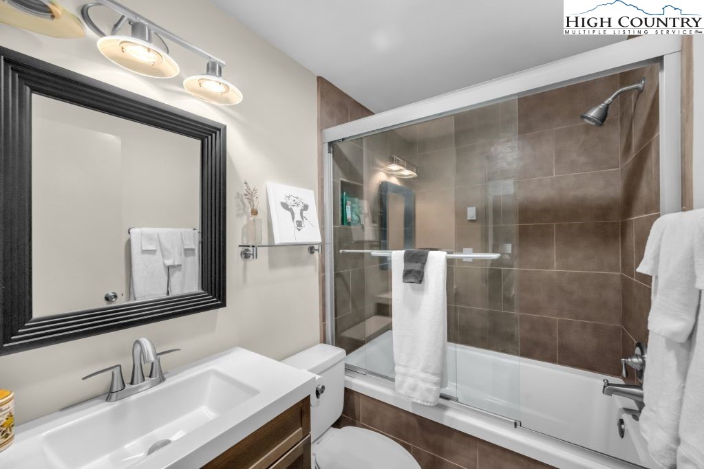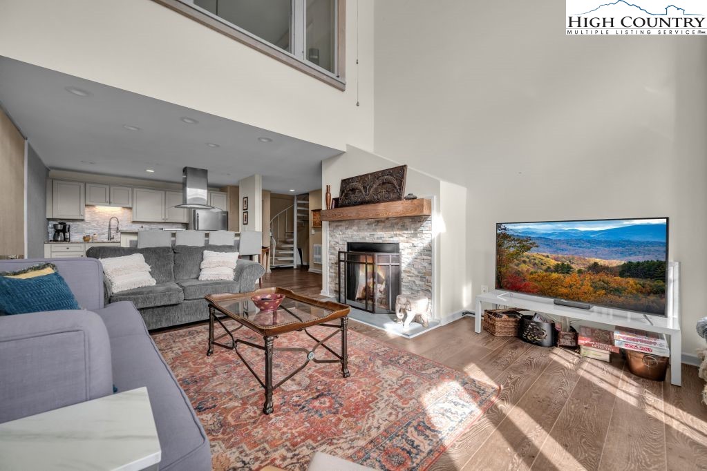 Escape to the heart of Sugar Mountain, where style, comfort and investment potential come together in this beautifully renovated Skyleaf condominium. With a proven short-term rental performance through Airbnb and VRBO, this property offers a mountain retreat and a smart income opportunity. Designed to maximize light and space, the home features soaring ceilings and expansive windows that frame seasonal mountain views and fill the interior with natural light. The thoughtful multi-level layout provides openness for gathering and privacy for guests. The upper level welcomes you with a spacious primary suite featuring an en-suite bath, along with an additional bedroom and full bath, ideal for hosting family and friends. Downstairs, the open-concept living, dining and kitchen area creates a comfortable setting for entertaining, complete with a cozy fireplace for cool High Country evenings. A third bedroom and full bath on this level offer even more flexibility. The updated kitchen shines with granite countertops, stainless steel appliances and a convenient bar for casual dining. Modern lighting and finishes throughout give the home a clean, contemporary mountain feel. Go outside to the covered deck and breathe in the crisp Sugar Mountain air, ideal for enjoying every season. Whether you're seeking a turnkey vacation home, a rental investment or a combination of both, this Skyleaf condominium delivers location, style and strong income potential in one of the High Country’s desirable communities.
