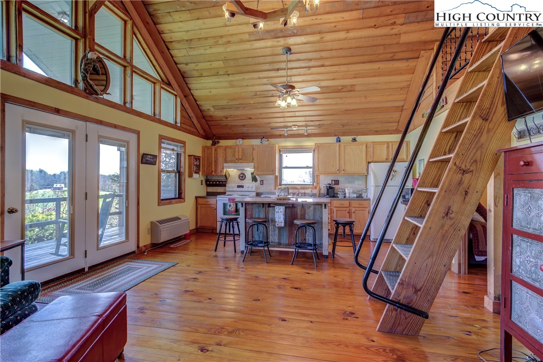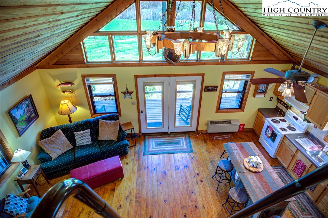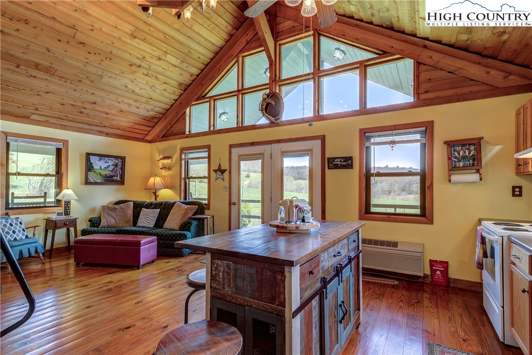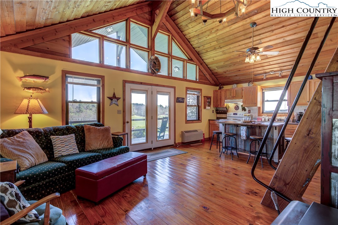 Quaint mountain cottage perfectly situated in the heart of the Blue Ridge Mountains, just off the iconic Blue Ridge Parkway. This custom-built home overlooks a picturesque farm, offering sweeping pastoral and mountain views that define true mountain tranquility. The home features 2 bedrooms and 2 bathrooms, along with an open kitchen, dining, and living area designed for easy gathering. A finished loft—currently used as additional sleeping space—adds flexibility, though it is not included in the heated square footage due to its ceiling height. Interior highlights include wood floors and wood ceilings, fiber-optic internet, a stacked washer/dryer, and a freestanding gas-log fireplace. Outdoors, a wraparound porch invites you to relax in a rocking chair as the sun sets, while a yard firepit offers the perfect spot to unwind under the stars. This one-of-a-kind, custom-built cottage is being offered fully furnished, making it an ideal turnkey retreat. Enjoy direct access to the best of the Blue Ridge—walk the Parkway trails, bike scenic routes, visit nearby wineries, explore charming downtown shops, or spend an afternoon fishing in a local trout stream.
