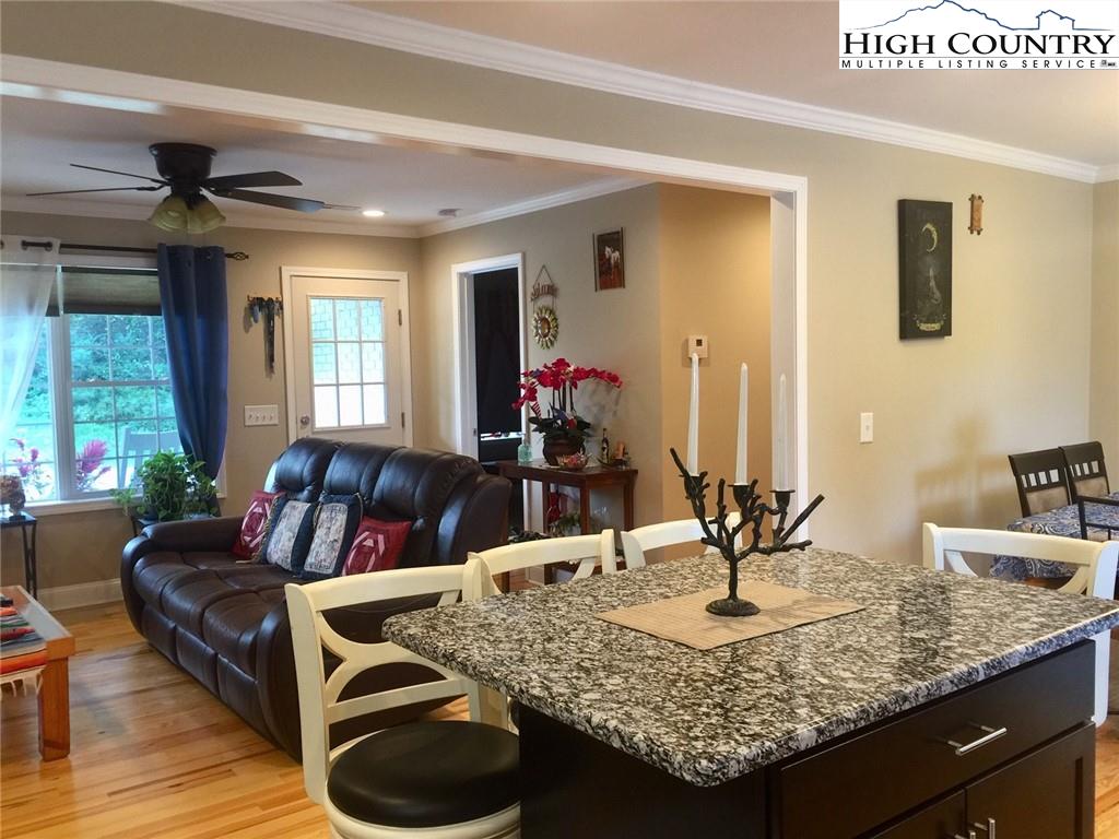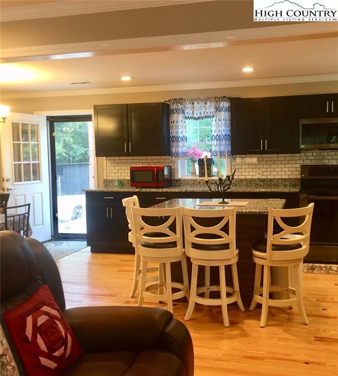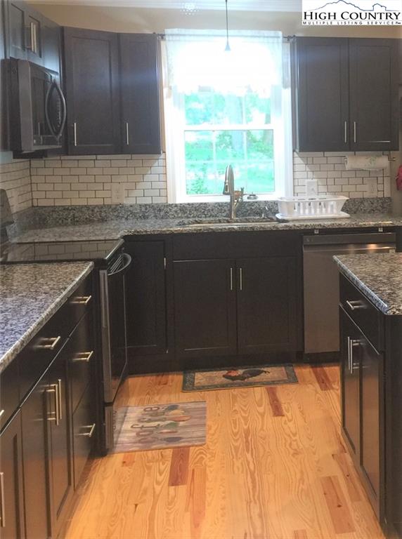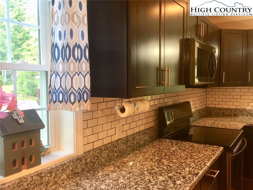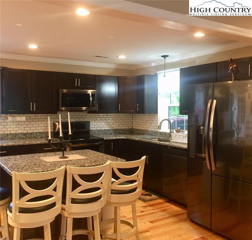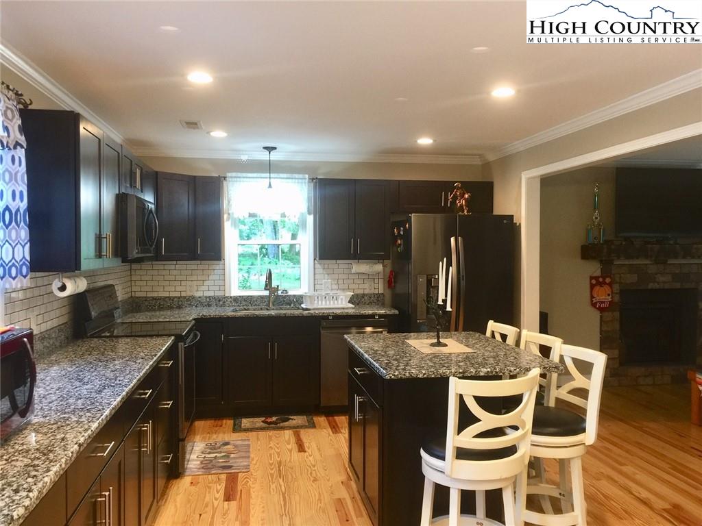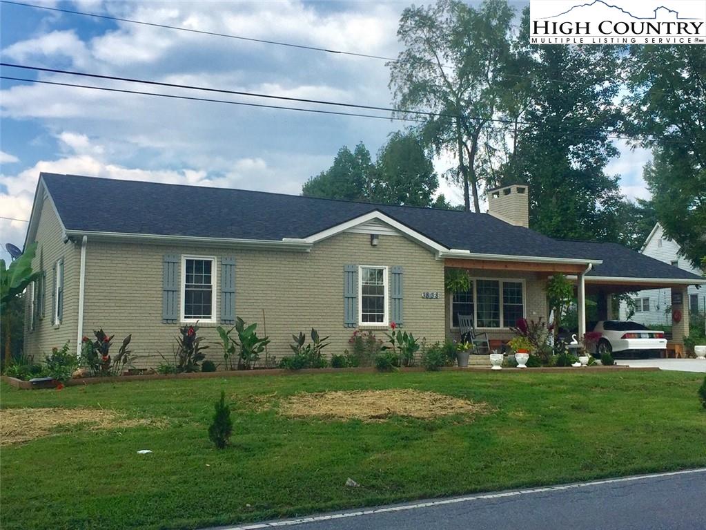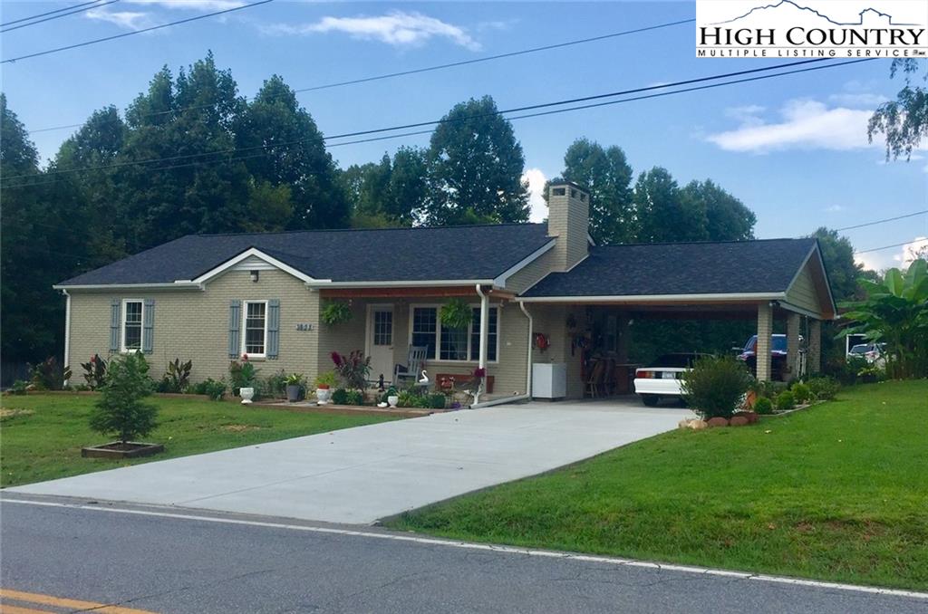 Looking for a house near the mountains but don’t want the snow and winter cold? Located between West Jefferson, Boone, and Wilkesboro this may be the house for you. Totally reconstructed inside and outside brick ranch style with 3 bedrooms all on one level living.The kitchen has all new cabinets, appliances, and granite countertops. Large kitchen island. Open living area to the kitchen, dining area. The living area has a brick fireplace for the cooler winter nights. Covered front porch.Two or three bedrooms or office all with closets. Large double sink bath. The Master bedroom has a full bath. Both bathrooms have new tile floors and tile on walls of showers and tubs. All new fixtures in baths.Landry is in the hallway between bedrooms. Beautiful new wood floors throughout. All new plumbing and electrical. Heat pump and air. All lighting is new with recessed and hanging lights. Fresh paint throughout. All permitted updates by a professional builder.Large back yard with metal barn, storage shed, and fenced-in dog lot. Large gravel parking in back. New carport with wood ceiling and workshop space with new concrete driveway. Walkout basement with lots of storage.This one wont last long!