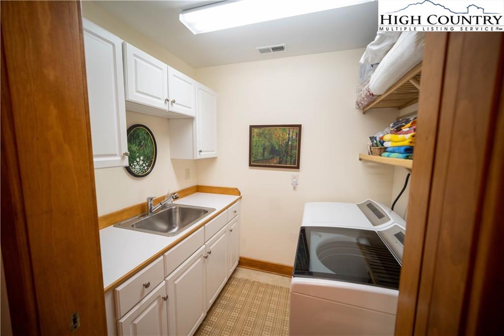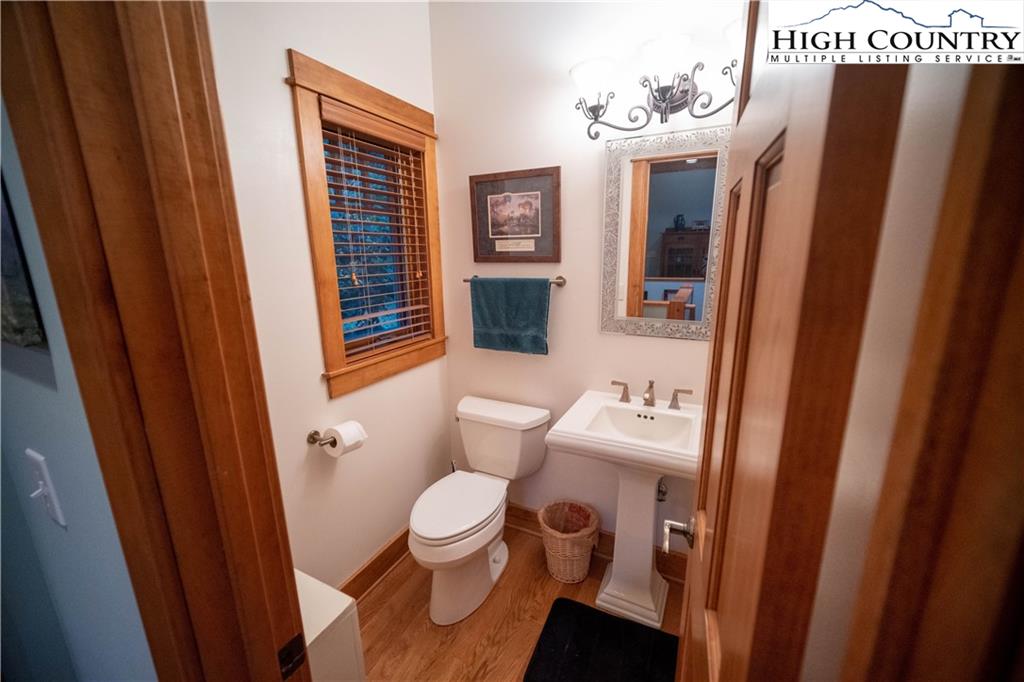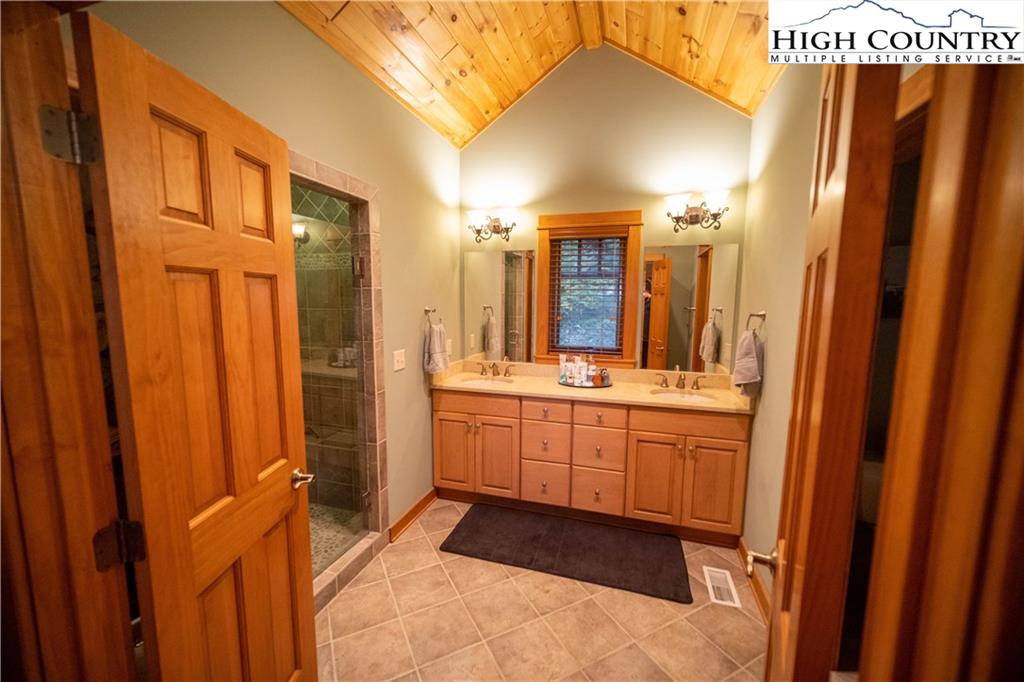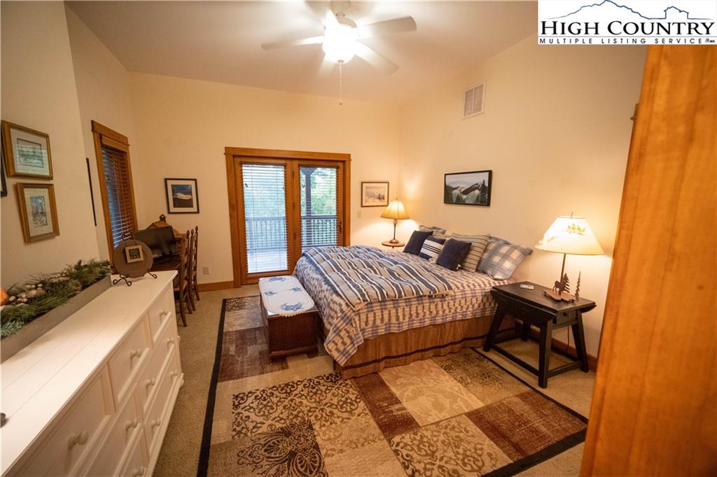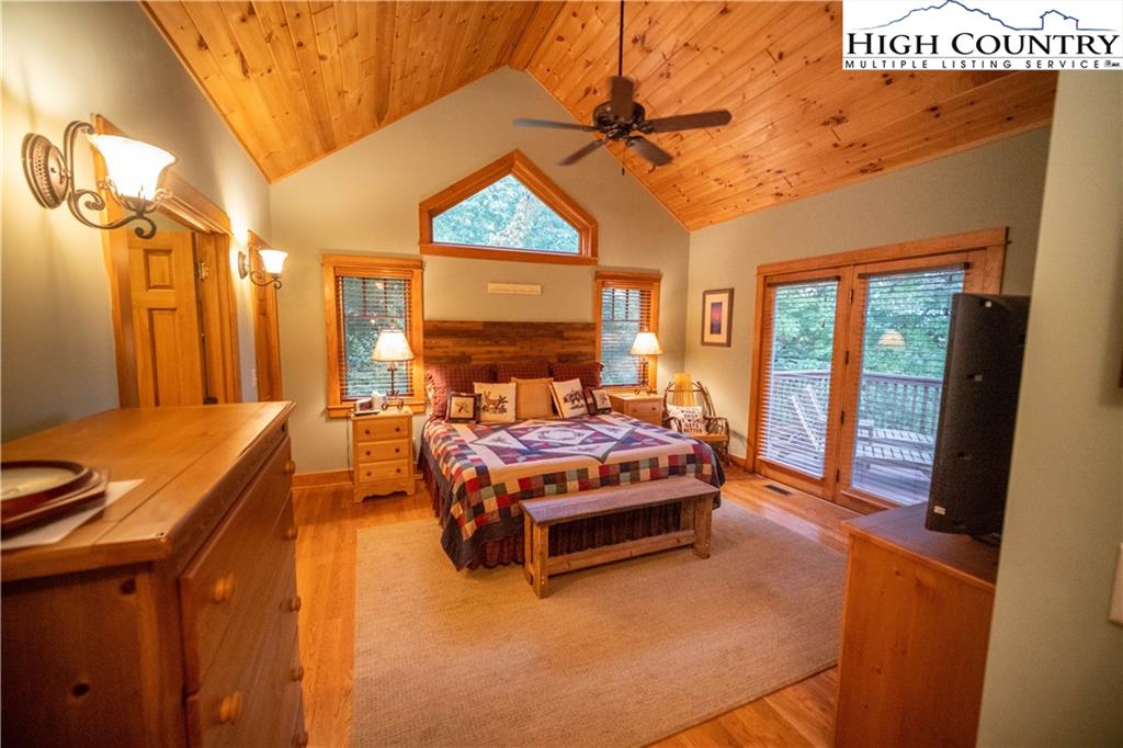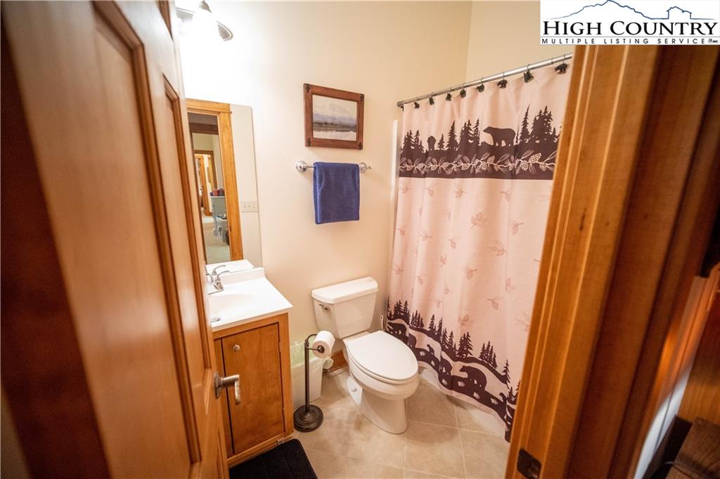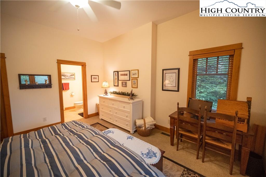 Gorgeous mountain style home tucked in the trees with a beautiful long range view! This 3 bedroom home, each with an en-suite bath, has timber frame style details, vaulted tongue and grove ceilings, and upscale finishings. One level living is possible with kitchen, great room, dining, primary bedroom and laundry all on the main floor. Kitchen has granite counters, light cherry cabinets, stainless appliances, and a gas range for the chef. Floor to ceiling stone fire place and built in shelving highlight the living room with a wall of windows to take in the view. Multiple decks extend your living space, and all are newly stained. Two living spaces with an additional laundry downstairs allows room for everyone! The two car garage is on grade with entrance into the kitchen. Beautiful yet easy landscaping with nothing to mow! Easy to care for exterior has been recently painted. The doors have vanishing screens and great room windows have motorized shades. Tons of storage! Gated community and only 5 minutes to Boone!
