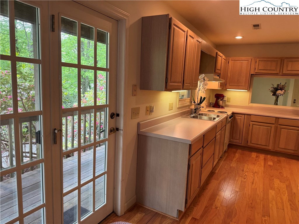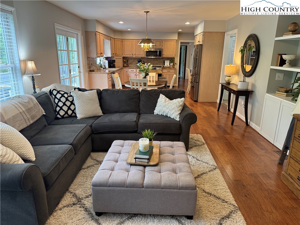 Listen to the sound of birds from this quiet, end of cul-de-sac location near Blowing Rock Country Club. Appreciate no steps entering the home into one- level living. This roomy in-town home is a steal! Walk through the sitting room to the main kitchen with granite counter tops and all new stainless steel appliances that opens to the cozy den. Celebrate special occasions in the formal dining room. There’s a large primary suite on the main level with a large bay window overlooking the trees. The main level has new engineered floors in the living areas, new carpet in the primary bedroom, and new tile in the primary bath. Large two car garage. Upstairs has room to spread out, with two large bedrooms, a full bath, an office/loft area, and a huge bonus room over the garage. Upstairs features all new carpet and new tile floors in the bathroom, skylights that pour in natural light, and tons of storage in the eaves. The home is freshly painted throughout. Stay warm and cozy with a new furnace with propane backup and air conditioning that is still under warranty and an Ecobee thermostat that programs remotely on your smart phone. The spacious lower level offers a full apartment with a separate entrance and its own golf cart garage. There’s also a new radon mitigation system and a generator. With painted upper and lower porches, a covered front porch, and updated landscaping, the exterior welcomes you to outdoor living. This Blowing Rock home has all the amenities you love. The lovely location offers easy access to the BRCC from the golf cart driveway that leads straight from the golf cart garage to Galax Lane. Enjoy being just 5 minutes from Blowing Rock School and all the shops and restaurants on Main Street. Make an offer today!