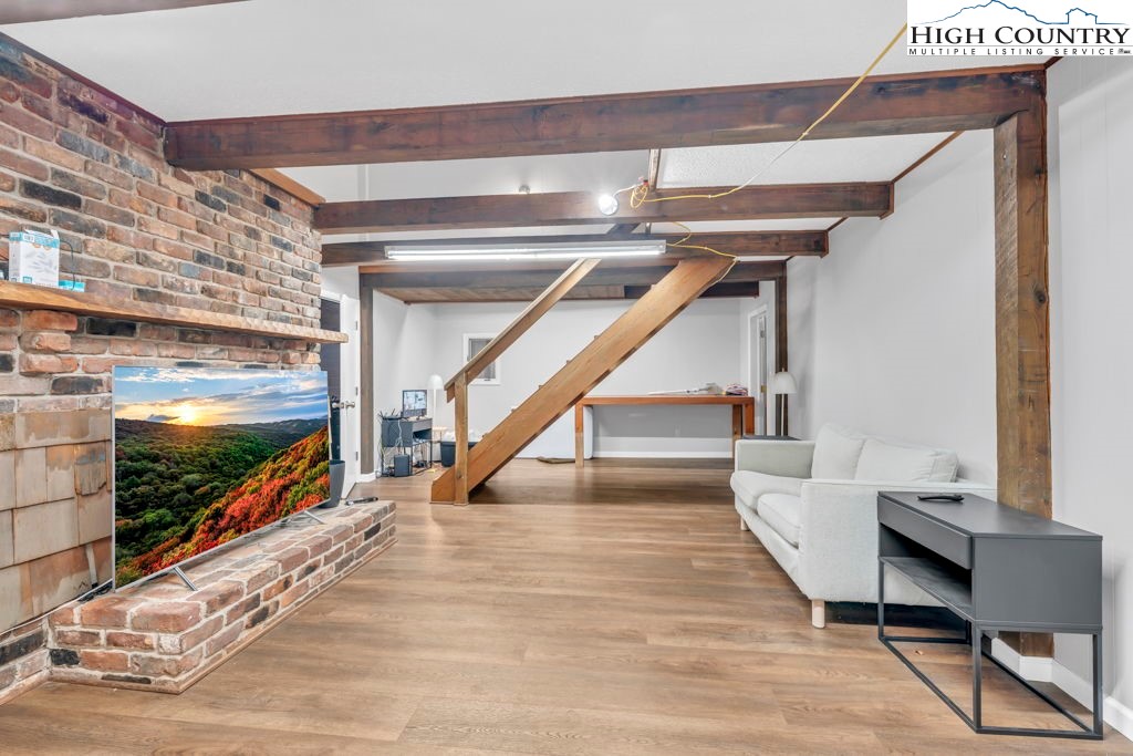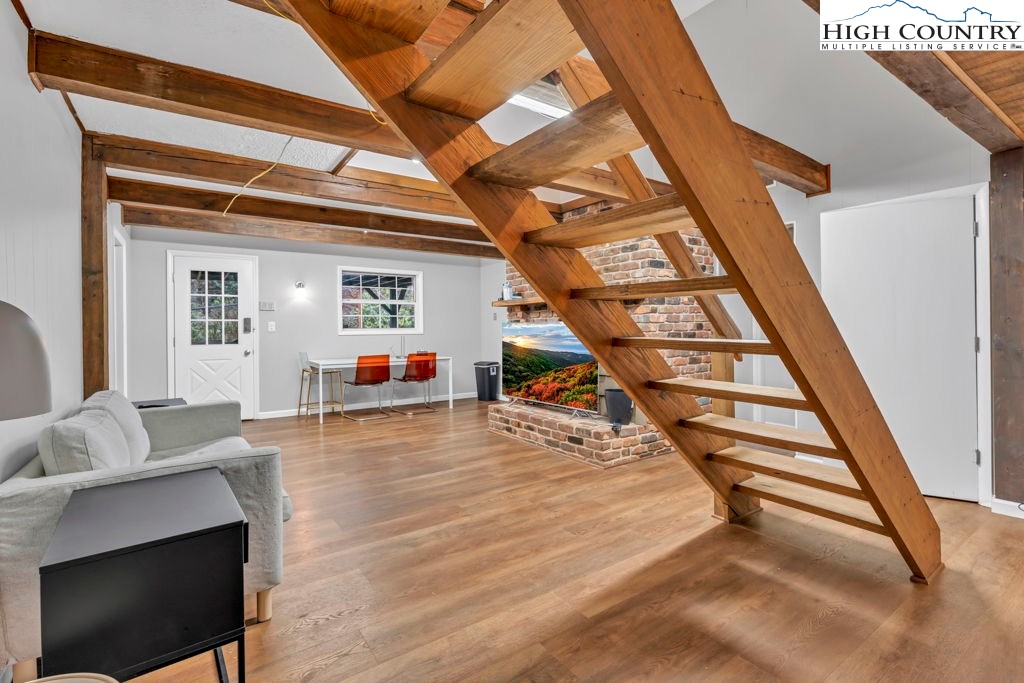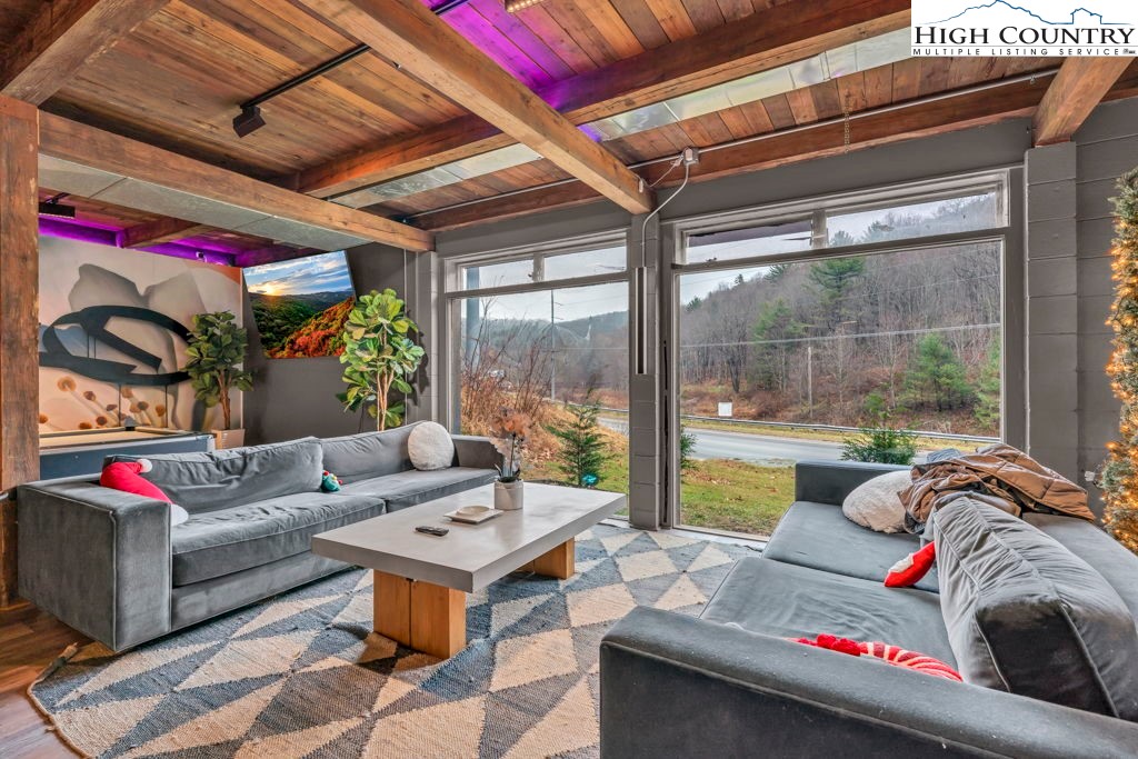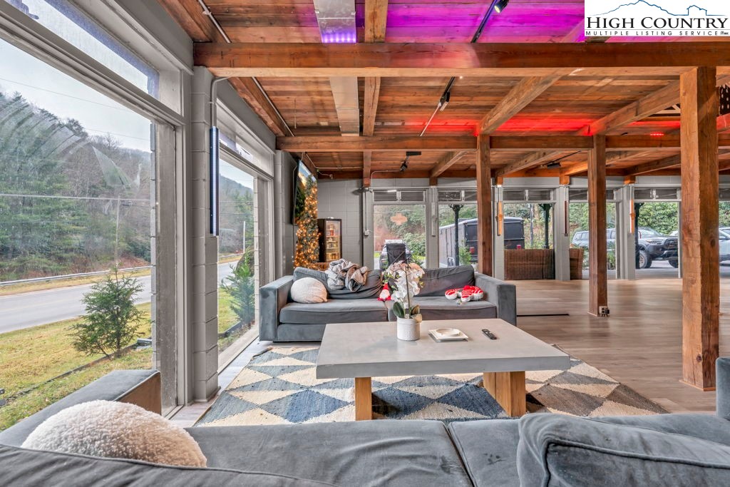 Commercial building located on busy Hwy 321 between Boone and Blowing Rock is currently a retail store for CBD and Cannabis. Outstanding location! The property has a strong history as a retail establishment. The building includes 3 levels for the retail store. There is also an owner’s quarters which includes 4 rooms and 2 full bathrooms, plus a kitchen (with laundry hookups), living room, and access to two exterior deck areas. The retail area has 2 half baths, one of which has an exterior access. The property also includes a laundry utility room off the main level retail space. There are 2 fireplaces one of which is in the retail space. There is an additional detached garage apartment that was recently remodeled above the garage space that is 1 bed 1 bath with a rear porch. The apartment has a long term tenant. The detached garage portion has a half bath and high ceilings for storage. Excellent overall location with high visibility and traffic count with 229 ft of Hwy 321 road frontage and 712 ft of New River frontage across the highway as shown by the Tax Mapping System (not an actual survey). Additional income generated by the billboard lease.