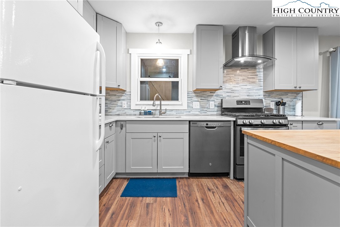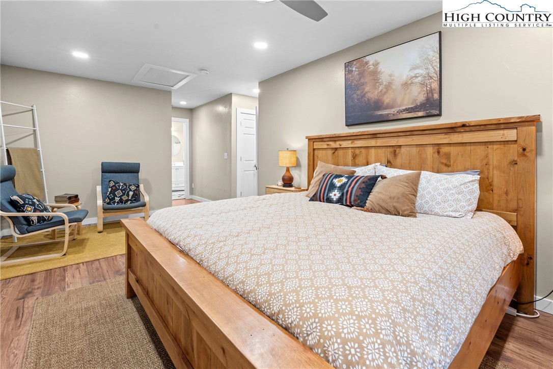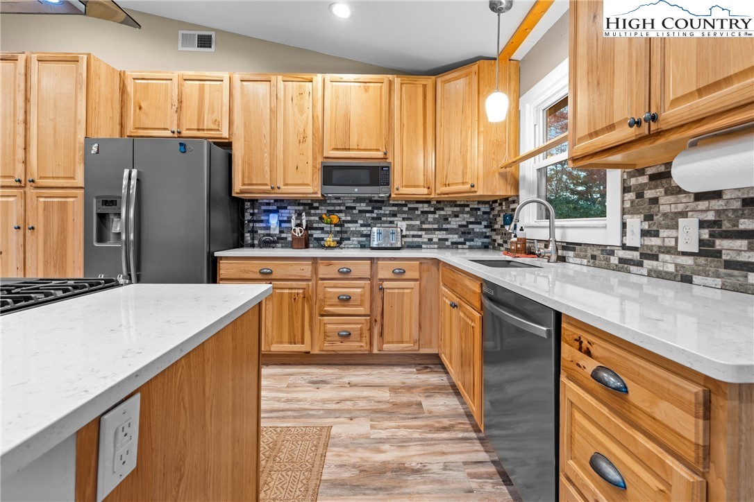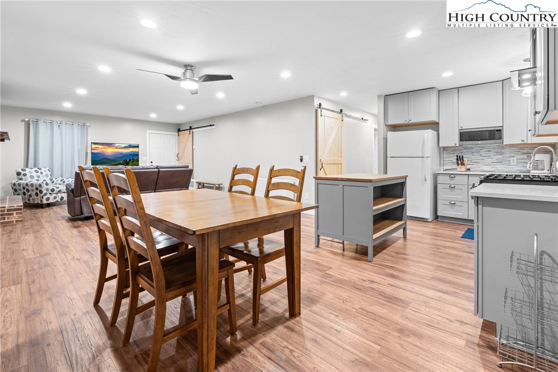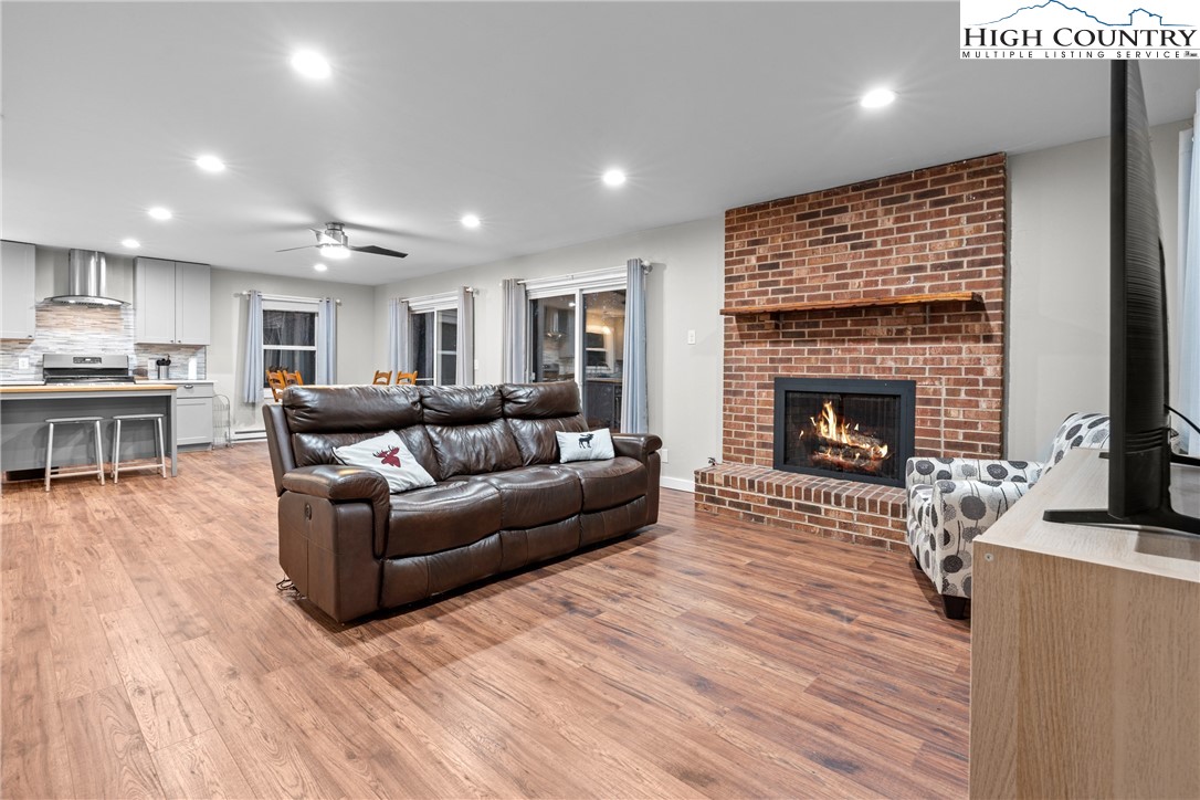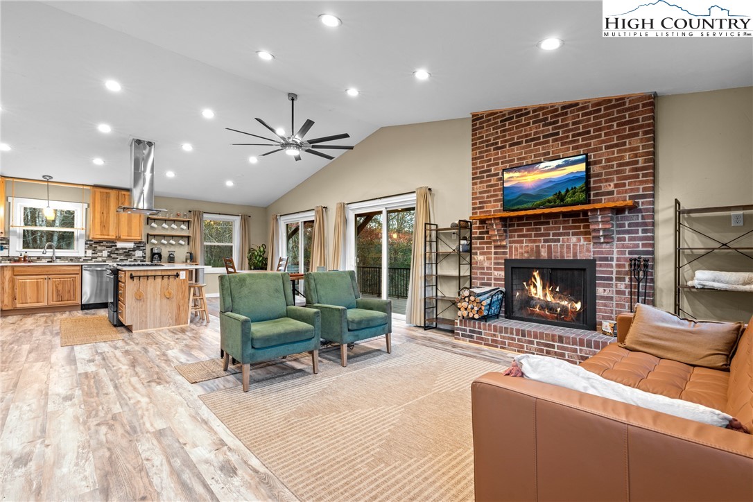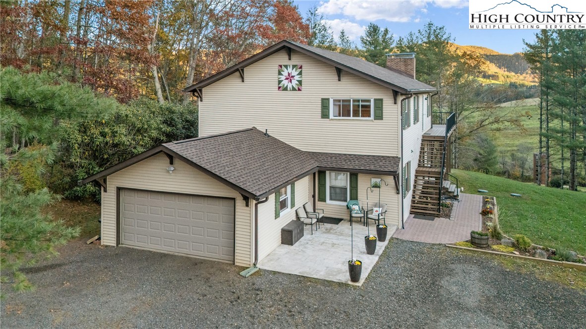 This spacious, well-maintained home sits on over 3 acres between Boone and West Jefferson in a quiet neighborhood. The property features 4 bedrooms, 4 baths, 2 kitchens, and 2 wood-burning fireplaces across both levels each with their own washer dryer, which can easily be connected to make this one home or it can remain separated as a potential rental property. Amenities include an attached two-car garage, ample parking, a brand new storage shed, large yard with new chicken coop, garden space, and hiking trails. Both floors have their own water heaters, electric meters, laundry machines and share a private well and septic. Located just 2.4 miles off 421 with no restrictions, the home is adjacent to a historic Civil War-era cemetery. Short-term rentals are allowed, making it ideal as a primary residence or investment property. Detailed list of improvements available. Being sold fully furnished- personal clothing items and food pantry items do not convey.