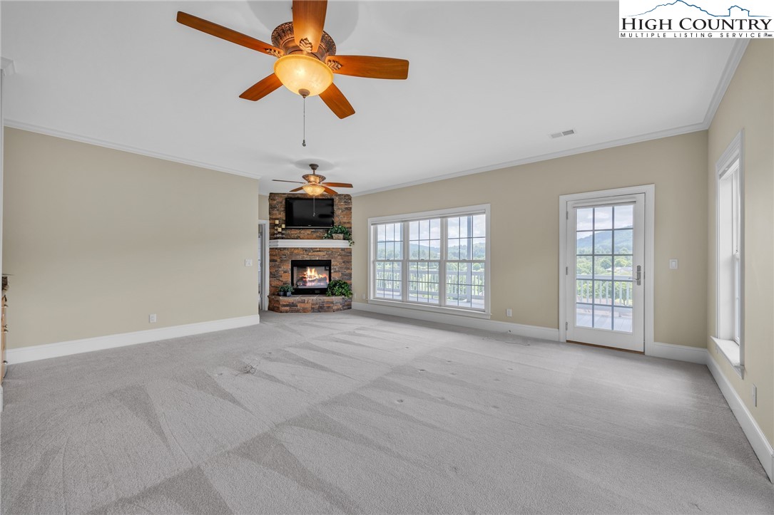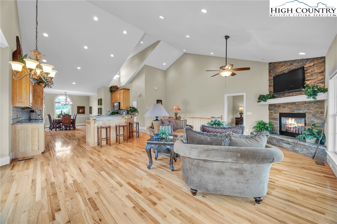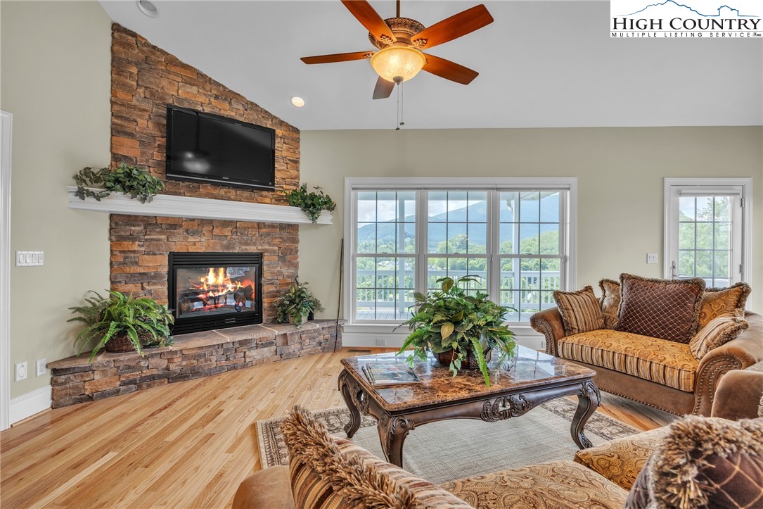 Breathtaking Panoramic Views!! This gorgeous townhome sits on an elevated ridge overlooking the beautiful Jefferson Landing community, multiple golf holes with Mt. Jefferson State Park in the backdrop. The open floor plan design features high ceilings, lovely hardwood floors, natural lighting and a wonderful set up for entertaining with the kitchen centralized between the dining and great room spaces. The large kitchen offers tremendous cabinet and counter space, solid-surface countertops and stainless appliances. The great room has a cozy, stone fireplace and access to the top rear deck. The master suite features large walk-in closet, access to the rear deck, huge bath with double sinks, soaking tub and walk-in tiled shower. The lower level includes two guest suites each with a full bath, a spacious family room with 2nd fireplace and full rear deck to relax and take in the views. With all these desirable attributes, this property would make a wonderful full-time or 2nd home residence. Come see today! Jefferson Landing, a gated golf community, features a magnificent 18 hole golf course. Additional amenities associated with Club Membership include access to the clubhouse, swimming pool with dining/ bar area offering tasty food & drink options, well equipped fitness center, pickleball /tennis courts and Riverside Park, which features a covered pavilion adjoining the New River. Himalayan style putting course & a total of seven par 3 practice holes w/ bar & food options available. There is a $1000 Capital Improvement fee pd to the JL POA, by the buyer at closing.