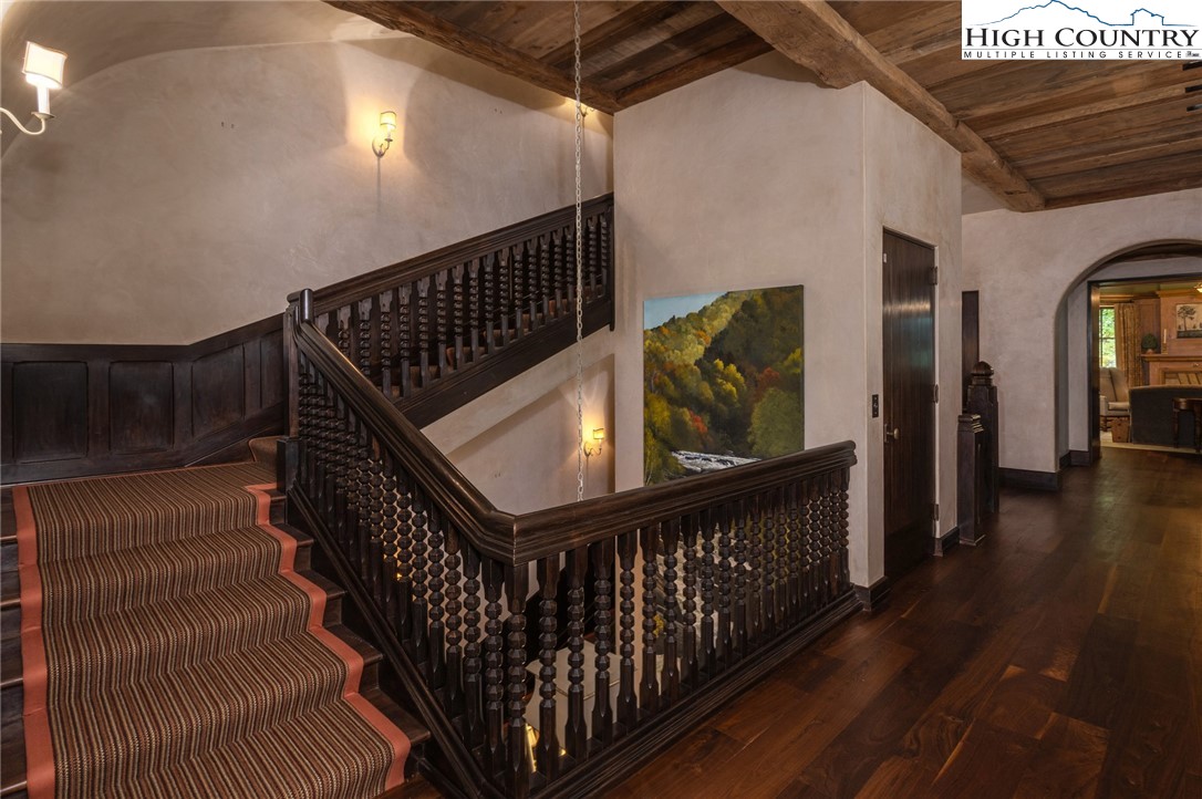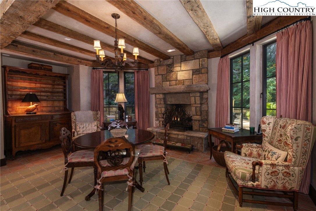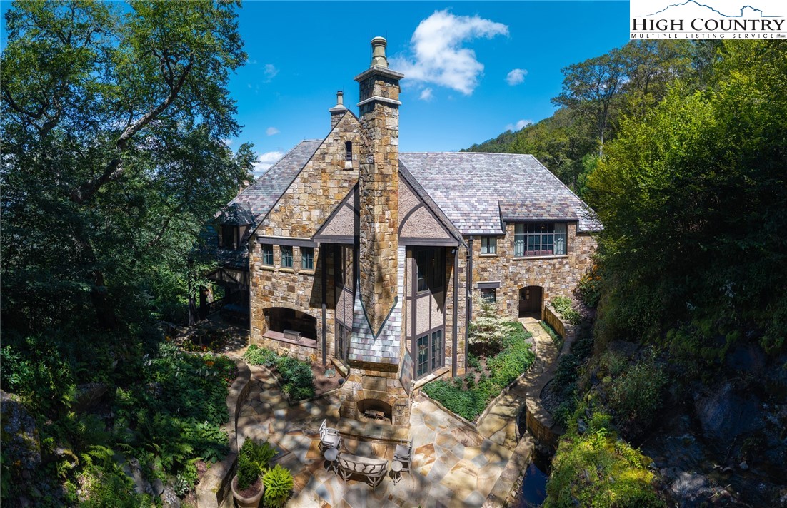 Step into this extraordinary stone Tudor home located in Diamond Creek, renowned for its top-rated golf course, amenities and picturesque surroundings. This impeccably maintained residence seamlessly blends classic elegance with modern craftsmanship, featuring incredible architectural details, including a stunning staircase that serves as a breathtaking focal point of the home..A long driveway affords privacy as you approach this stunning property, surrounded by beautifully landscaped grounds that enhance its charm. The generous-sized rooms provide ample space for both relaxation and entertaining, enhanced by four fireplaces that create a cozy atmosphere throughout the home. Heated stone floors ensure comfort year-round, while reclaimed wood ceilings add unique warmth and character, beautifully complemented by meticulously crafted plaster walls.The kitchen is a chef's delight, featuring top-of-the-line appliances, a large butler's pantry for easy entertaining, and a temperature-controlled wine room conveniently located off the dining room, perfect for hosting gatherings and special occasions.The primary bedroom is a true retreat, complete with its own office and an adjacent library,] providing a perfect space for productivity and relaxation. It also features a private terrace where you can sip coffee while enjoying thee stunning long-range views. The extraordinary primary bathroom boasts luxurious finishes, along with a gracious closet and dressing room for ultimate convenience and style.For fitness enthusiasts, the property includes a gym and an infrared sauna, offering a perfect space to unwind and rejuvenate.For outdoor entertaining, this property is a paradise. The covered terrace features an outdoor fireplace, ideal for savoring breathtaking views, while the rear stone terrace has its own waterfall, creating a serene ambiance. An impressive covered grilling station, complete with a pizza oven, makes outdoor dining a delight.Equipped with state-of-the-art technology, this home features Crestron home automation, an advanced home technology system, geothermal heating for energy efficiency, and phantom electronic screens that enhance the living experience. An elevator ensures easy access to all levels of the home, adding to the convenience and accessibility.Whether you're hosting gatherings or enjoying quiet evenings, this property offers an inviting ambiance that caters to all lifestyles. Don’t miss the opportunity to own a home that exemplifies exquisite design and functionality.