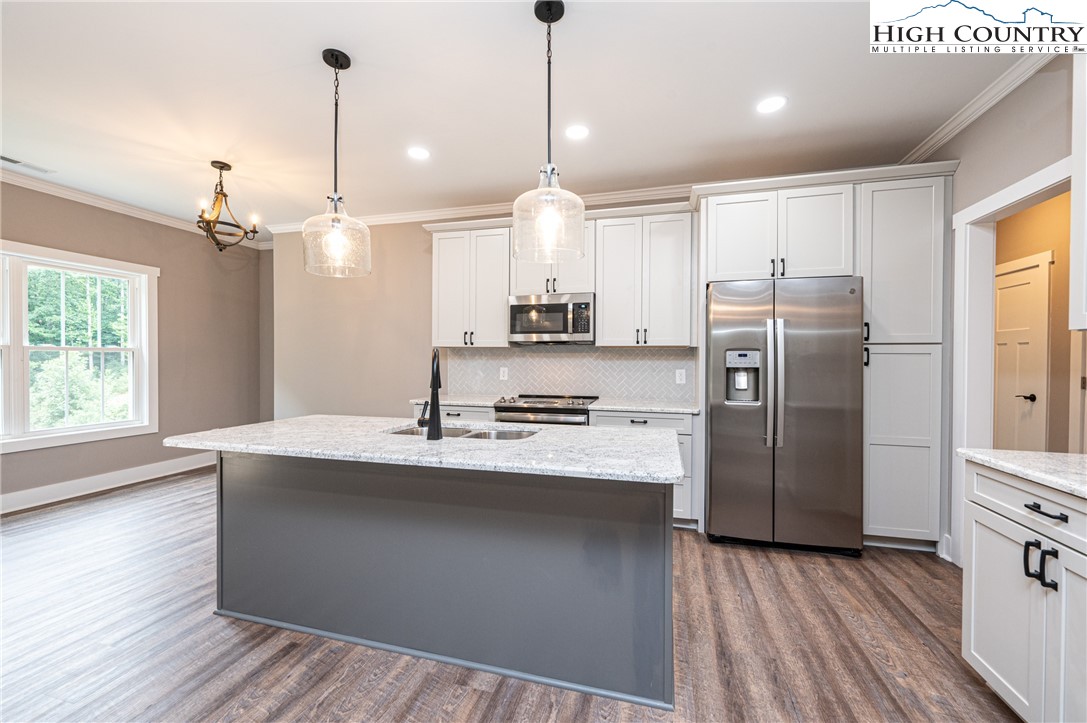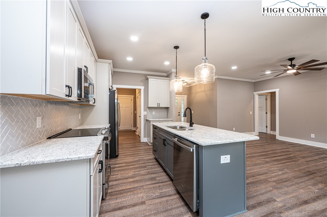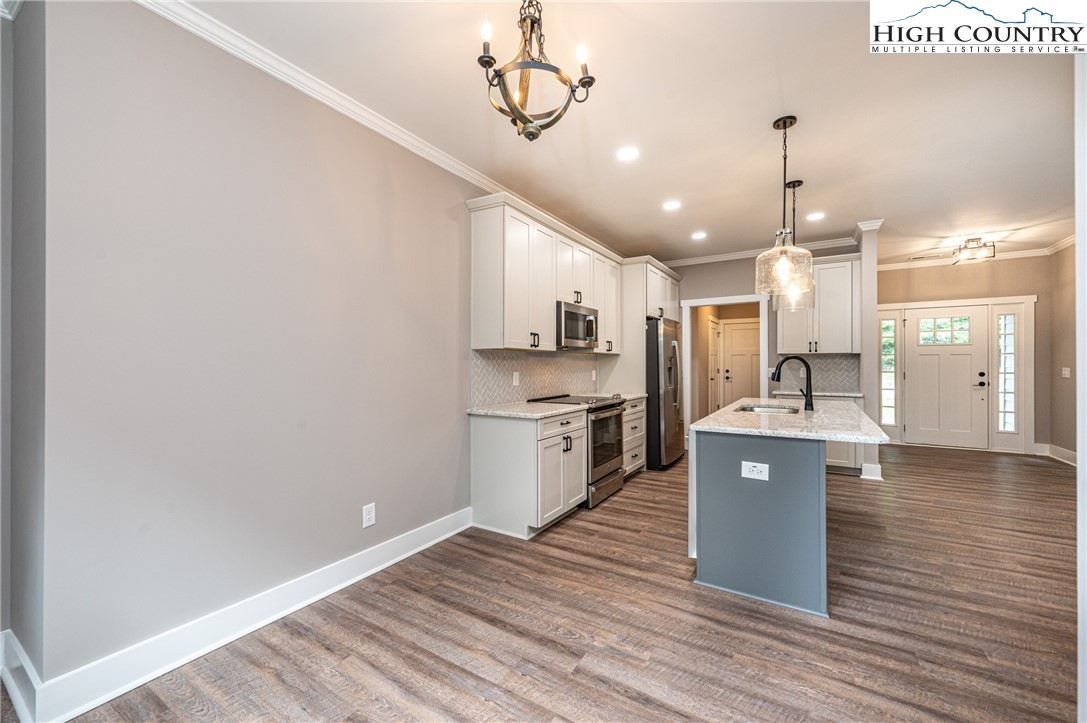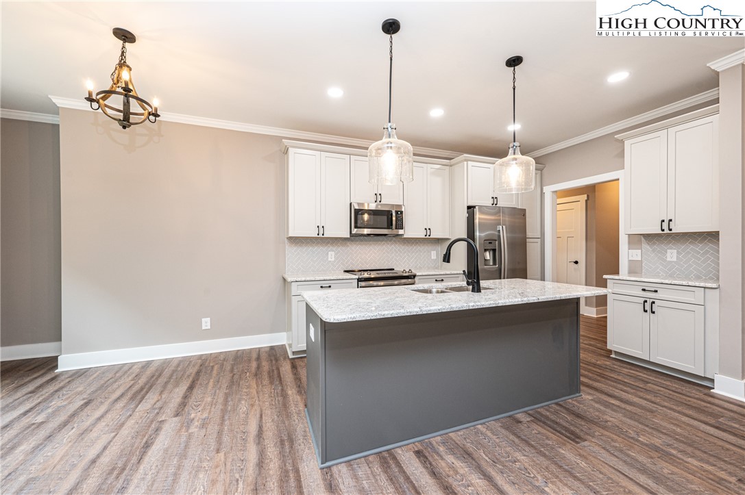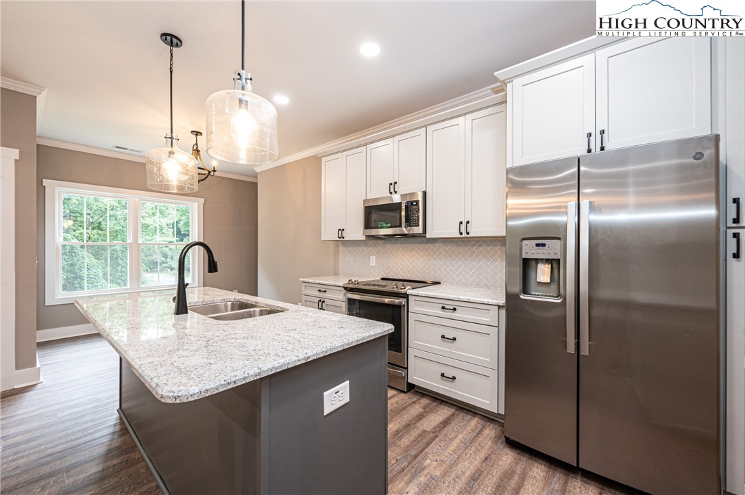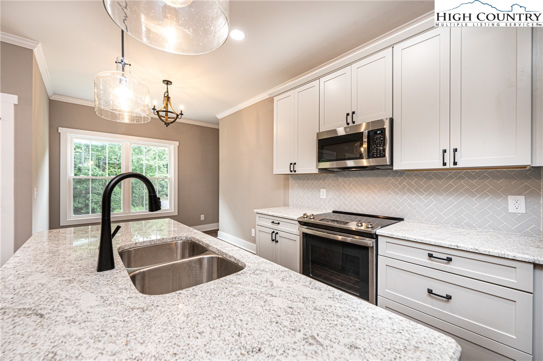 Located in the charming town of Lenoir, The Gateway to the Mountains, this well crafted single level home is going to check all the boxes!!! If you've been searching for a low maintenance home that allows you live the easy life, travel to the mountains after hours or on the weekend, this one is for you! Whether looking for your primary residence or a 2nd home in NC, you're going to love the beautiful quality features throughout & the spacious finished basement. The thoughtfully designed open floor plan boasts stylish flooring, gorgeous fixtures, as well as upper & lower decks for enjoying the change of seasons & your coffee! Custom kitchen w/center island w/bar seating, tile backsplash and granite counter tops. The spacious owner's suite features an ensuite bathroom with barn door entry, stunning tiled shower, dreamy vanity with dual sinks & a walk-in closet! The 2 guest bedrooms offer a centrally located gorgeous bathroom. The main level laundry room offers custom cabinets & a sink. The finished basement provides lots of room for your guests with a large den, a flex room/home office or gym, an alluring guest bathroom & 4th bedroom/2nd primary bedroom. You will enjoy walking on Lenoir's Greenway. An entry is located behind the house! Follow the greenway to the ballfield or just enjoy a nice walk! Within minutes to Blowing Rock, Boone and Hickory! Over an hour to the Charlotte Douglas Airport. An absolute must see!!!