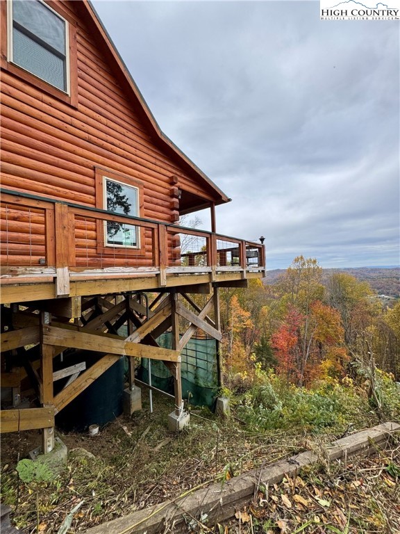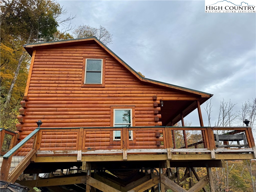 Enjoy the huge long range views from this rustic log cabin in Elk Park! An open floor plan and living area, with a bedroom and full bath on the main level. A cozy loft bedroom and bath upstairs. Step out onto the expansive deck and be amazed by the never ending mountain views or beautiful star filled nights. Just 15 minutes from Banner Elk, this cabin would be a tranquil mountain getaway. Water is through a cistern. Sold with an extra one acre lot for a total of 2.06 acres. Sold as is.
