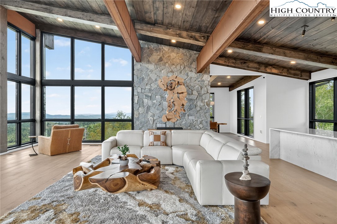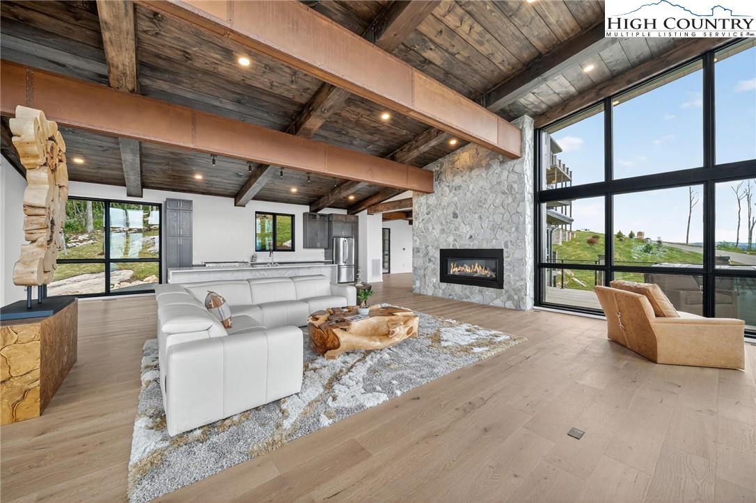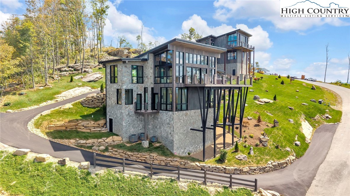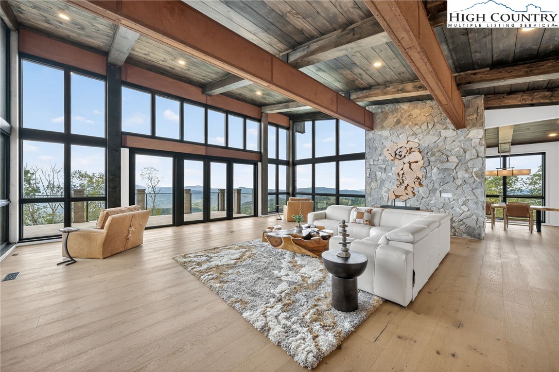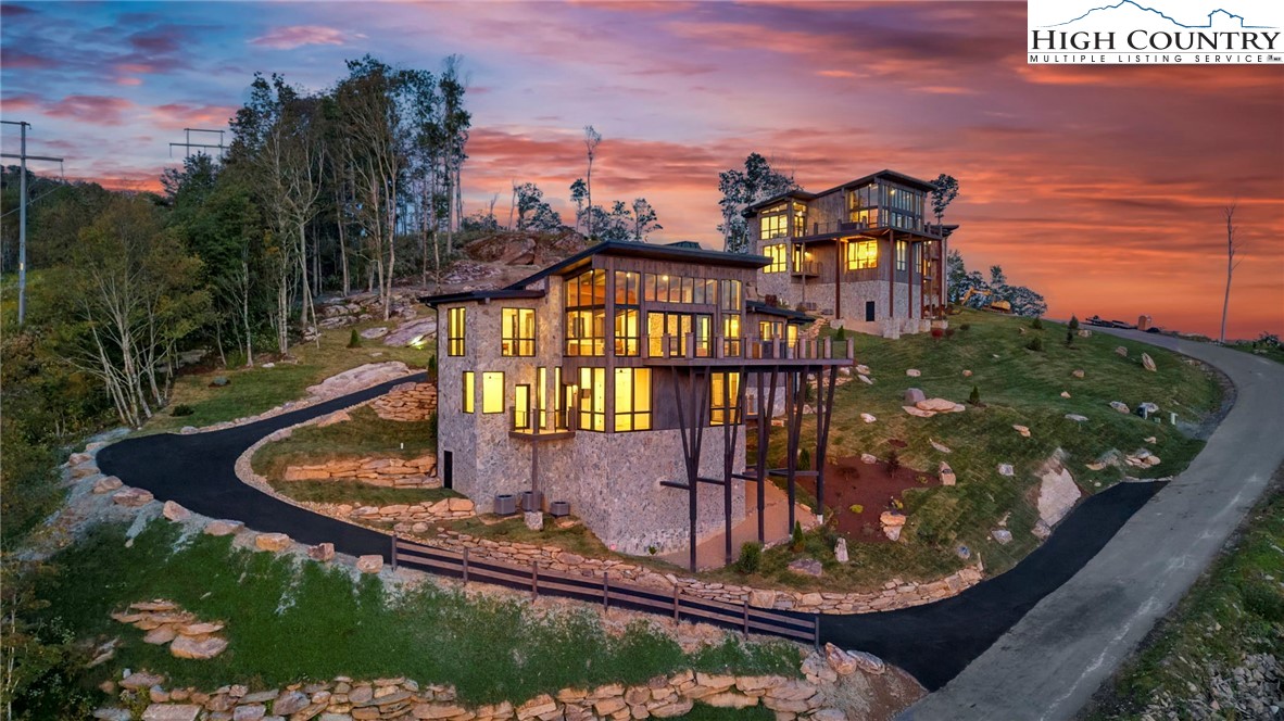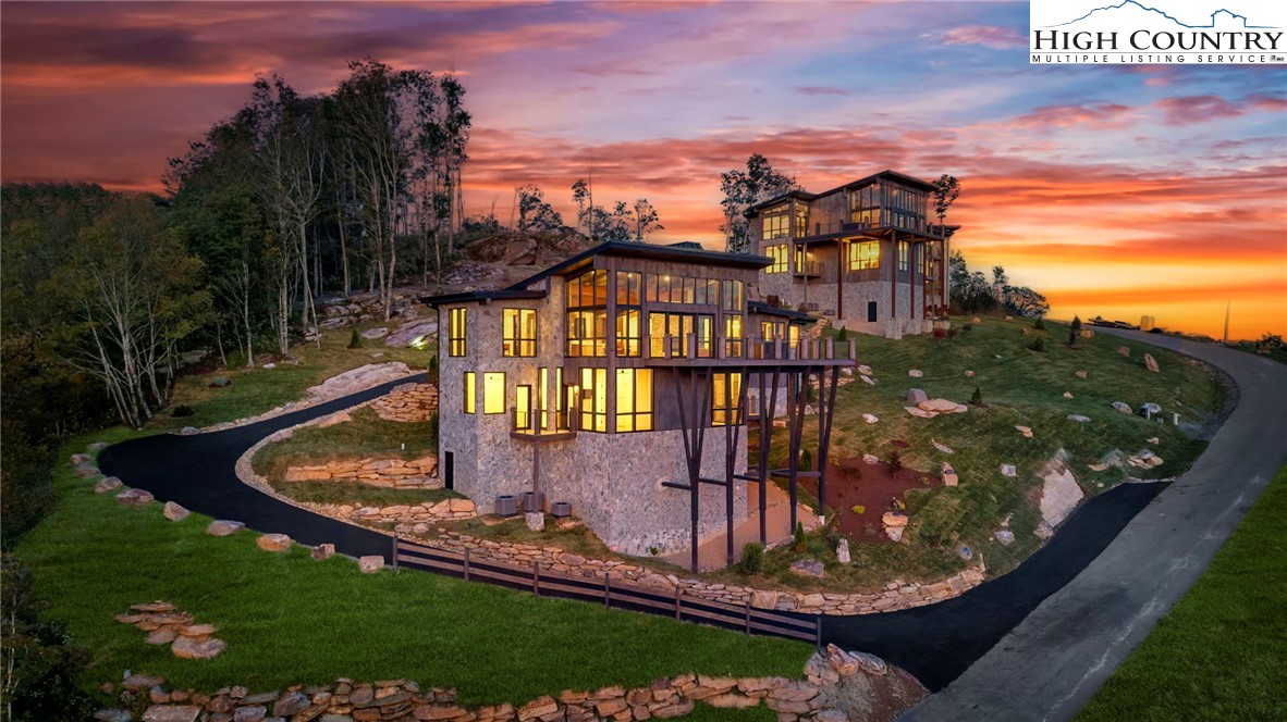 Seize the Rare Opportunity to own Sunset in Paradise, a $4.5 million Masterpiece nestled in the Elite Sunset Section of The Lodges at Eagles Nest. This architectural triumph redefines luxury mountain living with unparalleled design and craftsmanship. Meticulously crafted over 3 years, this 1.202-acre estate blends rugged natural splendor with exquisite elegance, offering 4,959 sq. ft. of heated living space & a 593 sq. ft. 2-car garage w/ modern frosted glass doors. Perched at an elevation of 4,400 feet above sea level, it commands Breathtaking Panoramic views from North Carolina to Tennessee, where Mesmerizing Sunsets Ignite the Senses. The exterior radiates modern mountain opulence w/ white pine-stained wood siding, expansive floor-to-ceiling windows, & rustic metal beams. A $250,000 investment in bespoke landscaping featuring natural boulders, custom-designed lighting, and intricate hardscaping creates an unforgettable first impression. Unwind on the expansive deck, where a state-of-the-art hot tub sets the stage for starry nights, framed by hand-laid wooden beams and stone pillars that showcase Awe-Inspiring Vistas. Step through the Grand Custom Glass front door, greeted by a dazzling chandelier illuminating the great room. Soaring two-story glass panels bathe the space in natural light, framing the majestic scenery. Nickel gap white pine-stained ceilings, rustic beams, light-toned floors, hand-laid stone, & custom rusted metal gas fireplace marry rustic charm w/ contemporary elegance. The Gourmet Kitchen is a Chef’s Dream, boasting a marble waterfall island, premium stainless-steel appliances, & a wine cooler w/ Formal Dining. Downstairs, a custom-made bar, a wine cooler, & versatile bonus room ideal as a movie theater, family haven, or game lounge elevate entertainment to new heights. Custom Viewrail metal staircase railings seamlessly connect the outdoor deck to the interior, complemented by handcrafted wood ceilings, stone accents, and glass windows that blend exterior grandeur with indoor luxury. The estate features five lavish bedrooms, four full bathrooms adorned with hand-laid stone, marble, and bespoke tiles, as well as one half-bath. The main floor primary suite is a sanctuary, featuring a spa-inspired bathroom and an adjacent utility room. Commissioned Artwork and Lavish Furniture throughout elevate the home’s handcrafted allure. The garage, with its hand-painted bronze epoxy flooring, exudes artistry. Within the gated Eagles Nest community, indulge in a lifestyle of unmatched vibrancy with ATV and hiking trails, a ropes course, playground, dog park, mini-golf, disc golf, archery, a multi-use sports field, and courts for volleyball, basketball, and pickleball. Savor luxurious amenities like Eagles Nest Winery, a cutting-edge fitness center, two helicopter pads, dining at Epic Chophouse, Sportsman’s Grille, and BBQ Pavilion, a convenient Dollar General, and an outdoor amphitheater hosting captivating seasonal concerts, Elk River access with over 4,000 Feet of waterfrontage for World-Class Trout Fishing! Sunset in Paradise is not just a home, it’s a Once-In-A-Lifetime Retreat where Luxury, Nature, and Architectural Brilliance Converge, offering an Unrivaled Lifestyle Amid the Peaks. 4 YEAR HOME WARRANTY! Don’t miss the chance to own this Extraordinary Estate. A neighboring 7,055 sq. ft. property, listed as MLS #258143, is also available for purchase, presenting a Rare Opportunity to create a Main and Guest House Legacy.
