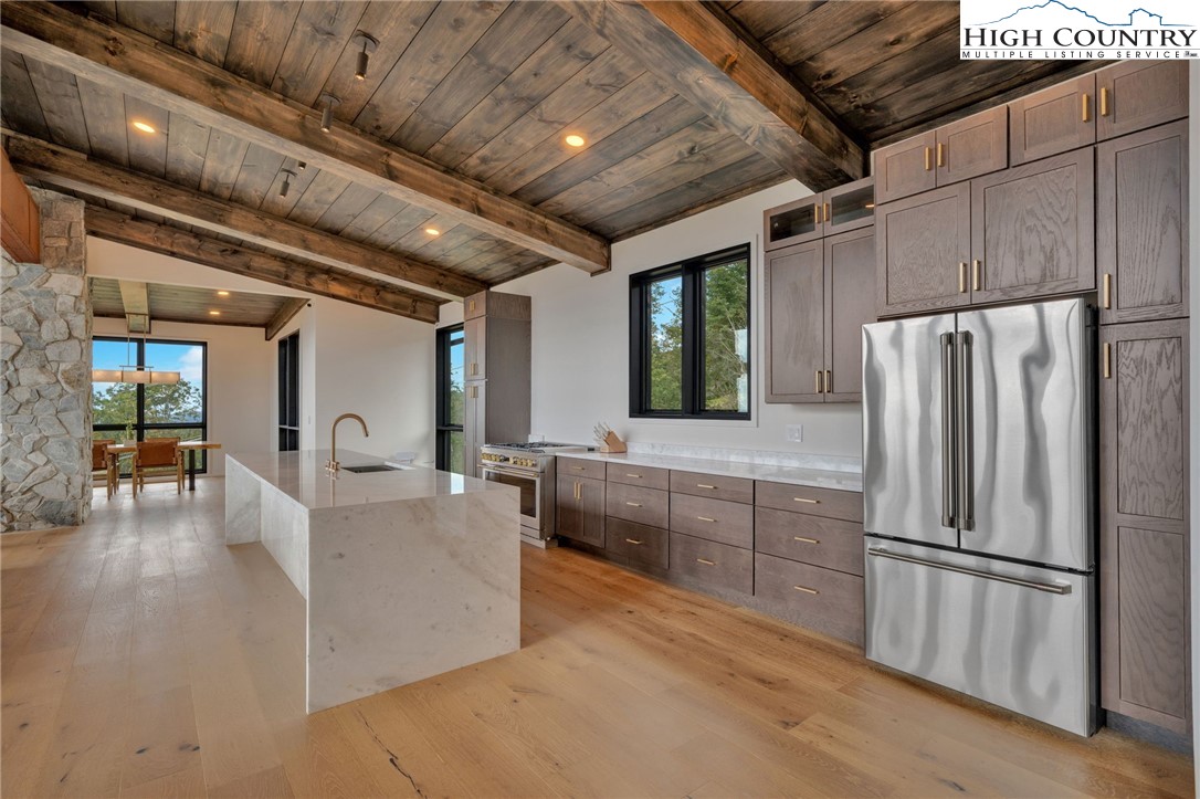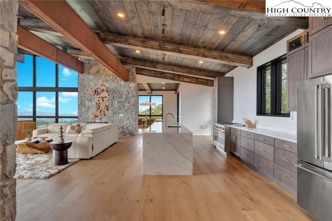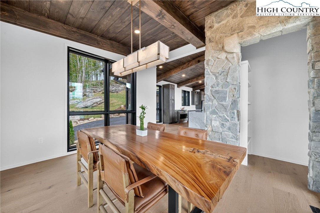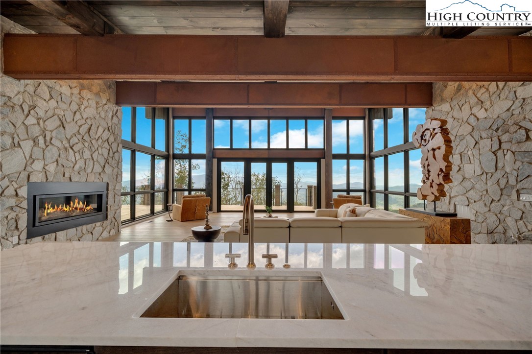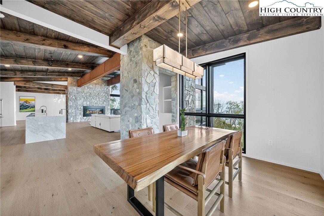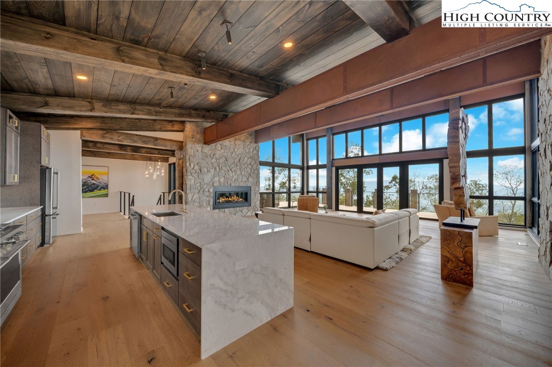 Seize the Rare Opportunity to own Sunset in Paradise, a $4.5 million Masterpiece nestled in the Elite Sunset Section of The Lodges at Eagles Nest. This architectural triumph redefines luxury mountain living with unparalleled design and craftsmanship. Meticulously crafted over 3 years, this 1.202-acre estate blends rugged natural splendor with exquisite elegance, offering 4,959 sq. ft. of heated living space & a 593 sq. ft. 2-car garage w/ modern frosted glass doors. Perched at an elevation of 4,400 feet above sea level, it commands Breathtaking Panoramic views from North Carolina to Tennessee, where Mesmerizing Sunsets Ignite the Senses. The exterior radiates modern mountain opulence w/ white pine-stained wood siding, expansive floor-to-ceiling windows, & rustic metal beams. A $250,000 investment in bespoke landscaping featuring natural boulders, custom-designed lighting, and intricate hardscaping creates an unforgettable first impression. Unwind on the expansive deck, where a state-of-the-art hot tub sets the stage for starry nights, framed by hand-laid wooden beams and stone pillars that showcase Awe-Inspiring Vistas. Step through the Grand Custom Glass front door, greeted by a dazzling chandelier illuminating the great room. Soaring two-story glass panels bathe the space in natural light, framing the majestic scenery. Nickel gap white pine-stained ceilings, rustic beams, light-toned floors, hand-laid stone, & custom rusted metal gas fireplace marry rustic charm w/ contemporary elegance. The Gourmet Kitchen is a Chef’s Dream, boasting a marble waterfall island, premium stainless-steel appliances, & a wine cooler w/ Formal Dining. Downstairs, a custom-made bar, a wine cooler, & versatile bonus room ideal as a movie theater, family haven, or game lounge elevate entertainment to new heights. Custom Viewrail metal staircase railings seamlessly connect the outdoor deck to the interior, complemented by handcrafted wood ceilings, stone accents, and glass windows that blend exterior grandeur with indoor luxury. The estate features five lavish bedrooms, four full bathrooms adorned with hand-laid stone, marble, and bespoke tiles, as well as one half-bath. The main floor primary suite is a sanctuary, featuring a spa-inspired bathroom and an adjacent utility room. Commissioned Artwork and Lavish Furniture throughout elevate the home’s handcrafted allure. The garage, with its hand-painted bronze epoxy flooring, exudes artistry. Within the gated Eagles Nest community, indulge in a lifestyle of unmatched vibrancy with ATV and hiking trails, a ropes course, playground, dog park, mini-golf, disc golf, archery, a multi-use sports field, and courts for volleyball, basketball, and pickleball. Savor luxurious amenities like Eagles Nest Winery, a cutting-edge fitness center, two helicopter pads, dining at Epic Chophouse, Sportsman’s Grille, and BBQ Pavilion, a convenient Dollar General, and an outdoor amphitheater hosting captivating seasonal concerts, Elk River access with over 4,000 Feet of waterfrontage for World-Class Trout Fishing! Sunset in Paradise is not just a home, it’s a Once-In-A-Lifetime Retreat where Luxury, Nature, and Architectural Brilliance Converge, offering an Unrivaled Lifestyle Amid the Peaks. 4 YEAR HOME WARRANTY! Don’t miss the chance to own this Extraordinary Estate. A neighboring 7,055 sq. ft. property, listed as MLS #258143, is also available for purchase, presenting a Rare Opportunity to create a Main and Guest House Legacy.