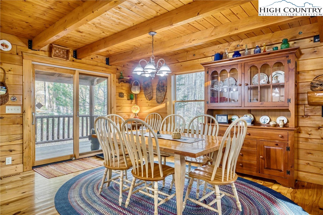 There's no place like home, especially a Log Home on 20 wooded acres in the Blue Ridge Mountains. Charm, coziness, warmth, family, friends. Furnished with antiques, quilts, lamps, linens, rocking chairs, and handmade log furniture. Comfy sofas, thick rugs, and a wood stove to cozy up to. Move in ready! Check out the photos! Did you see the massive support beams and the double front porches? Or the main floor primary bedroom suite with soaking tub and walk-in-closet? Built of Canadian white cedar logs and Norwegian spruce tongue/groove walls and vaulted ceilings (per seller). Peacefully secluded, in Austin Creek, a small, gated community of 10-35 acre lots, adjacent to Pisgah National Forest. 12 miles to the Village of Blowing Rock NC. Annual HOA fees are only $600. Open great-room/kitchen/dining floor plan. Upstairs are 2 BR 1 BA and large den in loft. The basement is partially finished with a den and entrance to the lower front porch and the garage. Relax in Mother Nature’s beauty: crisp fall leaves, cardinals flitting about after a snow shower, bright green spring buds popping out, and dusk, cooling the valley on warm summer nights. Head out to the Farmers Market in the morning. Hike the National Forest from the community trail head. Savor mountain trout at superb restaurants in Blowing Rock. The laid-back mountain vibe awaits!