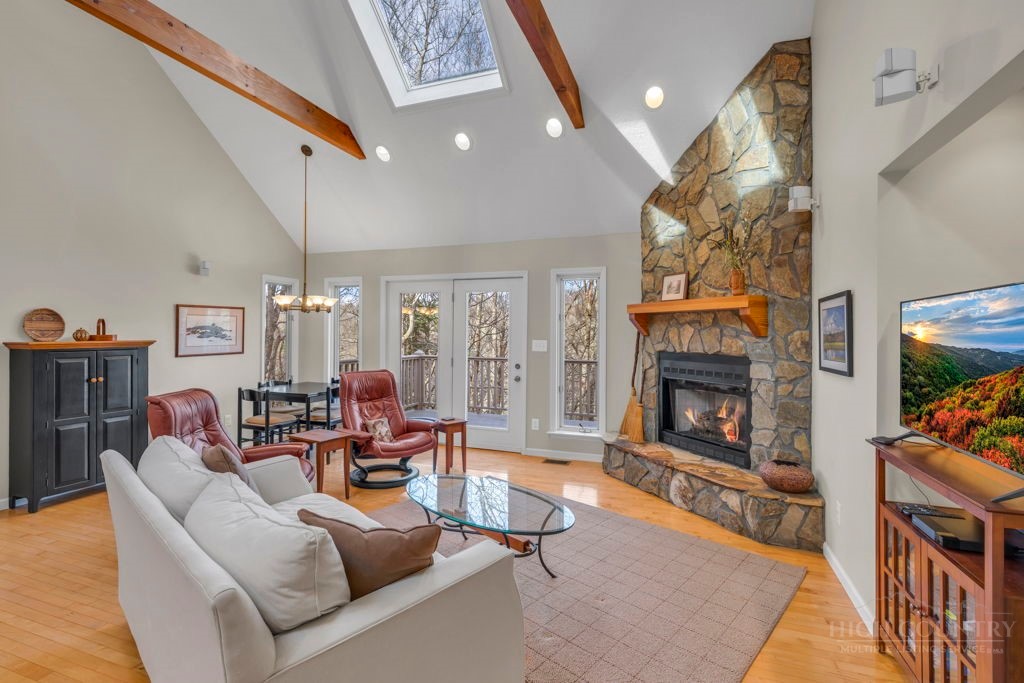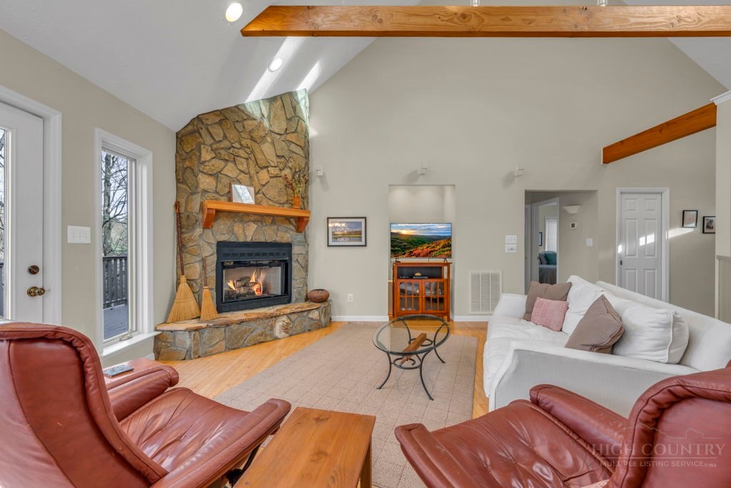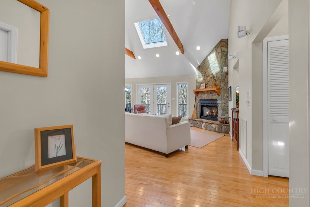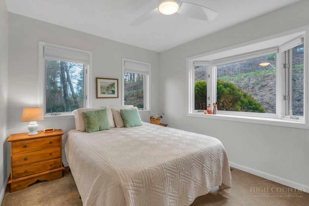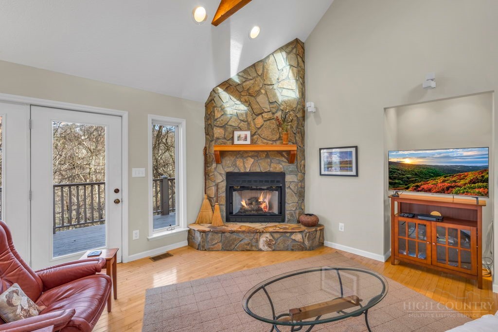 Close to Everything! This bright in-town cottage is neat as a pin, and checks a whole lot of boxes! On the main floor, you'll find the primary suite, great room, kitchen, 2 guest rooms, hall bath, and pantry. Stone fireplace with gas logs, open floor plan, kitchen with bar, and a great deck overlooking pretty woods. Offered comfortably furnished. City water and sewer, city streets. Convenient chute to laundry center on lower level. A small homeowners association takes care of landscaping common areas. Only a couple minutes to shopping, groceries, pharmacy, and more.