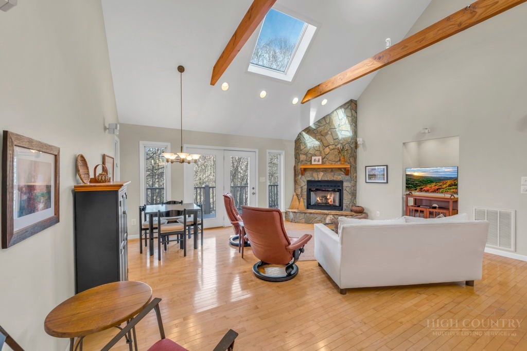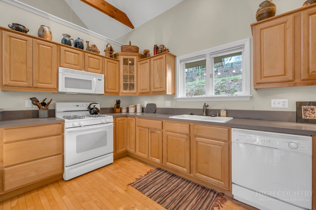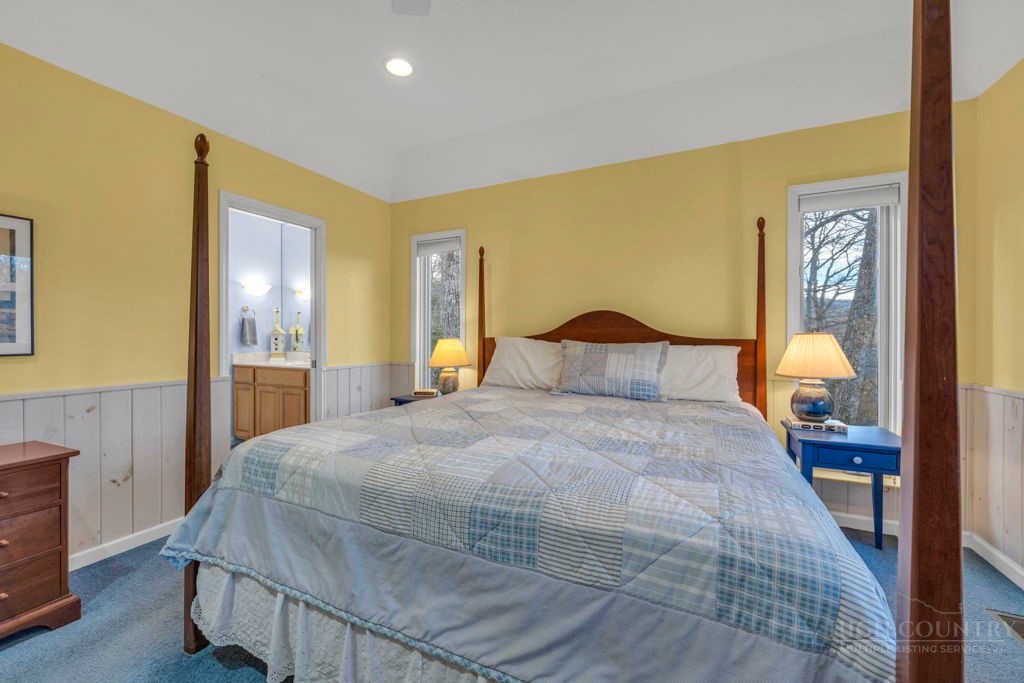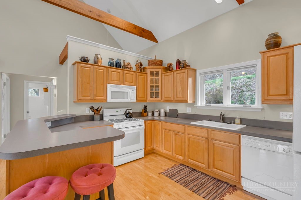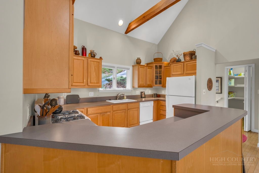 Close to Everything! This bright in-town cottage is neat as a pin, and checks a whole lot of boxes! On the main floor, you'll find the primary suite, great room, kitchen, 2 guest rooms, hall bath, and pantry. Stone fireplace with gas logs, open floor plan, kitchen with bar, and a great deck overlooking pretty woods. Offered comfortably furnished. City water and sewer, city streets. Convenient chute to laundry center on lower level. A small homeowners association takes care of landscaping common areas. Only a couple minutes to shopping, groceries, pharmacy, and more.