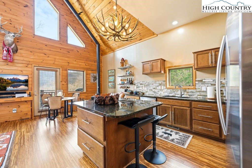 Presenting a fully furnished custom mountain residence set on 3.24 private acres in the desirable Eagle Ridge Estates community of Roan Mountain. On a peaceful cul-de-sac in the Heaton Creek area and positioned at approximately 3,500 feet in elevation, this property offers privacy, comfort and proximity to outdoor recreation, just one mile from Roan Mountain State Park. Thoughtfully designed, the home features three bedrooms and two full baths across approximately 1,300 square feet. The interior showcases bamboo flooring throughout the main living areas and beautifully updated baths finished with elegant marble tile and towel warmers. The kitchen is equipped with custom cabinetry featuring large pot and pan drawers, slide-out pantry storage, soft-close hinges and a corner lazy Susan, along with sealed granite countertops and stainless steel appliances. Custom window treatments, upgraded ceiling fans and Anderson storm doors enhance style and functionality throughout the residence. Comfort and reliability are key highlights, including a Jotul wood stove capable of heating the entire home during winter months, a whole-house generator for backup power and an HVAC system with extended warranty coverage. The property also features Jeld-Wen insulated windows and a durable metal roof. Modern technology is seamlessly integrated with a full Starlink system for high-speed connectivity and Nest security cameras positioned around the home. The residence is offered fully furnished with curated pieces, including a solid Aspen bed in the primary bedroom and a hickory bed in one of the additional bedrooms. Outdoor features include landscaped grounds, outdoor sensor lighting and multiple parking options including a spacious two-car garage with automatic openers and additional upper-level parking near the welcoming front porch. A detached, fully insulated 160-square-foot outbuilding adds exceptional versatility to the property. This light-filled space features abundant natural light, a sink, premium flooring and dedicated heating and air conditioning, making it ideal for use as a private office, creative studio or guest retreat. A cord of wood is included for use with the wood stove, adding charm and practicality to the mountain lifestyle. Conveniently within driving distance of Banner Elk, Boone and Asheville, and approximately 35 minutes from Beech Mountain Resort and Sugar Mountain Resort, this property offers an exceptional opportunity for a primary residence, second home or vacation rental investment. Experience the beauty of the Appalachian Highlands from this well-appointed mountain retreat in Eagle Ridge Estates. There is a discrepancy between the tax record and the professional measurements (it appears the tax office left off the upper level in its calculations).