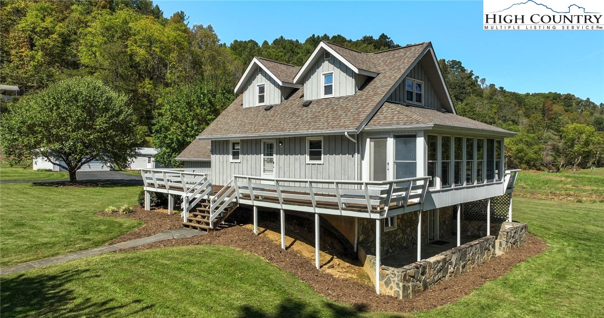 Beautiful Riverfront Home on 6.718 Acres with Over 1,500 Feet of New River Frontage! This custom-built 3-bedroom, 2-bath board & batten home offers an exceptional riverfront setting with more than 1,500 feet of New River frontage, a pond, and gently rolling pasture on 6.718 acres. Lovingly crafted and occupied only by the family who built it, the home features hand-selected cherry, black walnut, and pine wood throughout, giving it a warm, timeless character. The main level includes a living room, kitchen, dining space, a bedroom, and a full bathroom. A heated sunroom overlooks the river— for enjoying year-round views. Upstairs are two additional bedrooms and another full bath. The unfinished basement provides lots of potential, with plumbing in place for a third bathroom that includes a stand-up shower enclosure, as well as the laundry area and walk-out access to a stone patio. A 2-car detached garage near the home includes a 325 sq. ft. unfinished attic/storage area. A second 589 sq ft detached garage offers ideal space for additional vehicles, equipment, or potential barn/farm use. The225 sq ft storage shed can convey or be removed at buyer’s preference. This is a rare opportunity to own such a special property with tons of river frontage, mini-farm potential, spacious garages, and a wonderful home. Enjoy the peace and beauty of riverfront living in this one-of-a-kind property—an incredible opportunity to own a piece of the New River’s natural charm.
