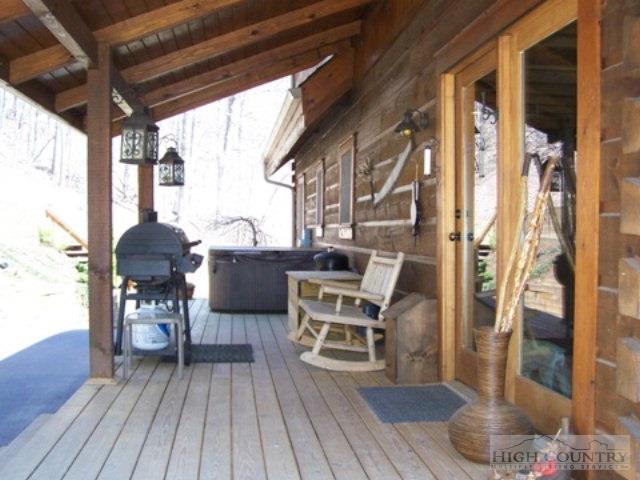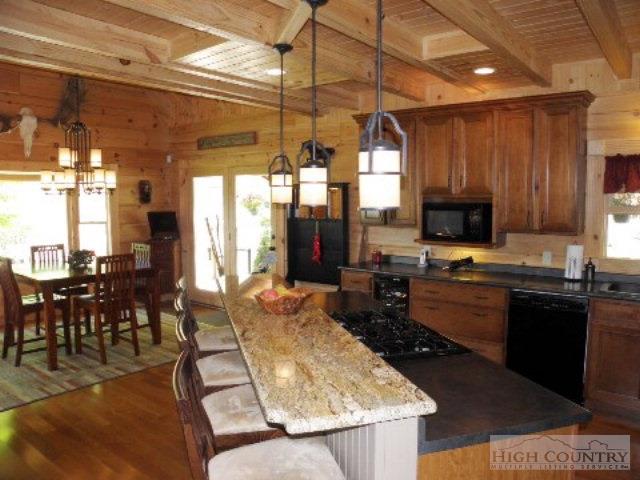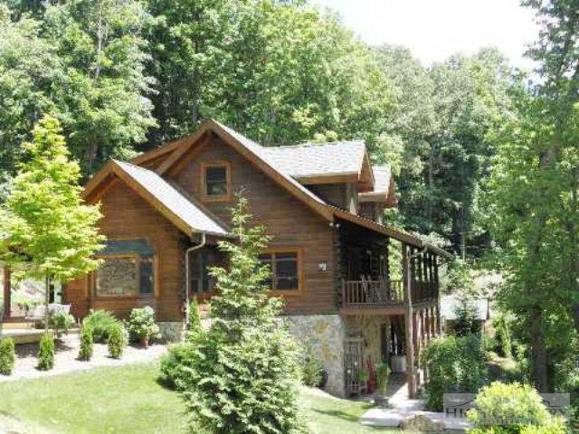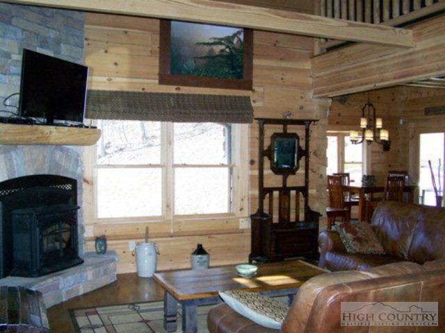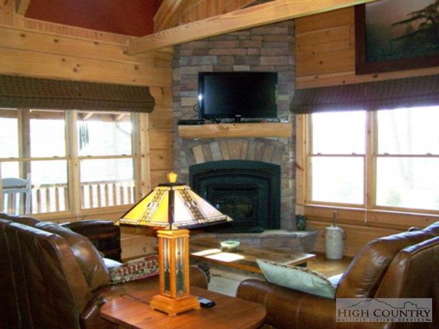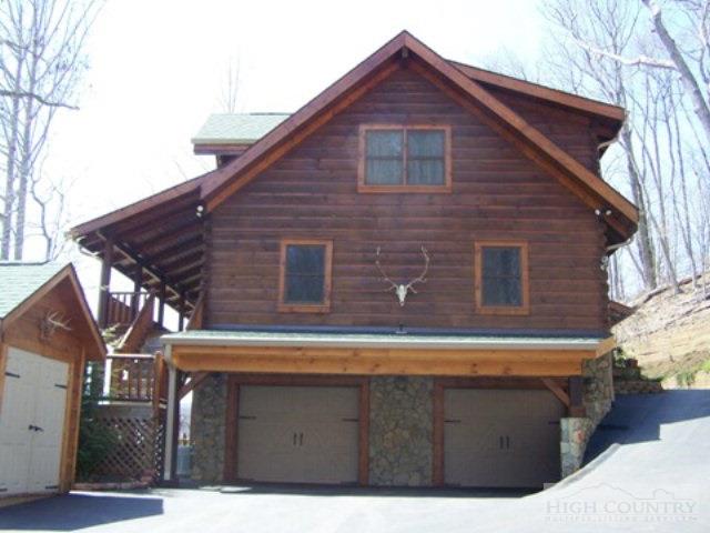 SURROUND YOURSELF WITH QUALITY & COMFORT INSIDE & OUT! This like-new custom Jim Barna log home features a spacious great room with vaulted & beamed ceiling and hardwood floors throughout. Main level also offers 2 bedrooms and full bath. Upper level features open loft suitable for office/study and large master suite with walk-in closet. Lower level offers family/recreation room with dual-side gas fireplace, third full bath and over-sized garage for one vehicle and lots of toys. Includes two lots totaling 2.105 acres offering an additional building site. See virtual tour! If you enjoy being outdoors, you will love the choices...back covered porch with hot tub, brand new summer kitchen featuring built-in grill & refrigerator and outdoor fireplace, lower deck with second outdoor fireplace or covered front porch overlooking lake on adjoining property. As if that were not enough, enjoy two outbuildings with electricity, 360-degree exterior illumination, security/fire alarm, back-up generator, energy efficient pellet burning fireplace, ample closet & storage space.