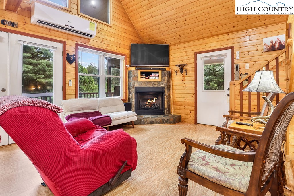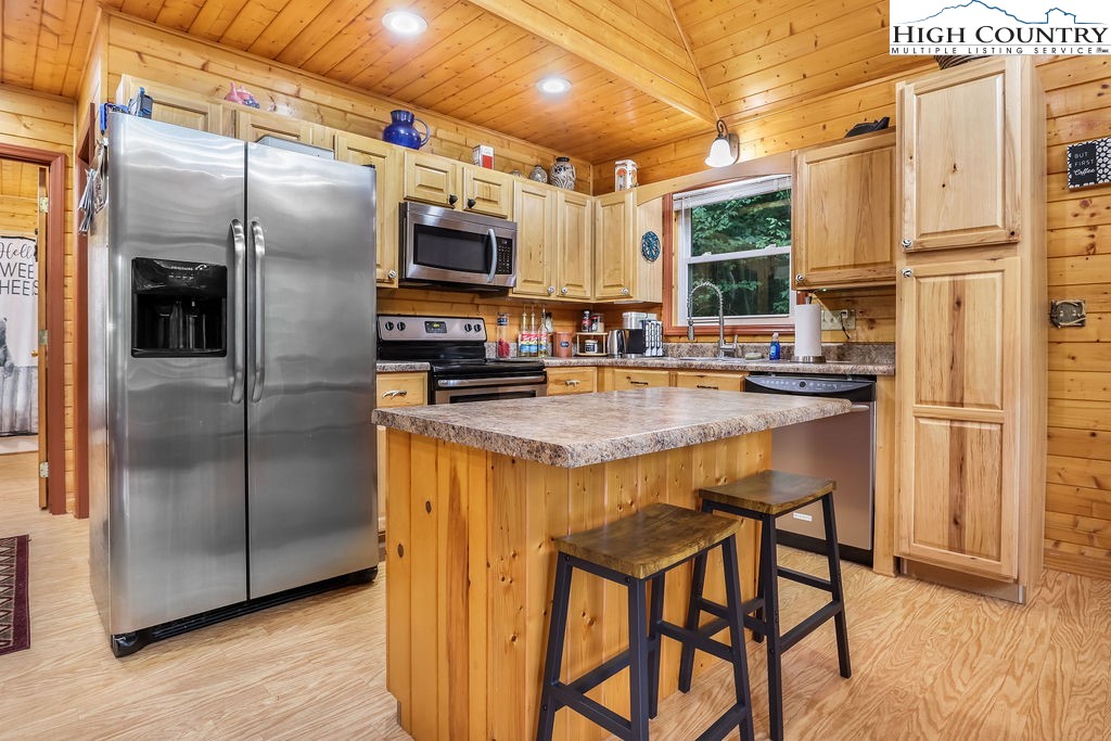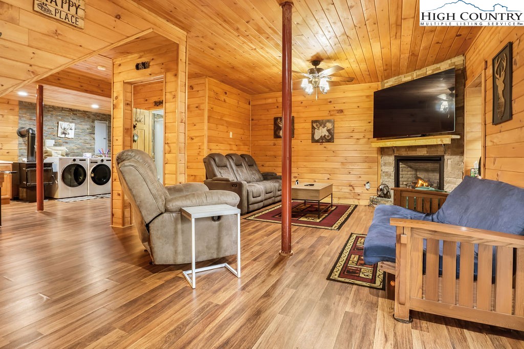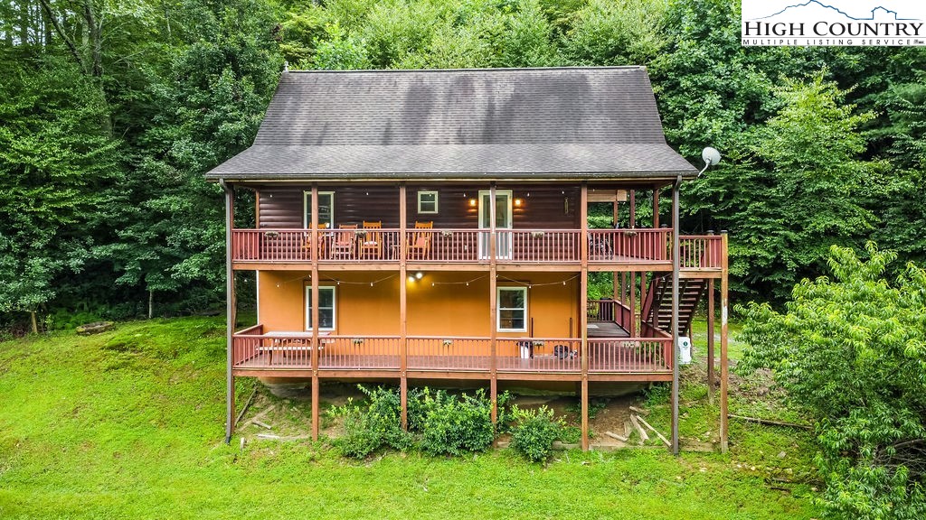 Spacious 3-bedroom, 3-bath, three-level cabin on 2.01 acres in the scenic hills of Ashe County. This well-maintained home offers two separate living areas, a fully finished walk-out basement, and multiple outdoor living spaces including a covered wrap-around deck, front porch, and side porch. Interior features include a fully equipped kitchen with electric range and grill top, dining area, and comfortable gathering spaces on each level. The property’s wooded setting provides privacy, seasonal water views, and the sound of a nearby creek. Located off a quiet gravel road with level parking for four vehicles. Convenient to Helton Creek, Grayson Highlands, and downtown West Jefferson for shopping and dining.