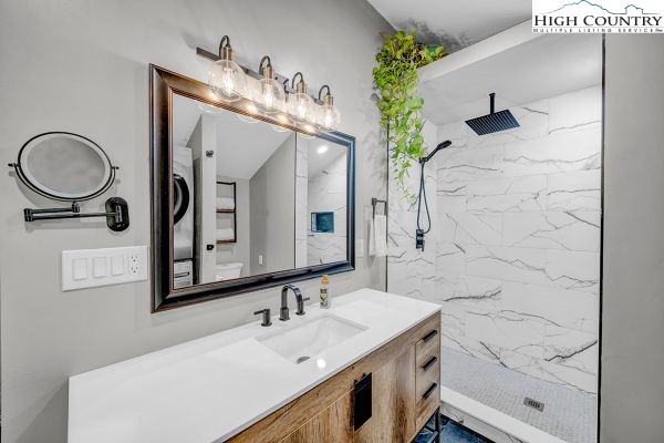 Discover a rare rental opportunity between Boone and Banner Elk, right at the base of majestic Grandfather Mountain. This charming retreat offers the unique amenities guests dream of, with the renowned Profile Trail just steps behind the home and sparkling waterfalls and trout-filled streams meandering through the neighborhood. Designed with flexibility in mind, the property features two driveways that allow for ample parking or even the option to create separate entrances for two rentable units—upstairs and downstairs. This four-bedroom, three-and-a-half-bath home boasts nearly 2,000 square feet of versatile space, with an additional 978 square feet on the updated/renovated bottom level. Inside, you’ll find room for fun and relaxation, with spaces thoughtfully set up as a dedicated home gym, a cozy playroom or movie theater, and multiple living areas that maximize rental potential and personal enjoyment. Recent updates make this property shine even brighter, including a brand-new 20-by-16-foot deck with stairs, stylishly renovated baths, fresh carpet upstairs and modern split units throughout. Additional upgrades include new appliances, a radon mitigation system and a new water heater, which adds peace of mind and convenience. Other updates have also been made that are not mentioned here, further enhancing the home’s value and livability. Whether you’re looking for an investment that attracts renters with its location and amenities or a personal mountain getaway designed for comfort and flexibility, this home offers the best of both worlds. Note: There is a discrepancy in square footage between professional measurements and the tax records of 1,206 square feet. Downstairs was updated/renovated by seller without permits.