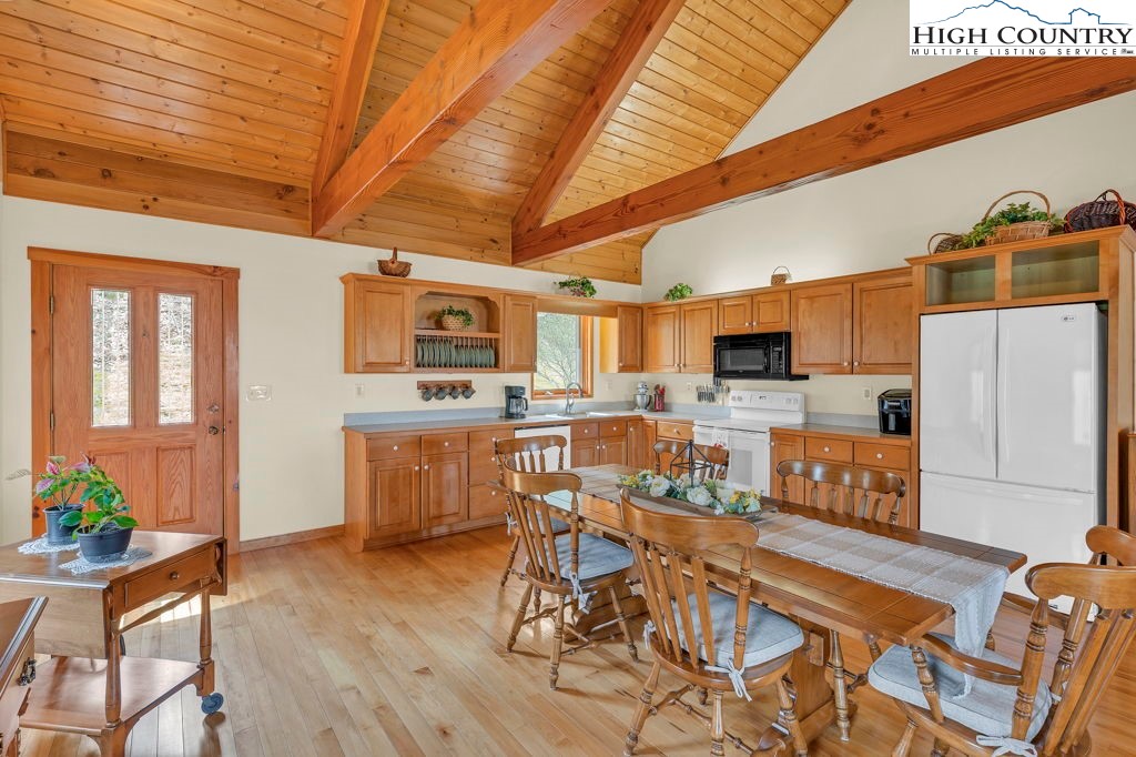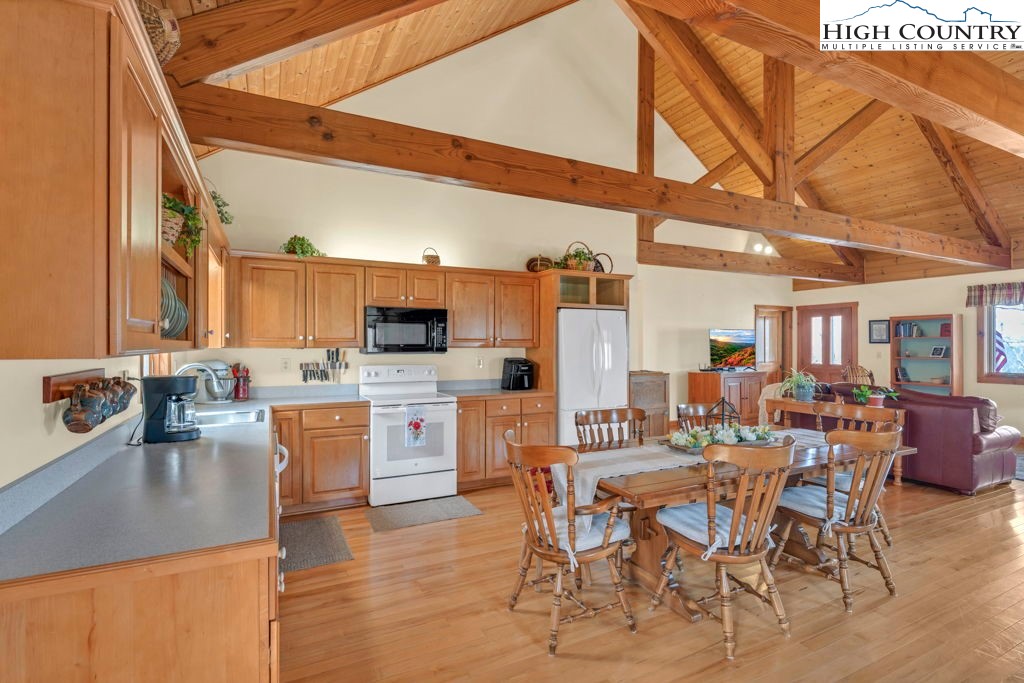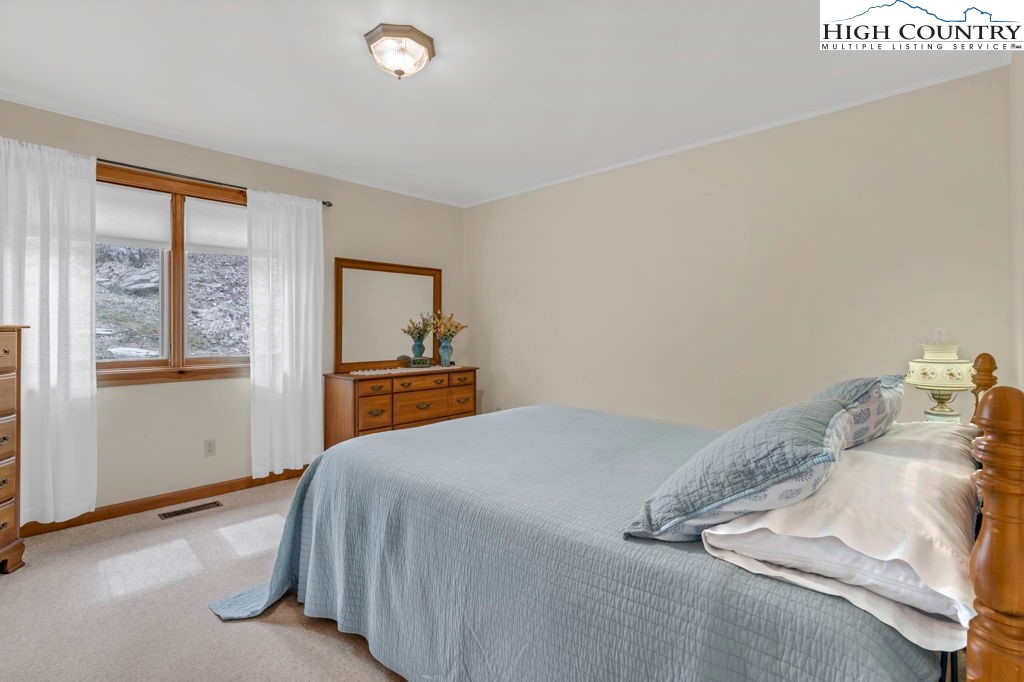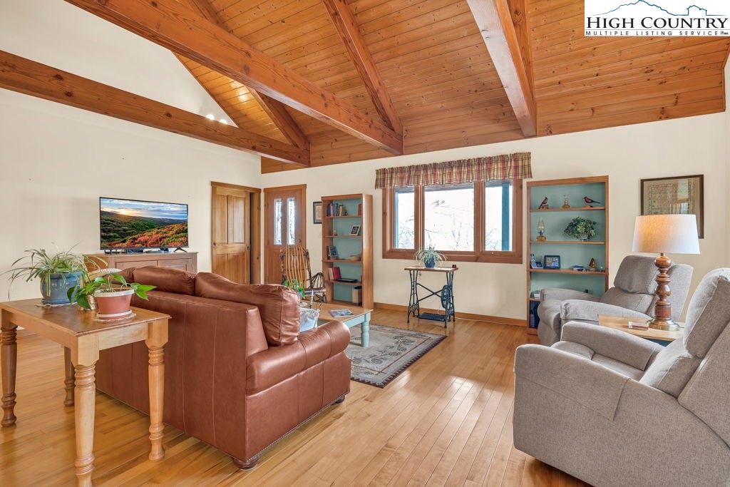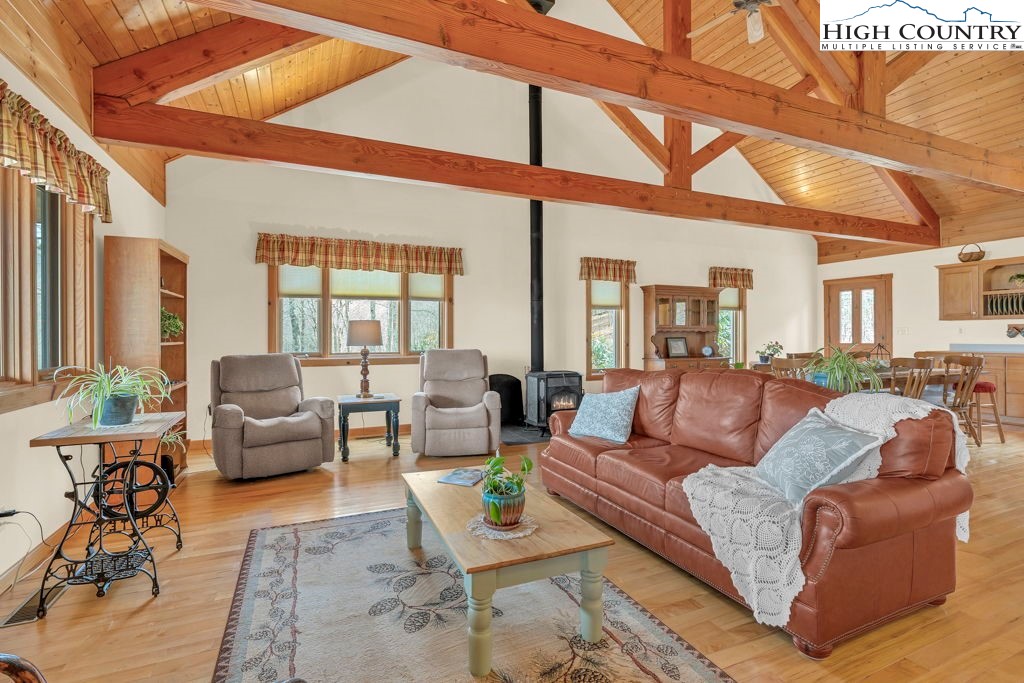 This one-owner home was constructed under the owner's close supervision, with every detail of the workmanship overseen from start to finish. Built with pride and attention to quality, this home has served these sellers as a primary home for over 25 years and remains in excellent condition. The warm and inviting great room features heavy timber construction, soaring tongue-and-groove ceilings, and Douglas fir beams. Well-placed windows fill the space with natural light from front to back, creating a bright, open atmosphere. The floor plan combines living, dining, and kitchen areas with maple hardwood flooring and solid interior doors throughout. A highly efficient and aesthetically pleasing Soapstone wood stove serves as the heart of the home, offering both warmth and comfort on chilly mountain evenings. A new Bosch heat pump was installed in 2025 for efficient year-round comfort. The main level also offers a primary bedroom with ensuite bath and a second bedroom and bath. Let the mountain air refresh you from the covered front deck with cedar ceilings, situated to frame the seasonal mountain views. You are going to love this space — and yes, the porch swing stays! Downstairs, you’ll find a practical basement with laundry, workspace, and a convenient one-car garage. Located in the Blowing Rock School District and within minutes of the Blue Ridge Parkway, this quality-built home combines thoughtful design and craftsmanship. Ready for its next chapter — come experience the serenity and meticulous care this special property offers.