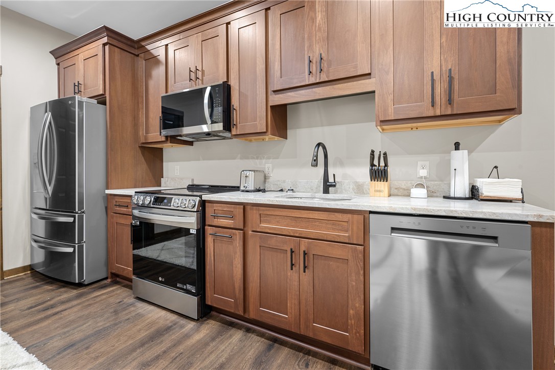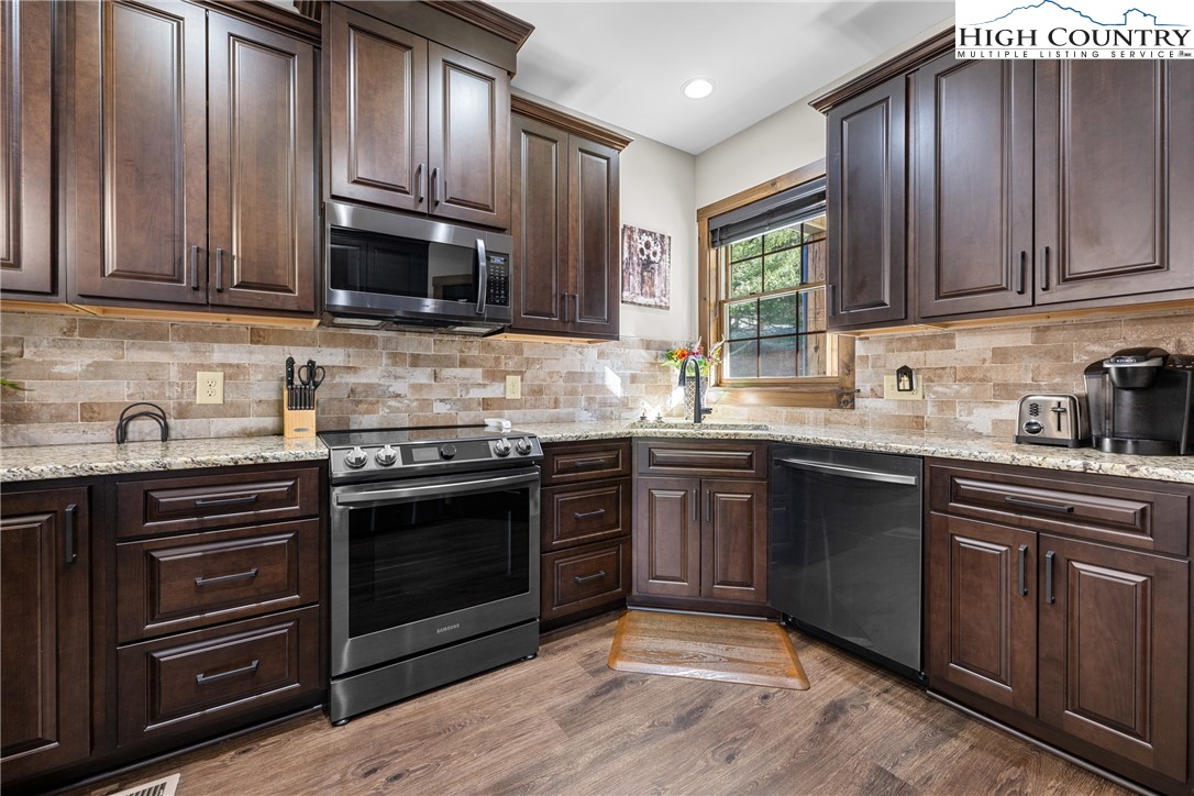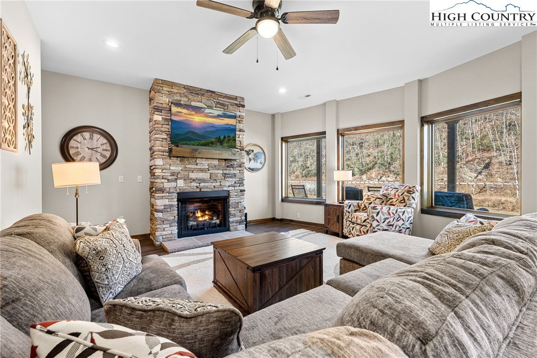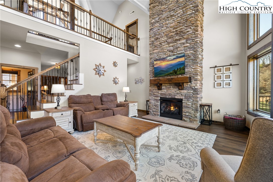 This is the river house you’ve been waiting for. With over 100 feet of frontage on the South Fork of the New River, this beautifully maintained farmhouse-style home delivers front-row seats to river life in every season. Built in 2020, this newer construction home offers space for the entire crew. The open living area is anchored by a soaring stacked-stone fireplace and a dramatic wall of windows overlooking the river, because the view deserves center stage. Summer days are spent playing in the water, while evenings (and winters) can be enjoyed watching the river drift by from the deck or indoors. The home features three bedrooms and five bathrooms, comes fully furnished, and is completely turn-key. Just bring your toothbrush and your favorite river shoes. Downstairs, you’ll find a second kitchen, a large den and gaming area, plus two bonus rooms currently set up for sleeping...ideal for guests, kids or that one friend who always stays longer than planned. Outdoor living is just as dialed in, with an open deck and a spacious screened-in porch that makes dining and relaxing outside easy in every season. Morning coffee, summer dinners or cozy fall evenings...this home has you covered, rain or shine. Outside (and underneath), the storage game is strong. There are three garage bays, including a rear bay perfectly suited for river toys, lawn gear and all the stuff that makes mountain living fun. Located just a short drive to Boone or West Jefferson, you’re close to shopping, dining, and entertainment, yet tucked into a peaceful river setting that feels a world away. Short-term rentals are permitted, making this an excellent option as a primary residence, vacation home or investment property. River frontage. Newer construction. Space, storage, style, and flexibility. This one checks every box...and then adds a few you didn’t know you wanted.