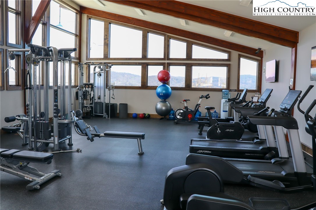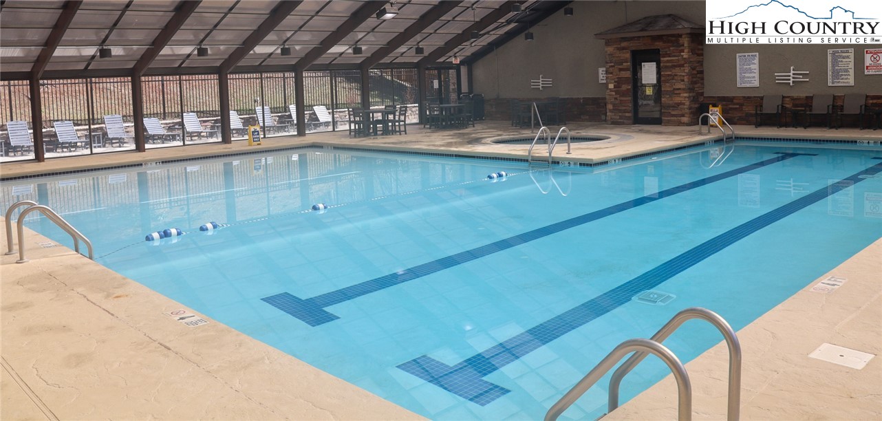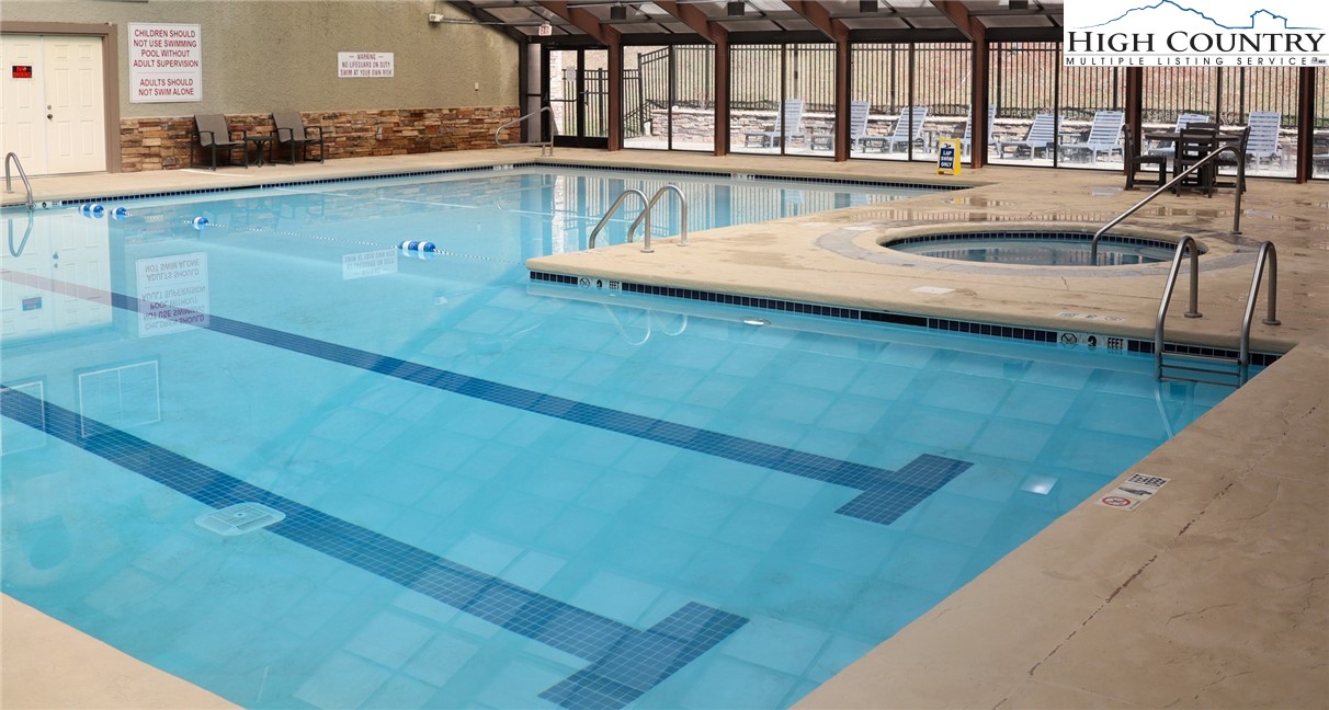 This spacious Evergreen condo features 2 bedrooms and 2 full bathrooms, providing comfortable accommodations within the secure, gated community of Echota in Foscoe. Its convenient location places you just 10 minutes from Boone, NC, Blowing Rock, NC, and Banner Elk, NC. Short-term rentals are allowed, making it ideal for Appalachian State University visits, ski vacations, or summer getaways. Quarterly POA (Property Owners Association) dues grant residents access to a wide array of amenities, including two clubhouses, two outdoor pools, one indoor pool, and three state-of-the-art fitness centers. Outdoor enthusiasts will appreciate the walking trails, a 25-acre riverpark, stocked fishing ponds, and a dog park. Recreational facilities also include pickleball courts and a secure gated entry. Additionally, basic cable and internet service are included in the POA fees. This lower-level unit is equipped with central HVAC for year-round comfort. The kitchen features a breakfast bar that seamlessly opens to the combined living and dining room area. Large windows fill the space with natural light, and a gas fireplace creates a warm, inviting atmosphere. A private outdoor balcony is also accessible from the main living area and the primary bedroom. A newly opened amenity center, The Summit at Echota, is available exclusively for new owners. This facility includes an outdoor pool, a skybridge, and a modern fitness center, providing additional opportunities for relaxation and recreation. With its comprehensive amenities and maintenance-free living, this Echota condo is an exceptional choice for those seeking the perfect mountain retreat.