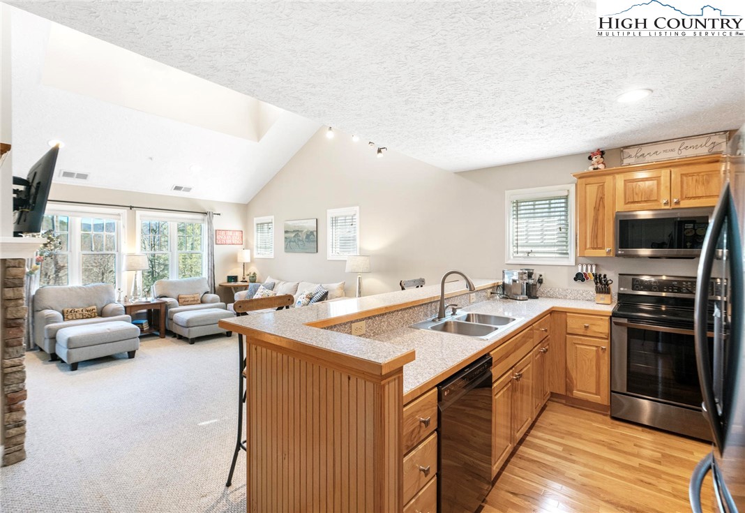 TOP FLOOR 2BR|2BA + Loft in Echota with serene mountain views from the covered deck. This well-maintained condo boasts a new HVAC system and water heater, as well as updated washer & dryer. This bright and cheerful top floor condo features vaulted ceilings, hardwood floors in the front entry and kitchen, stacked stone gas fireplace and ample windows to bring the outside in. The kitchen has birch cabinetry, updated appliances and a convenient breakfast bar that opens to the living area. The primary suite offers access to the deck, two closets and a full bathroom. The cheerful guest bedroom has its own private bath with tub/shower combination. Upstairs is the versatile open loft, ideal for additional sleeping or office space. Located in the sought-after gated community of Echota, owners enjoy an incredible maintenance-free lifestyle with unparalleled amenities. The community features two clubhouses, 2 outdoor pools, 1 indoor pool, 3 fitness facilities, a 25-acre riverpark, stocked fishing ponds, plus the exciting new owners-only Summit at Echota amenity center with its spectacular outdoor pool, deck, fitness facility, and skybridge.