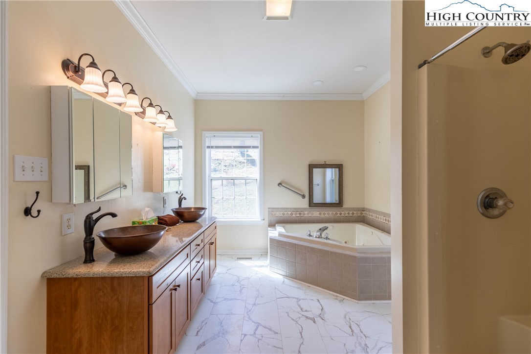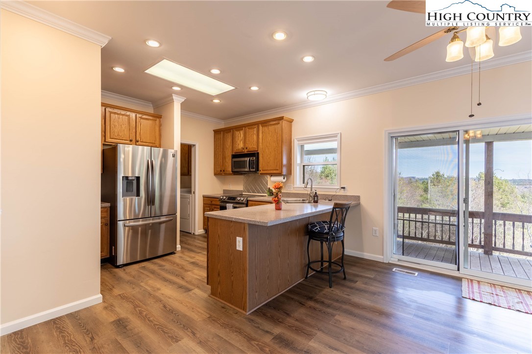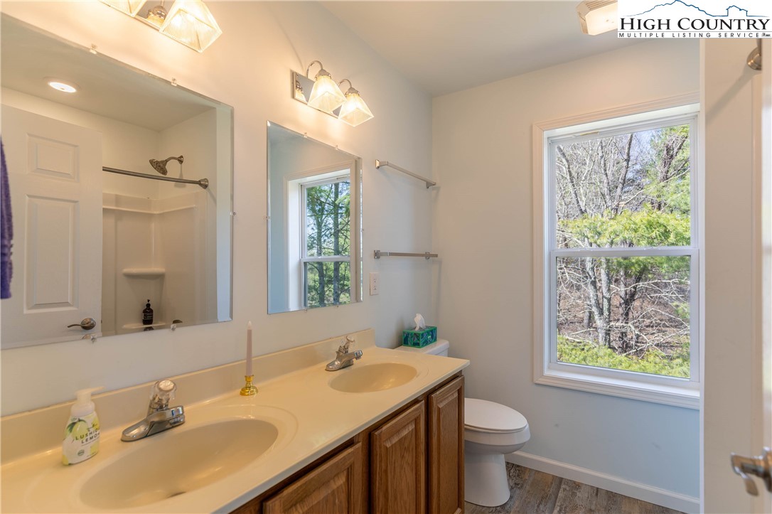 Lovely, move in ready home, featuring an open floor plan and easy one level living! The primary en suite is located on the main level, along with the laundry room. Spacious living room, with lots of windows and a lovely Lopi wood stove. LVP flooring throughout. Beautiful covered back deck, which runs the length of the home, and overlooks the fenced back yard. The second floor has been finished and features a bedroom/studio apartment, which can be used as an in law suite, spacious primary bedroom, or even as an income generating apartment. There is also a large flex room with a full bath upstairs. The two car tandem garage offers tons of storage. The heat pump for the main floor is duel fuel (propane and electric) while the heat pump for upstairs is electric. Convenient location and just minutes to Jefferson or West Jefferson. Seller is a licensed NC Real Estate broker.