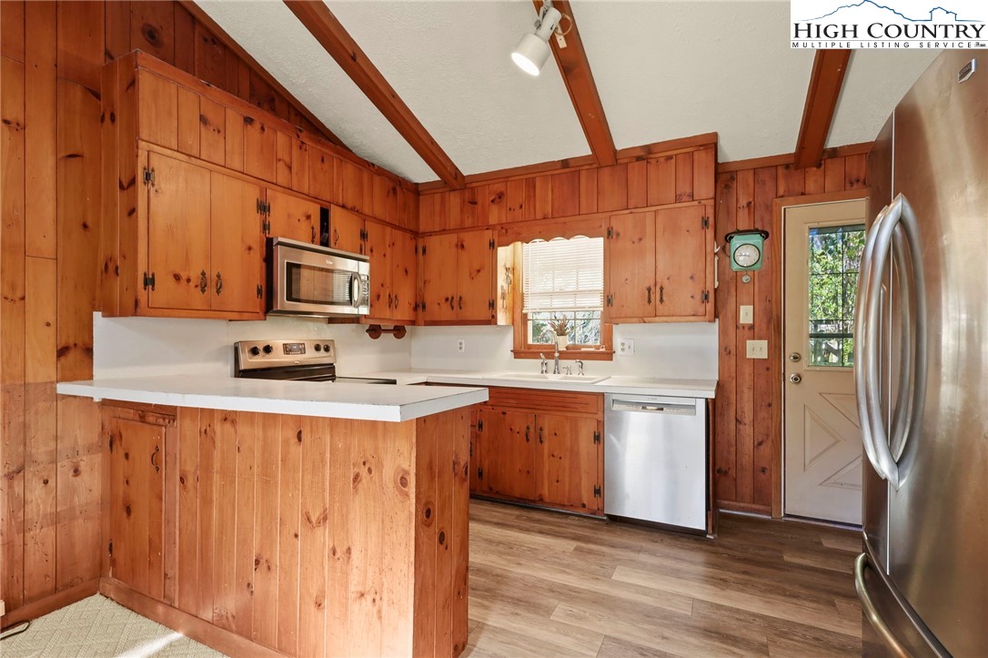 Nestled in the serene beauty of the Blue Ridge Mountains, this home in the Foscoe community, offers charming cottage-style living just minutes from both Boone and Banner Elk. This inviting home features 3 spacious bedrooms, 2 full bathrooms, and a versatile bonus room ideal for an office or additional sleeping space. The open living area is accented by a vaulted ceiling and a cozy stone fireplace, creating a warm and welcoming atmosphere. Enjoy mountain air from the expansive covered porch—perfect for relaxing or entertaining. The home also boasts a large, 2-car garage for convenience. The yard is private and perfect for children and the family pets! Located near all the mountain actives for you to experience..fishing, hiking, skiing or visiting the local winery's. Also a short drive to ASU, the hospital, shopping & restaurants. This home combines rustic cottage charm with practical amenities in an unbeatable mountain setting. Being offered for the first time by the original family! Do YOU hear the mountains calling?