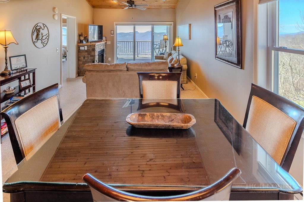 Turnkey Mountain Retreat with Stunning Long-Range Views at 5000 feet. Welcome to this beautifully appointed 2-bedroom, 2-bathroom end-unit condominium located in the highly desirable Carolina North community of Beech Mountain. Offering approximately 1,117 square feet of thoughtfully designed living space and convenient level entry access, this fully furnished residence combines comfort, style, and mountain charm. The sizable primary bedroom offers exceptional views and has an upper loft arranged as a kids playroom. Step inside to a warm and inviting interior highlighted by vaulted tongue-and-groove ceilings, creating an airy yet cozy atmosphere. The open-concept living area flows seamlessly onto a covered deck, where you can take in remarkable long-range mountain views year-round—perfect for morning coffee or relaxing evening sunsets. This turnkey property is being offered fully furnished, making it ideal as a primary residence, vacation getaway, or income-producing rental. As an end unit, it provides enhanced privacy along with abundant natural light throughout. Ideally situated just minutes from downtown Beech Mountain, you’ll enjoy easy access to skiing, hiking trails, dining, and local attractions—offering four-season enjoyment right at your doorstep. Whether you’re seeking a low-maintenance mountain escape or a proven short-term rental opportunity, this exceptional property delivers on all fronts: location, views, and turnkey convenience in one of Beech Mountain’s most sought-after communities.