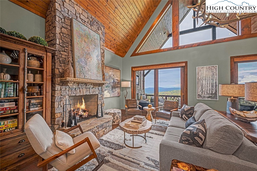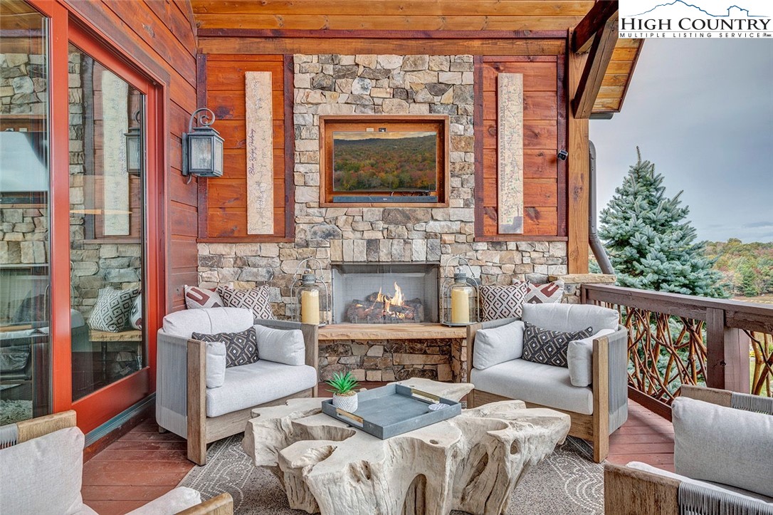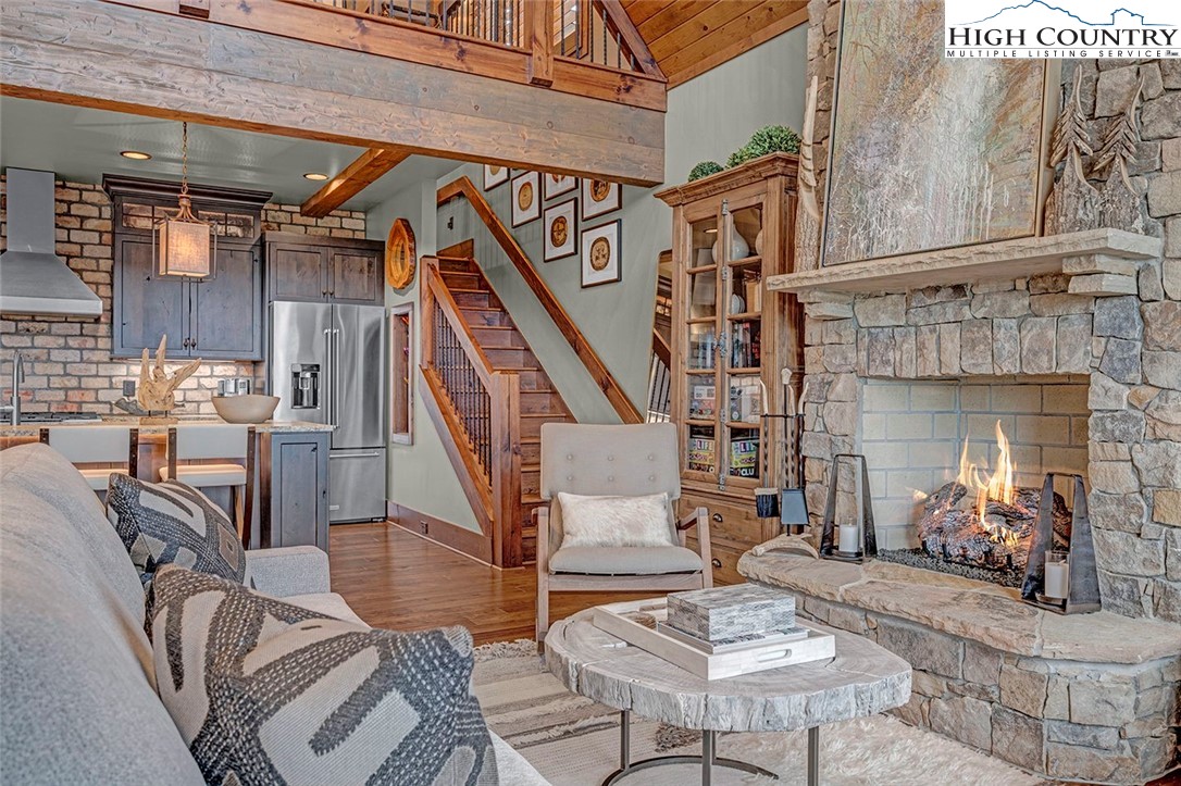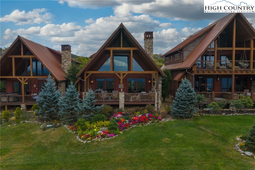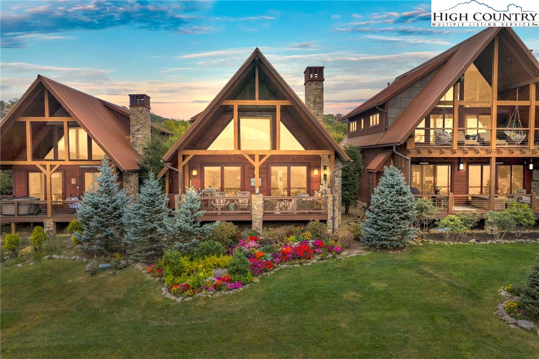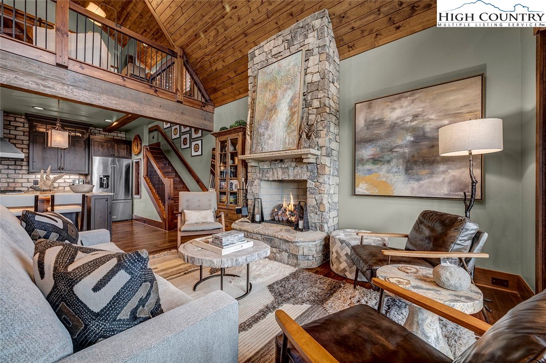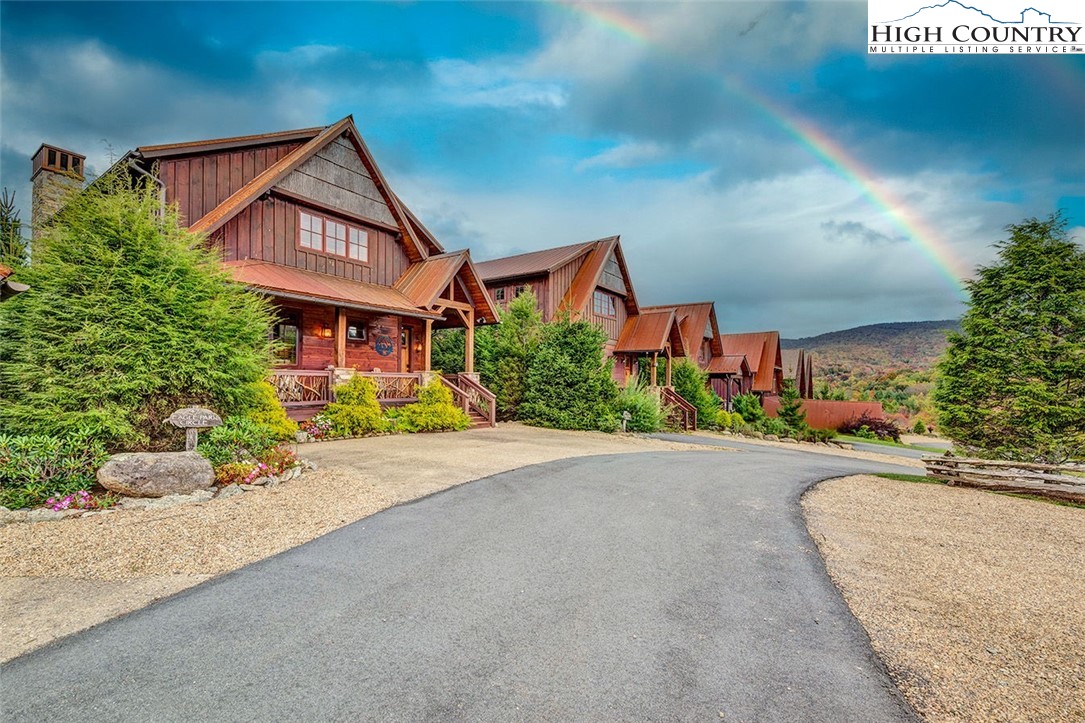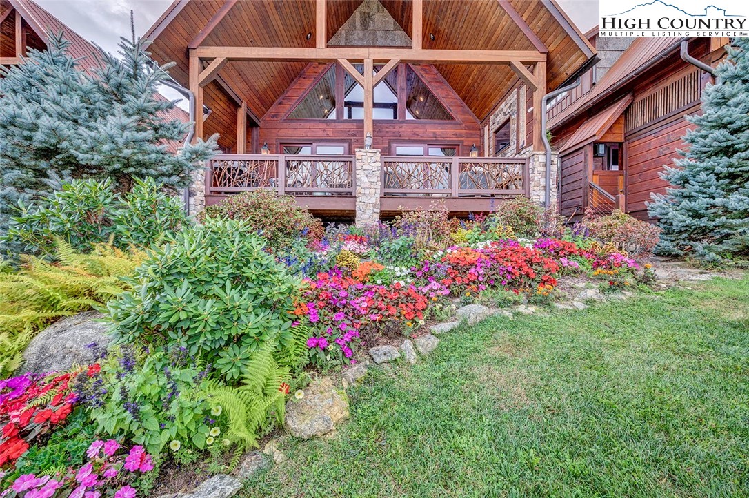 Welcome to Highlander Lodge, a stunning maintenance-free residence nestled in the coveted Park within The Lodges at Eagles Nest. This impeccably upgraded home offers the perfect blend of mountain charm and modern luxury, meticulously designed to provide comfort, style, and breathtaking views. Step inside to discover beautiful hardwood floors that grace the open living spaces, centered around a magnificent stone fireplace that invites cozy gatherings. The custom kitchen is a chef’s dream, featuring rich custom cabinetry, gleaming granite countertops on all surfaces, and top-of-the-line KitchenAid stainless steel appliances that make meal preparation a joy. Every detail exudes quality and craftsmanship. Both bathrooms are elegantly appointed with heated tile floors, adding a touch of indulgence on cool mornings. Custom shelving in all closets maximizes storage and organization potential, while Appalachian Blinds provide tasteful and functional window treatments throughout the home. Thoughtfully selected custom lighting fixtures and commissioned mountain-themed art perfectly complement the home’s ambiance; the residence is sold fully furnished for your convenience. Step out onto the expansive back porch, where a second stone fireplace creates an enchanting outdoor gathering spot. Enjoy your morning coffee as you take in stunning sunrise views that embrace the serene mountain landscape. Outdoor living is enhanced with a new outdoor fireplace, mounted TV, new stain and paint on the exterior surfaces, and an extended garage for additional space and convenience. Highlander Lodge employs cutting-edge features such as WiFi app thermostats with remote control, a remote front door, and security cameras to provide peace of mind and effortless control. The energy-efficient tankless dual fuel system, gas dryer, and generator ensure comfort and reliability year-round. The custom garden in the backyard adds a private touch of nature to your outdoor space. Residents enjoy walking distance access to the North Pavilion, a vibrant community hub featuring a bistro open for brunch and lunch, basketball court, dog park, and helipads. The fitness center is also just a short stroll away, promoting an active and healthy lifestyle. For those who appreciate fine wines, Eagles Nest Winery is only a short drive from the lodge. Highlander Lodge embodies the ultimate mountain retreat experience, combining luxury, convenience, and outdoor beauty in one exceptional package. Don’t miss the opportunity to make this extraordinary property your home away from home in The Lodges at Eagles Nest—where every day feels like a getaway.