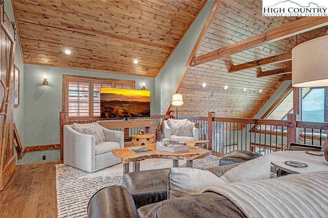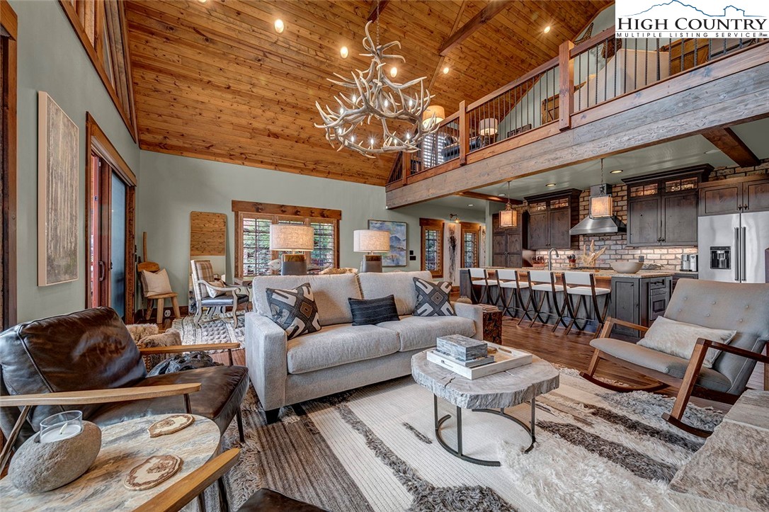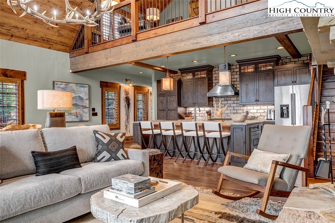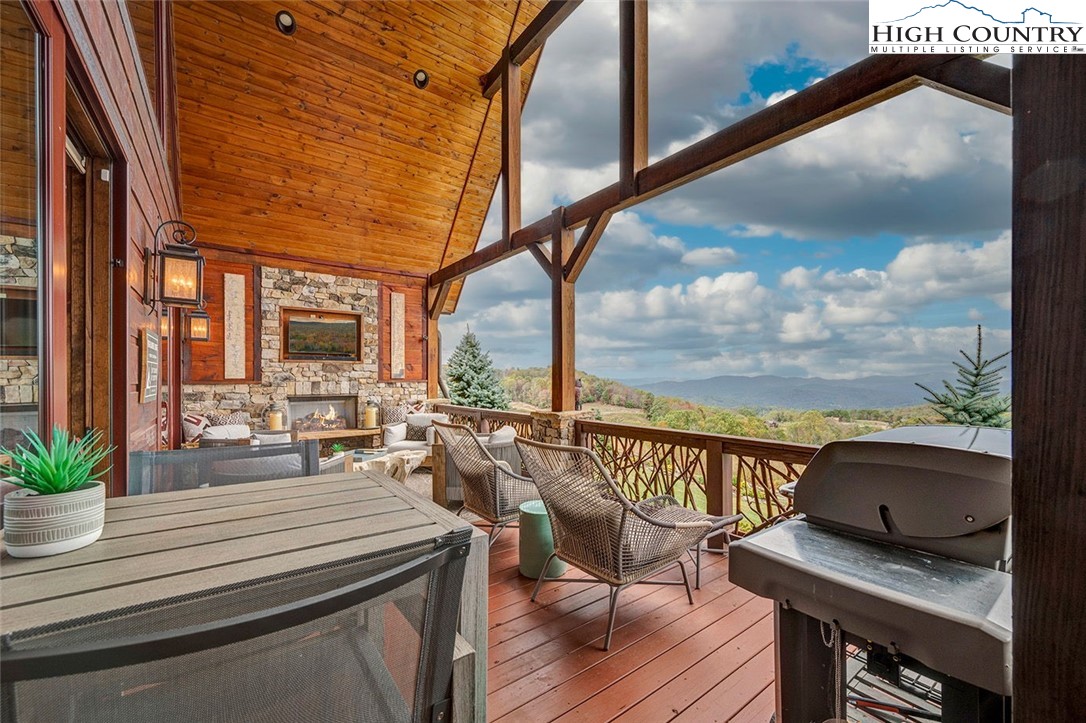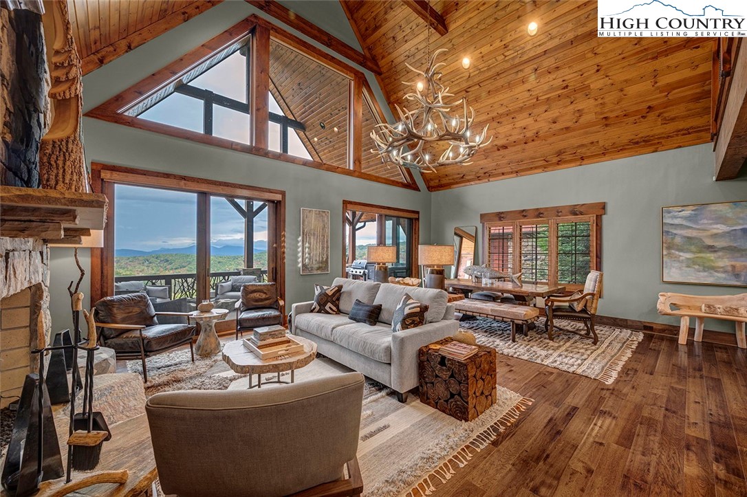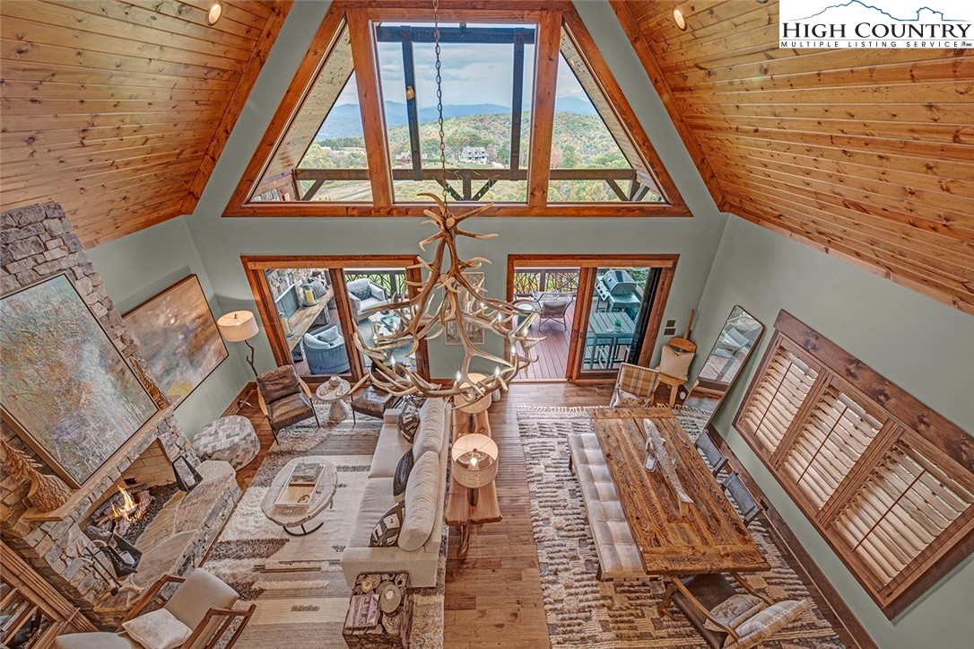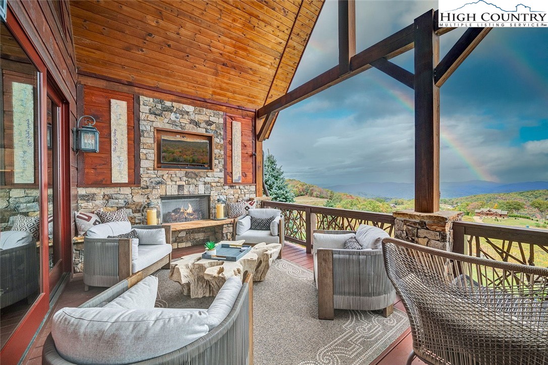 Welcome to Highlander Lodge, a stunning maintenance-free residence nestled in the coveted Park within The Lodges at Eagles Nest. This impeccably upgraded home offers the perfect blend of mountain charm and modern luxury, meticulously designed to provide comfort, style, and breathtaking views. Step inside to discover beautiful hardwood floors that grace the open living spaces, centered around a magnificent stone fireplace that invites cozy gatherings. The custom kitchen is a chef’s dream, featuring rich custom cabinetry, gleaming granite countertops on all surfaces, and top-of-the-line KitchenAid stainless steel appliances that make meal preparation a joy. Every detail exudes quality and craftsmanship. Both bathrooms are elegantly appointed with heated tile floors, adding a touch of indulgence on cool mornings. Custom shelving in all closets maximizes storage and organization potential, while Appalachian Blinds provide tasteful and functional window treatments throughout the home. Thoughtfully selected custom lighting fixtures and commissioned mountain-themed art perfectly complement the home’s ambiance; the residence is sold fully furnished for your convenience. Step out onto the expansive back porch, where a second stone fireplace creates an enchanting outdoor gathering spot. Enjoy your morning coffee as you take in stunning sunrise views that embrace the serene mountain landscape. Outdoor living is enhanced with a new outdoor fireplace, mounted TV, new stain and paint on the exterior surfaces, and an extended garage for additional space and convenience. Highlander Lodge employs cutting-edge features such as WiFi app thermostats with remote control, a remote front door, and security cameras to provide peace of mind and effortless control. The energy-efficient tankless dual fuel system, gas dryer, and generator ensure comfort and reliability year-round. The custom garden in the backyard adds a private touch of nature to your outdoor space. Residents enjoy walking distance access to the North Pavilion, a vibrant community hub featuring a bistro open for brunch and lunch, basketball court, dog park, and helipads. The fitness center is also just a short stroll away, promoting an active and healthy lifestyle. For those who appreciate fine wines, Eagles Nest Winery is only a short drive from the lodge. Highlander Lodge embodies the ultimate mountain retreat experience, combining luxury, convenience, and outdoor beauty in one exceptional package. Don’t miss the opportunity to make this extraordinary property your home away from home in The Lodges at Eagles Nest—where every day feels like a getaway.