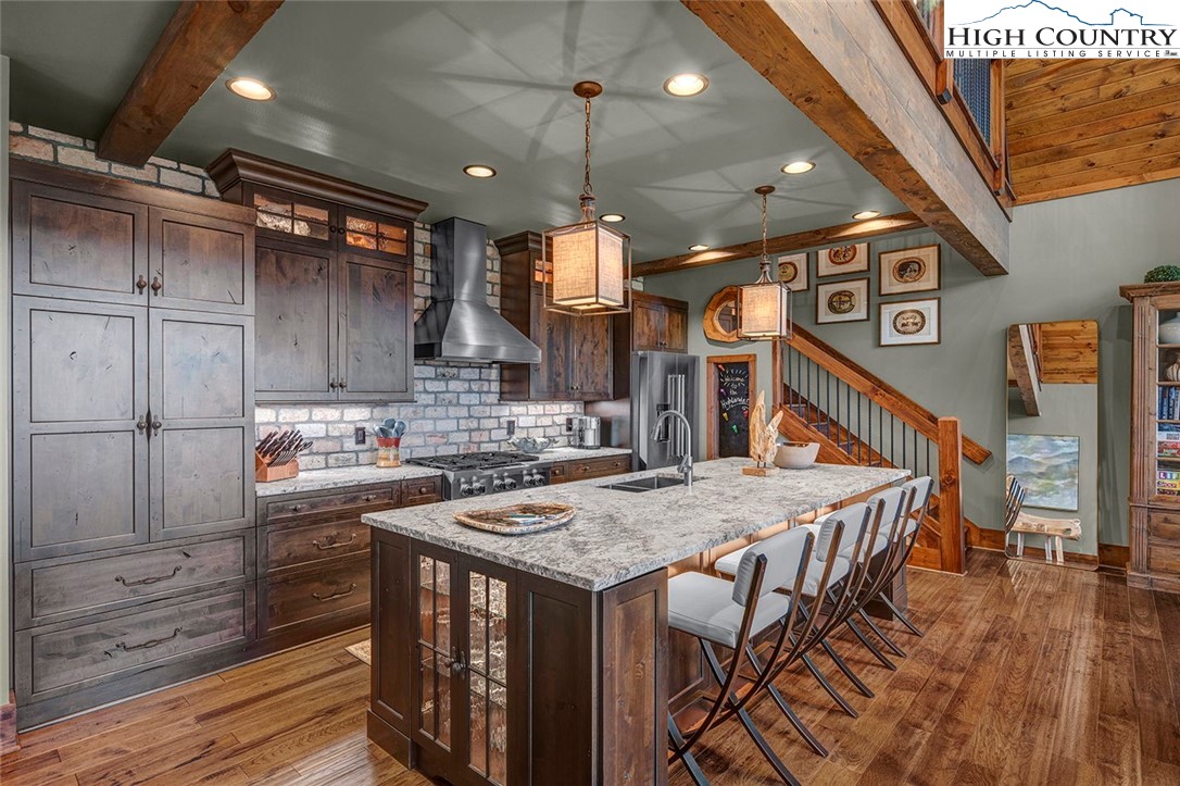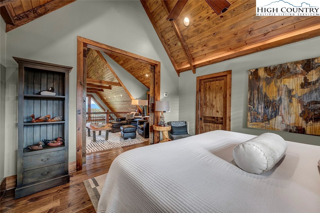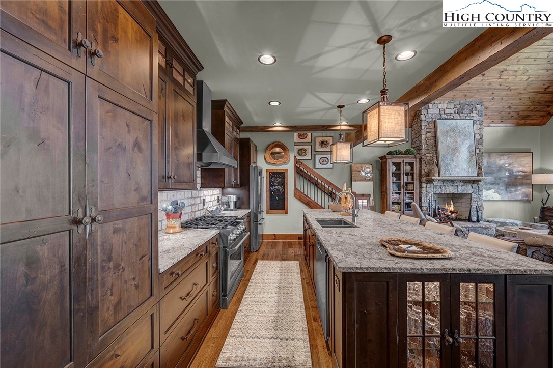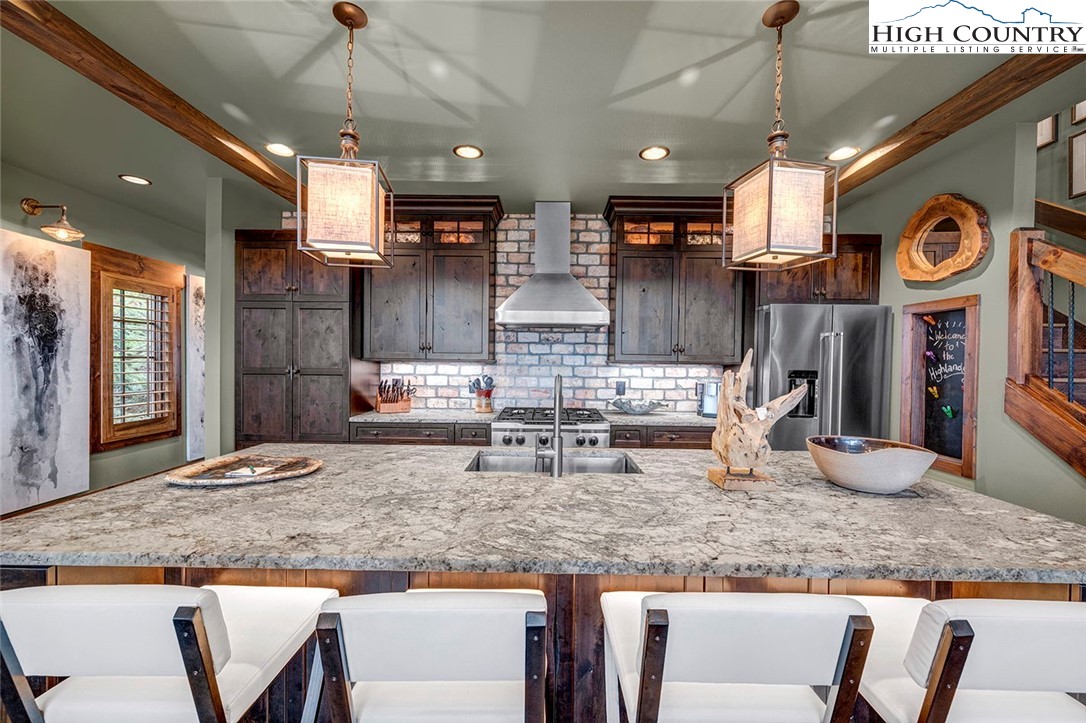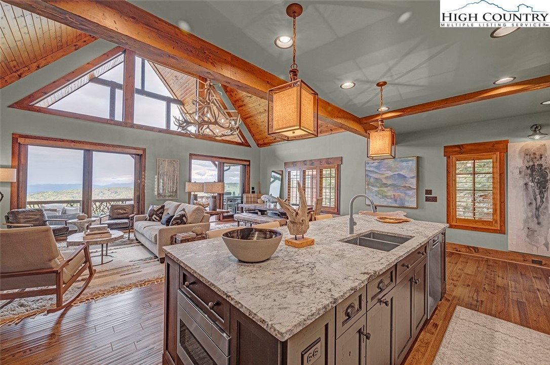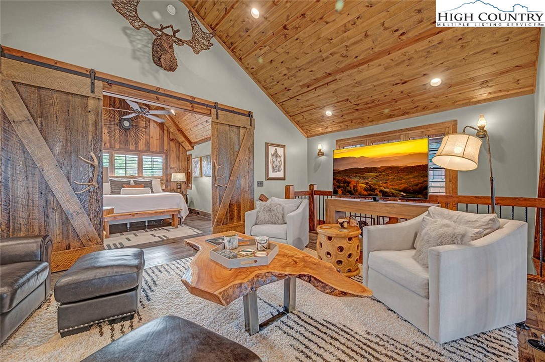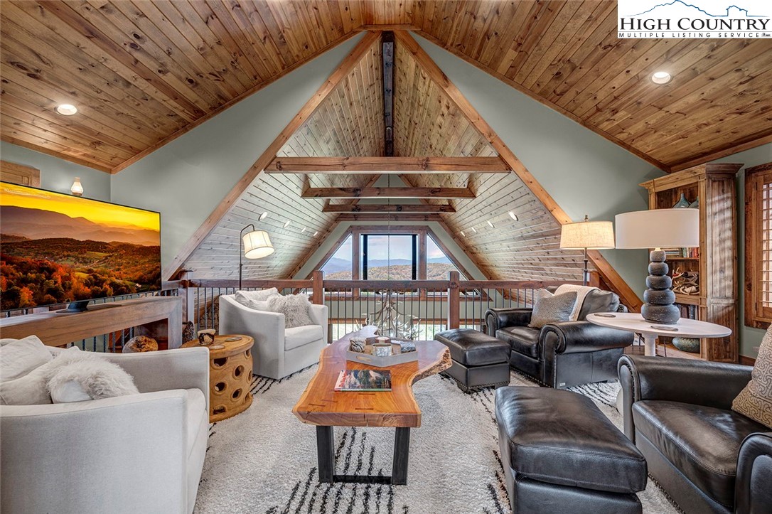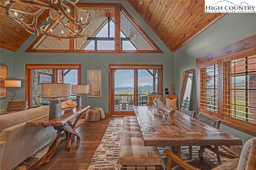 Welcome to Highlander Lodge, a stunning maintenance-free residence nestled in the coveted Park within The Lodges at Eagles Nest. This impeccably upgraded home offers the perfect blend of mountain charm and modern luxury, meticulously designed to provide comfort, style, and breathtaking views. Step inside to discover beautiful hardwood floors that grace the open living spaces, centered around a magnificent stone fireplace that invites cozy gatherings. The custom kitchen is a chef’s dream, featuring rich custom cabinetry, gleaming granite countertops on all surfaces, and top-of-the-line KitchenAid stainless steel appliances that make meal preparation a joy. Every detail exudes quality and craftsmanship. Both bathrooms are elegantly appointed with heated tile floors, adding a touch of indulgence on cool mornings. Custom shelving in all closets maximizes storage and organization potential, while Appalachian Blinds provide tasteful and functional window treatments throughout the home. Thoughtfully selected custom lighting fixtures and commissioned mountain-themed art perfectly complement the home’s ambiance; the residence is sold fully furnished for your convenience. Step out onto the expansive back porch, where a second stone fireplace creates an enchanting outdoor gathering spot. Enjoy your morning coffee as you take in stunning sunrise views that embrace the serene mountain landscape. Outdoor living is enhanced with a new outdoor fireplace, mounted TV, new stain and paint on the exterior surfaces, and an extended garage for additional space and convenience. Highlander Lodge employs cutting-edge features such as WiFi app thermostats with remote control, a remote front door, and security cameras to provide peace of mind and effortless control. The energy-efficient tankless dual fuel system, gas dryer, and generator ensure comfort and reliability year-round. The custom garden in the backyard adds a private touch of nature to your outdoor space. Residents enjoy walking distance access to the North Pavilion, a vibrant community hub featuring a bistro open for brunch and lunch, basketball court, dog park, and helipads. The fitness center is also just a short stroll away, promoting an active and healthy lifestyle. For those who appreciate fine wines, Eagles Nest Winery is only a short drive from the lodge. Highlander Lodge embodies the ultimate mountain retreat experience, combining luxury, convenience, and outdoor beauty in one exceptional package. Don’t miss the opportunity to make this extraordinary property your home away from home in The Lodges at Eagles Nest—where every day feels like a getaway.