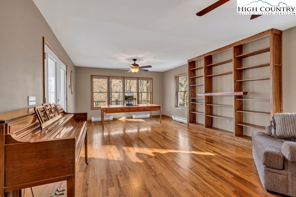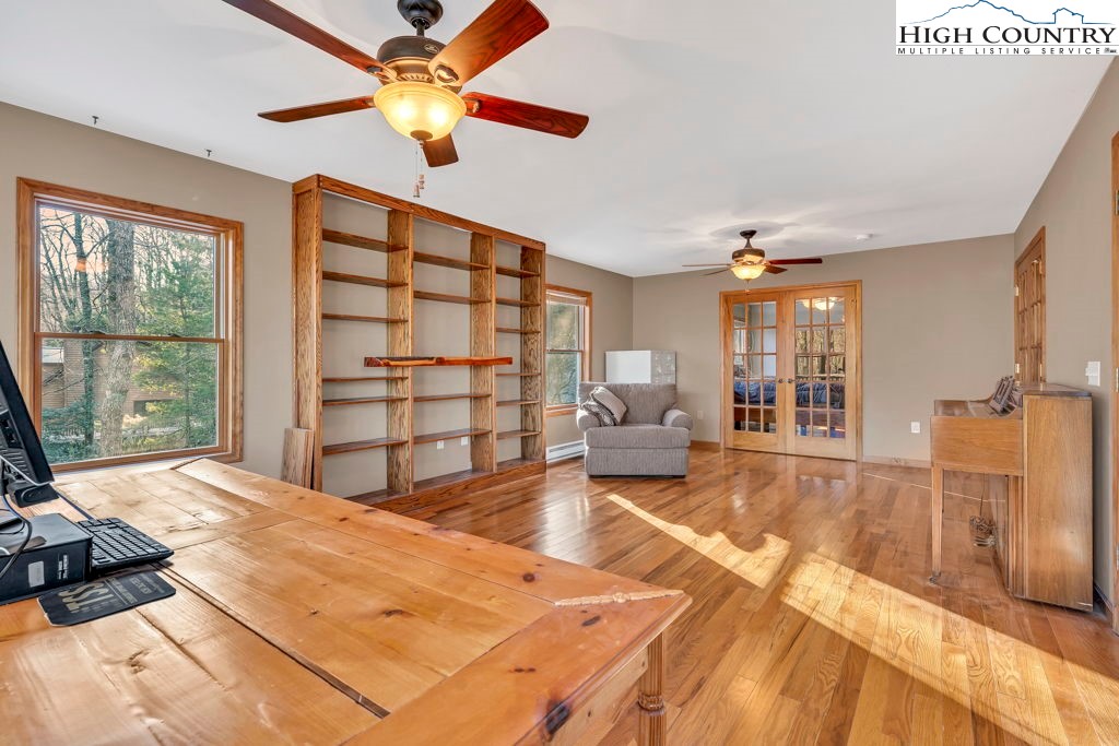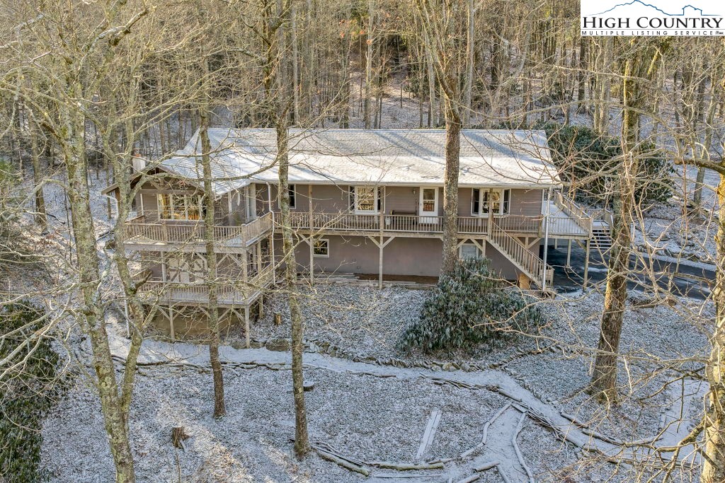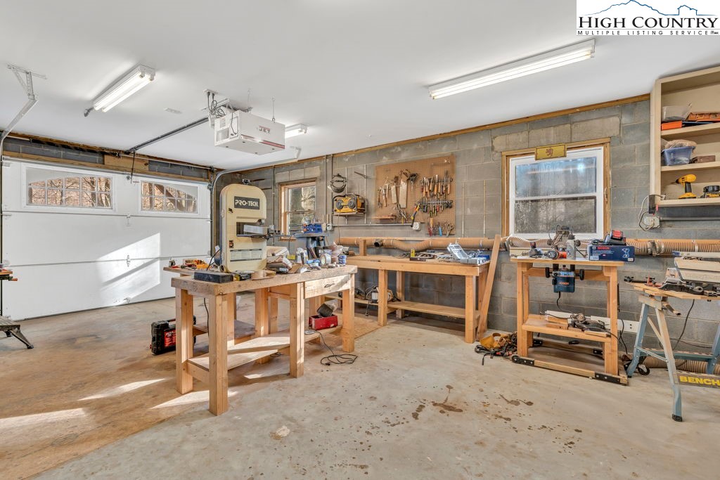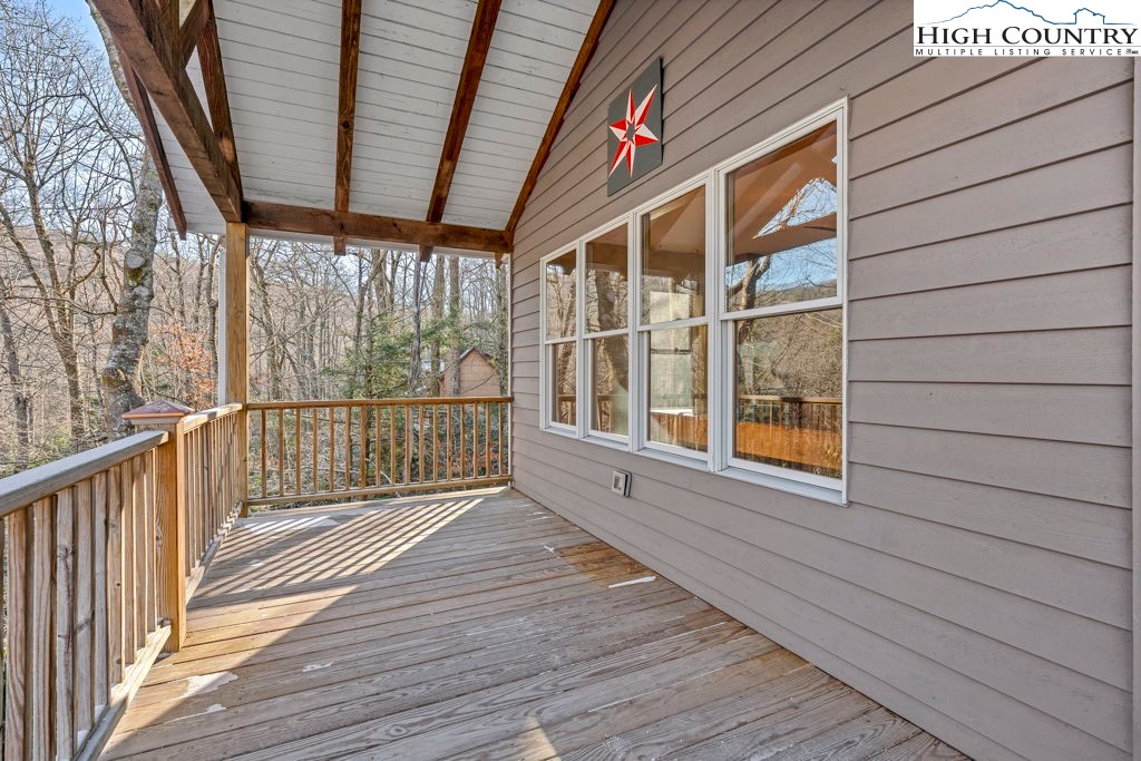 One-owner mountain retreat, gently lived in and beautifully kept, ready for its next chapter. Located in the Blowing Rock School District and just minutes from the Blue Ridge Parkway, the location offers easy access while still enjoying the benefits of a mountain community. The low-maintenance yard has carpets of wild geraniums each spring, mature trees, and big, happy rhododendrons that frame the house like they were always meant to be there. Over 1,200 square feet of covered and open decking anchors the home—perfect for quiet mornings, family gatherings, or just breathing in the cool high-country air. Step inside to instant warmth: knotty pine walls, wide-plank wood floors, a brick wood-burning fireplace, and windows everywhere. The updated kitchen is the sweet spot, with granite surfaces, stainless steel appliances, and plenty of cabinet and counter space, making this ample space very high-functioning. The 2009 primary suite addition is a private getaway—a generous bedroom, an adjoining spacious sitting room with a wall of windows (the sellers used it as an office), and a spa-worthy bath updated in 2022. Two more bedrooms and a full bath round out the main level. Downstairs is a drive-under two-car garage, handy half bath, large flexible bonus room, and a proper woodworker’s shop (also added in 2009)—wired, lighted, and ready for the next project. This space will be a delight to any craftsman. The entire roof is new as of November 2024 and was completed by local roofer Thomas Critcher. The HVAC was installed for the main floor in 2018 by Scott Brothers--Trane XL 16I heat pump and air handler. The original warranty expires in 2028 with options through Trane to extend the coverage. Every upgrade is documented; every repair is on file. This is the one-owner mountain home that feels right the moment you walk in. Come see it—it’s special.