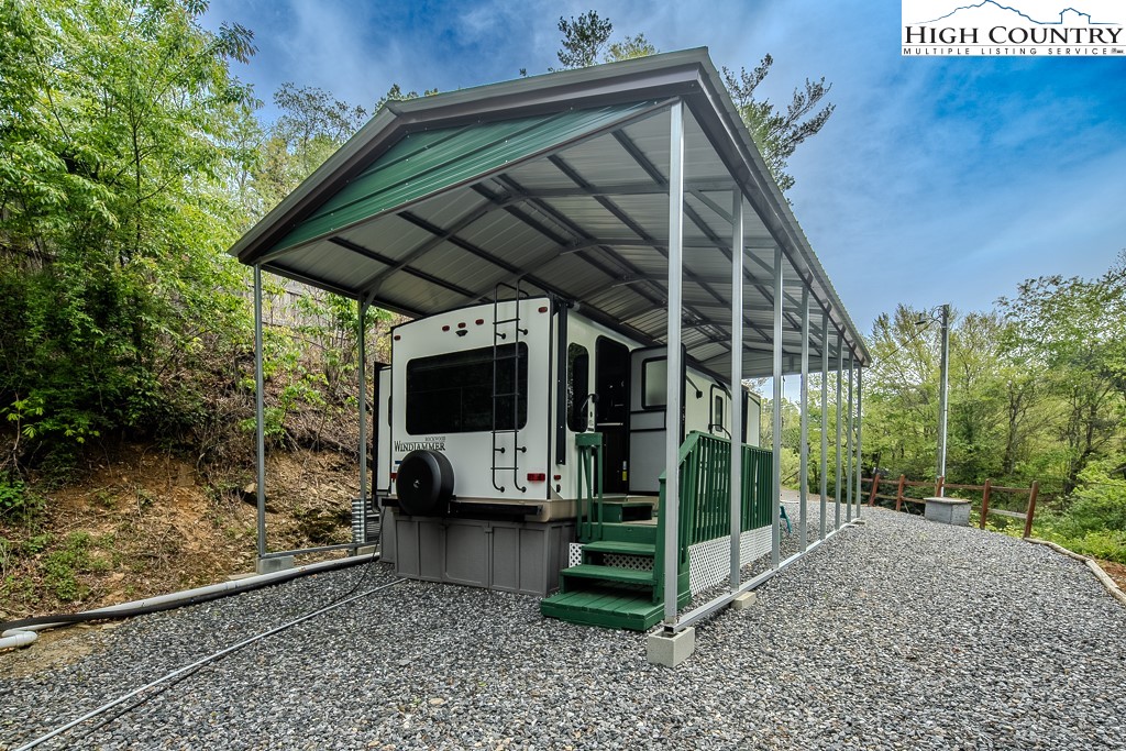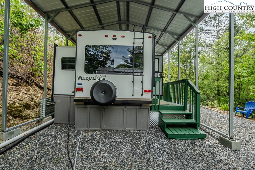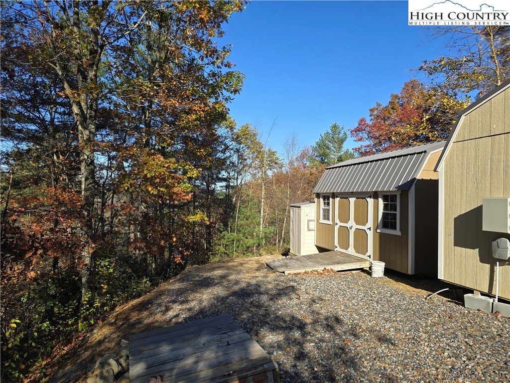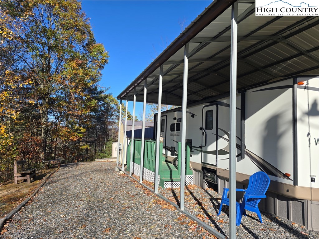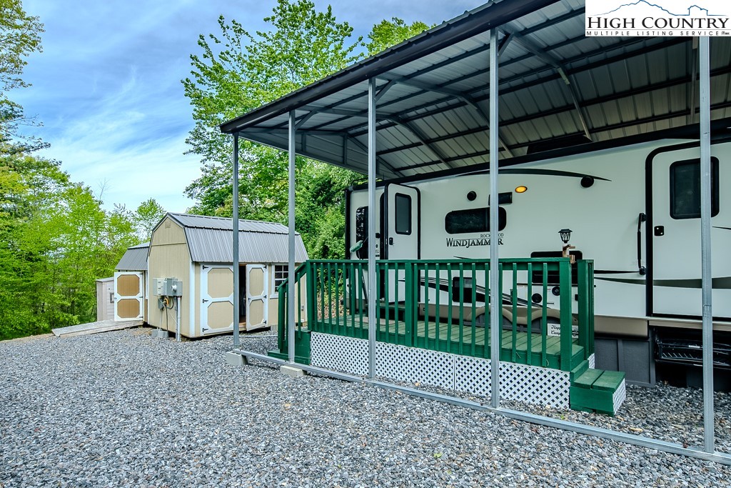 Enjoy your own mountain getaway on 1.257 acres featuring a 2018 Forest River Rockwood Camper under a protective carport. The property includes three storage sheds, two with electric—one equipped with laundry facilities including a washer, dryer, utility sink, and hot water heater. A winding trail offers room to explore and enjoy the outdoors. Fiber optics are run for use at the camper, connection is on the shed. Conveniently located just minutes from the Blue Ridge Parkway and near several restaurants, with easy access to the Jeffersons, Boone, and Wilkesboro. A great mountain property offering all the essentials and main systems needed for a weekend retreat, simple mountain living, or rental property.