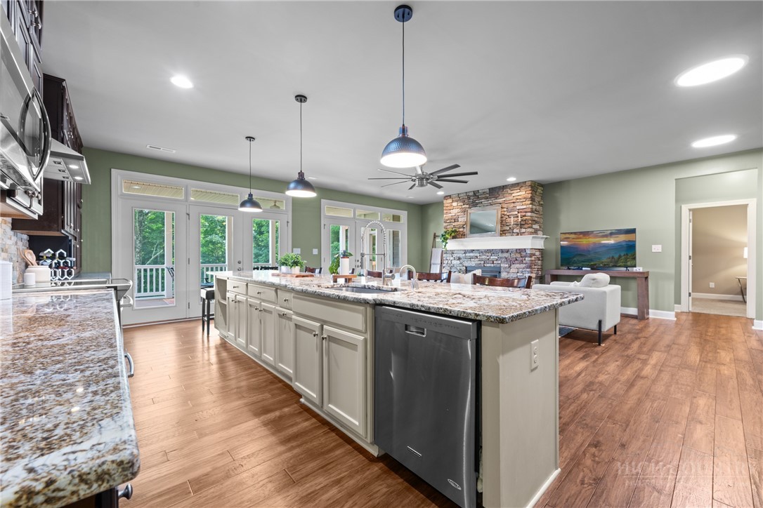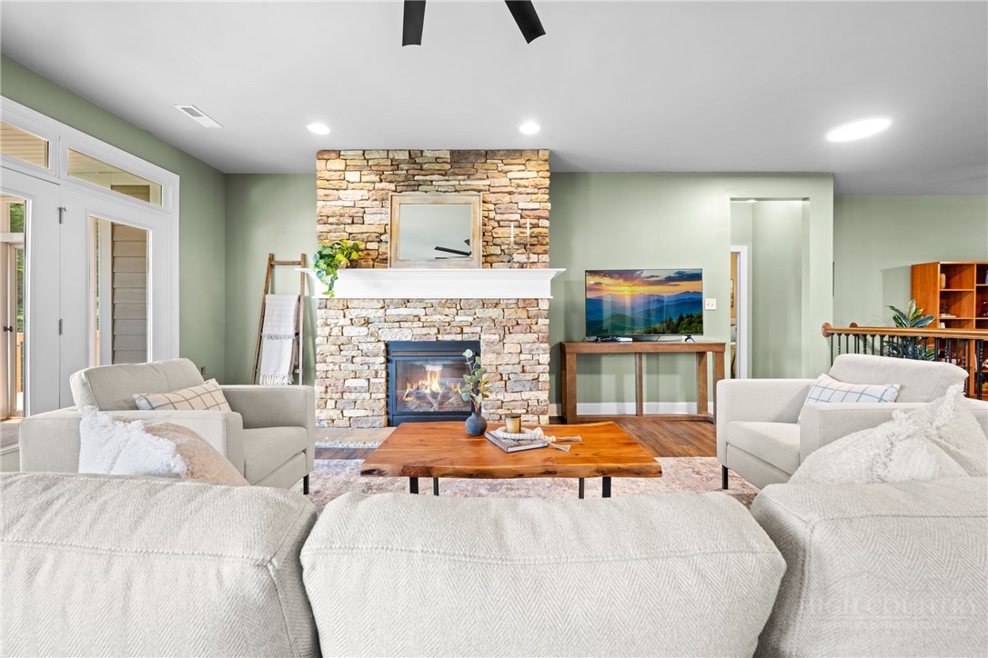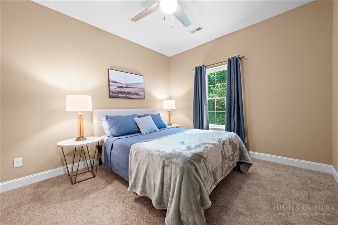 Experience serene mountain living with this stunning custom-built home in the gated Great Sky community, centrally located between the two great towns of Boone and West Jefferson. Crafted in 2014, this single-level masterpiece spans over 2,680 sq ft on an expansive 1.47 acres, offering long-range, layered Blue Ridge Mountain views that take your breath away. The open floorplan is the heart of the home. The living room, with its stone gas fireplace and the chef’s kitchen featuring a granite-topped island, flow seamlessly onto a covered, screened deck, perfect for lounging or entertaining while soaking in panoramic vistas. The home features a split-bedroom layout: The ensuite primary suite boasts a spa-like bath with a standalone tub, custom walk-in closet, and direct access to the deck and incredible views. Opposite, a guest suite with its own deck and two additional bedrooms, including an office, ensure both space and privacy. The lower level of the home is a blank canvas. High ceilings, prepped plumbing, and walk-out access await your personal touch. Finish it as a basement suite, media room, or rental unit. There’s a charming firepit patio outside, great for cozy evenings by the flames. Great Sky is a gated, low-density neighborhood with an HOA which allows both short and long-term rentals. Nestled just 10–15 minutes from West Jefferson and 25 minutes from Boone, you’re close to dining, shopping, riverside recreation on the New River, and vibrant community events. Pre-Inspection completed and will give upon request. Seller will give credit to buyer for main level laundry hookup. Schedule to see this beautiful house and let’s make it your home!