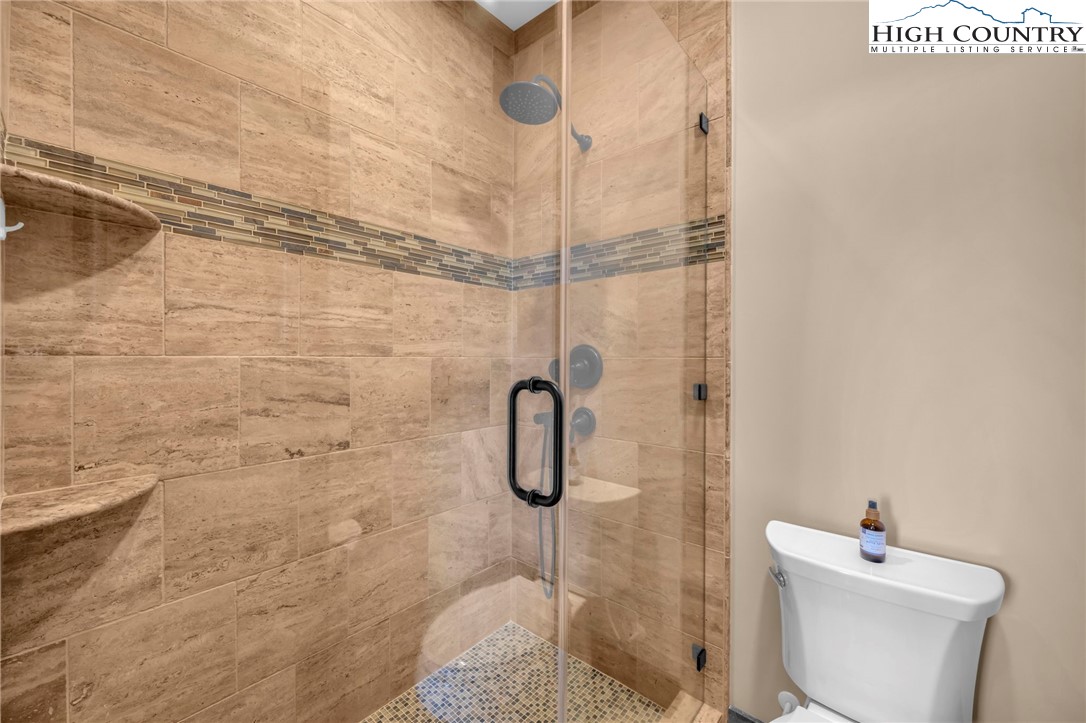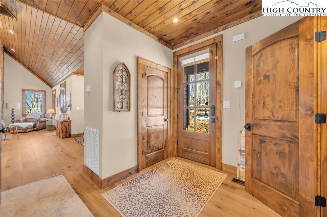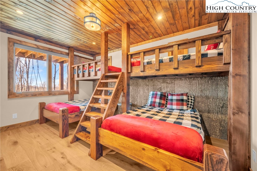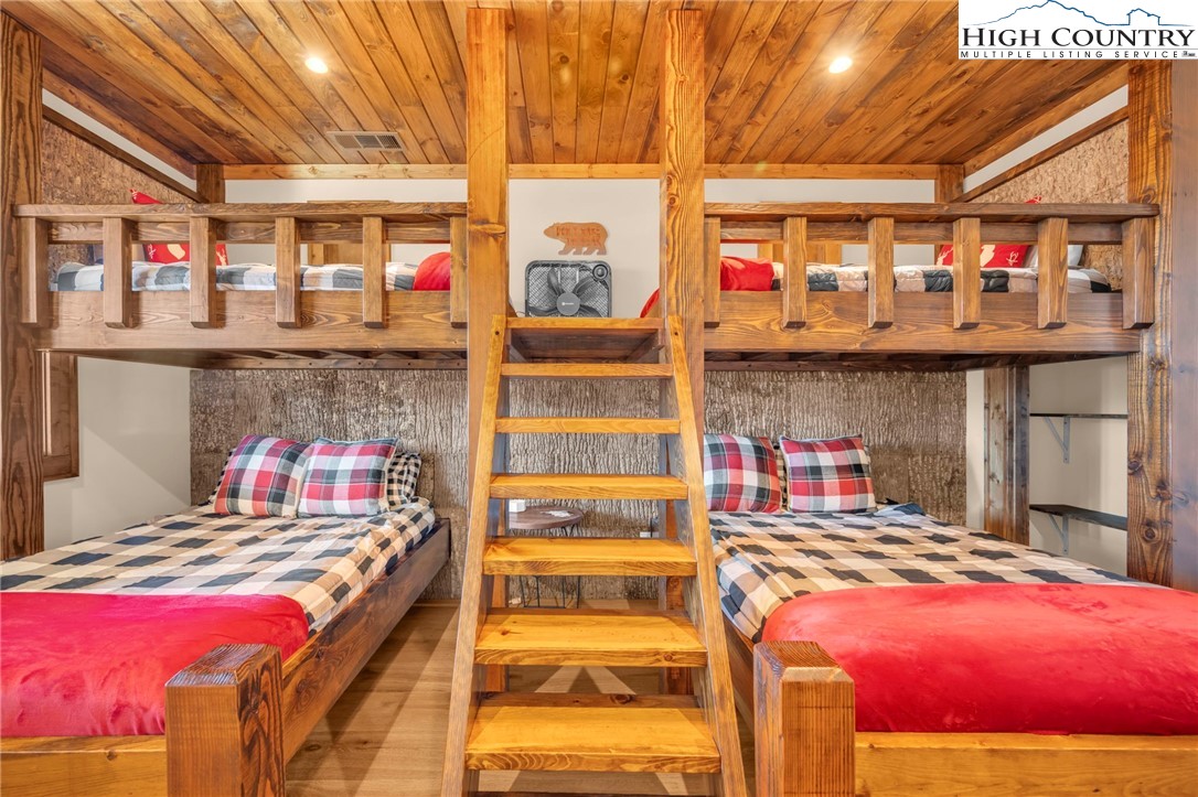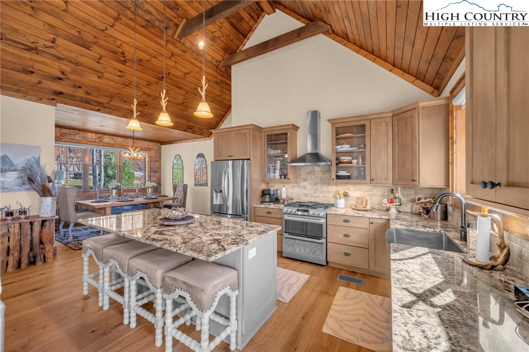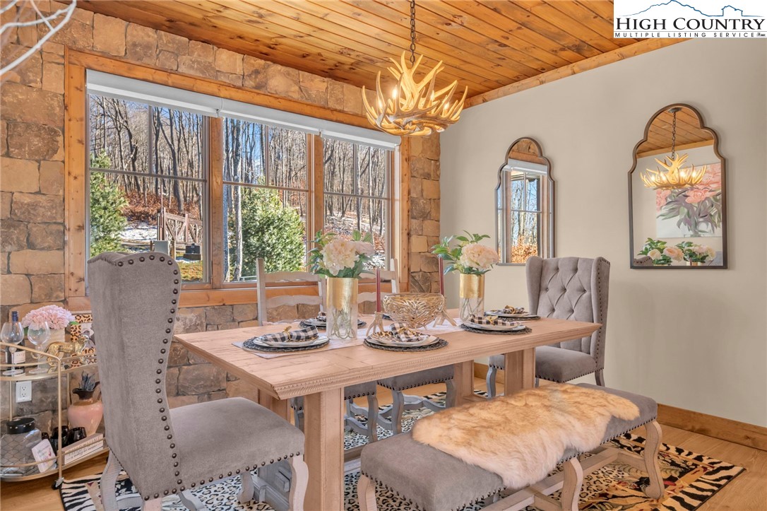 Experience exceptional mountain living in this custom-crafted retreat in The Lodges at Eagles Nest built by Vogel Builders—one of the closest homes in the community to Beech Mountain Ski Resort and just steps from the Beech Mountain gate, premier trails, and amenities. Thoughtfully designed and situated at approximately 4,300 feet of elevation, this 3-bedroom, 2-full and 2-half bath home offers seasonal long-range views, mountain views, dramatic sunsets, and the privacy of a 1.74-acre wooded setting. From the moment you arrive, the home's blend of rustic architecture and refined modern finishes sets it apart. Timber-frame beams, natural stone accents, and expansive glass highlight the surrounding mountain landscape. The main level features a vaulted great room anchored by a floor-to-ceiling stone fireplace, seamlessly connected to the dining area and a designer kitchen with custom cabinetry, premium appliances, and elegant lighting. The main-level primary suite provides a tranquil escape with vaulted ceilings, a spa-inspired bath, and direct access to the deck for enjoying the cool mountain air. The lower level is designed with comfort and hospitality in mind, featuring a spacious second living room with a wet bar and game area, a dedicated bunk room, a guest bedroom, a half bath, a full bath, and a laundry area, an ideal layout for hosting family and friends or maximizing short-term rental potential. Both levels open to expansive decks that invite year-round indoor-outdoor living. Outdoors, you’ll also enjoy a beautiful firepit area and a rare, gently sloping yard with usable space. This home offers an exceptional location within the Lodges at Eagles Nest, positioned directly beside the Beech Mountain gate. Walk or ride to Camp Eagles Nest, which features tennis courts, pickleball courts, playgrounds, and more. With Beech Mountain Ski Resort only 2.3 miles away, winter sports and summer recreation are easily accessible. At the Lodges at Eagles Nest, residents enjoy a wide range of amenities. The amphitheater hosts live summer concerts from May to October, while the Epic Chophouse offers exceptional dining nearby, along with convenient access to Dollar General for quick essentials. Outdoor enthusiasts can explore miles of hiking, biking, and ATV trails, as well as pickleball, tennis, basketball, and soccer courts. Additional activities include climbing towers, an 18-hole putt-putt course, and the popular Eagles Nest Winery, perfect for relaxing with wines and stunning views. Both short-term and long-term rentals are permitted, offering excellent investment flexibility. A stunning blend of luxury, adventure, and mountain serenity, this home stands out as one of the most desirable offerings in Eagles Nest.