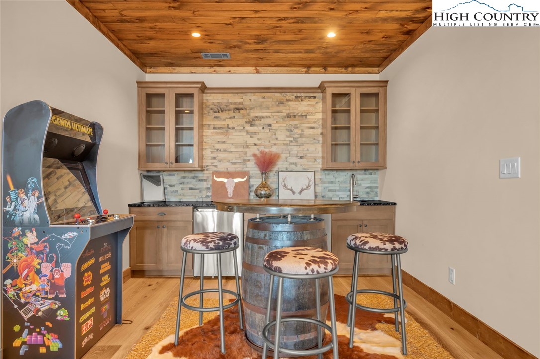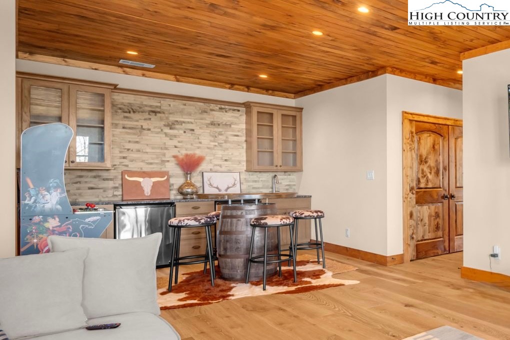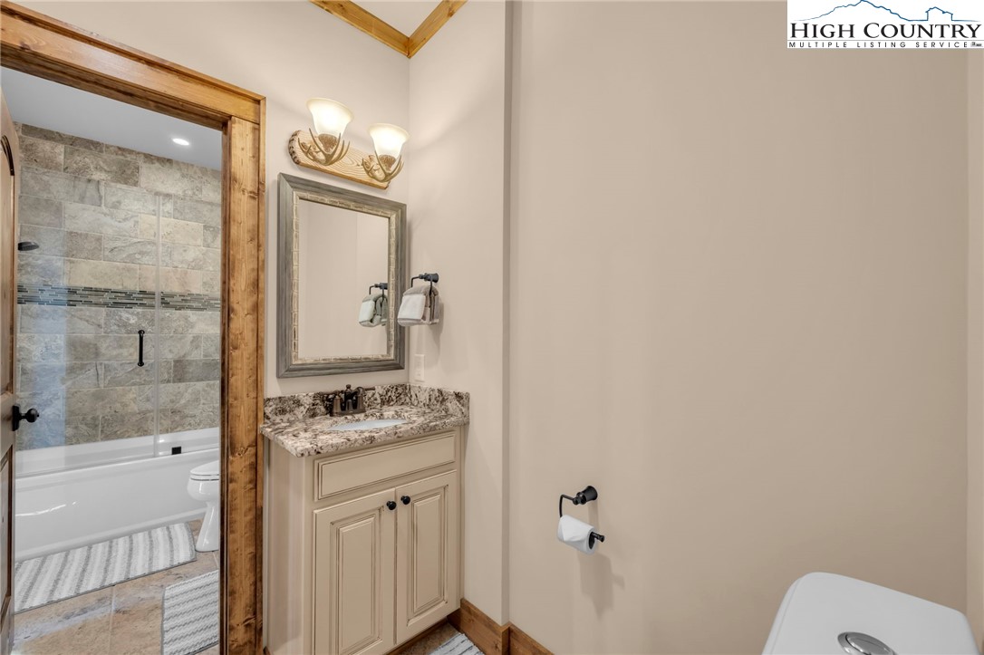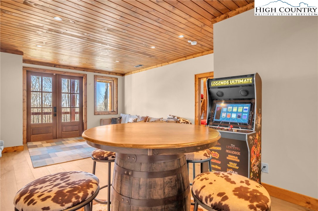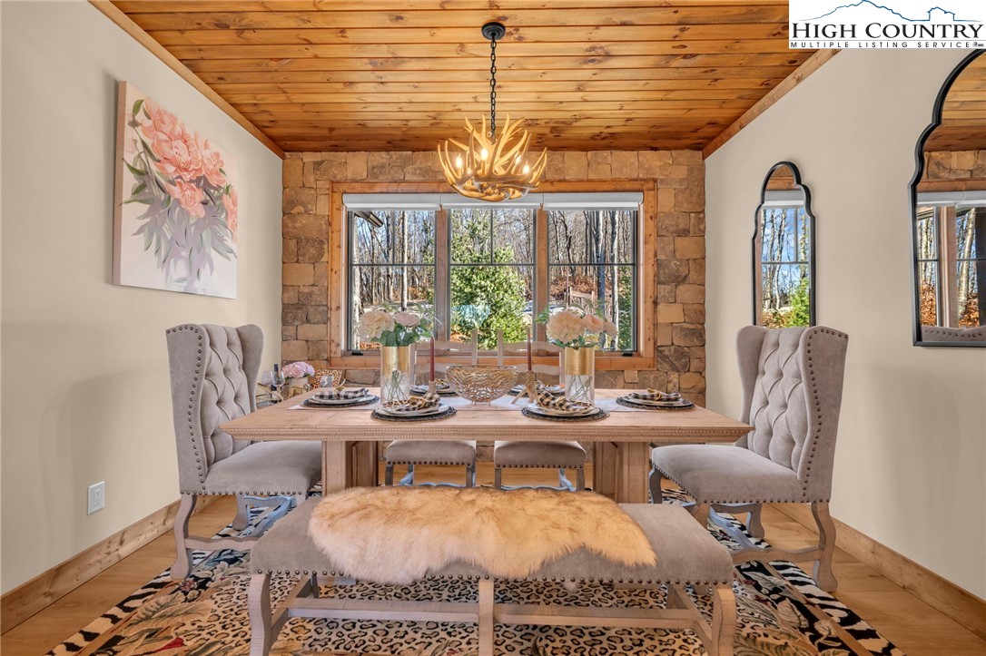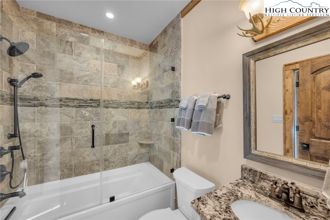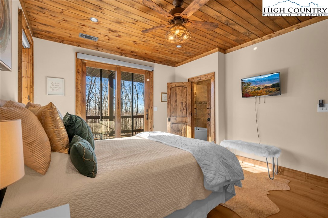 Experience exceptional mountain living in this custom-crafted retreat in The Lodges at Eagles Nest built by Vogel Builders—one of the closest homes in the community to Beech Mountain Ski Resort and just steps from the Beech Mountain gate, premier trails, and amenities. Thoughtfully designed and situated at approximately 4,300 feet of elevation, this 3-bedroom, 2-full and 2-half bath home offers seasonal long-range views, mountain views, dramatic sunsets, and the privacy of a 1.74-acre wooded setting. From the moment you arrive, the home's blend of rustic architecture and refined modern finishes sets it apart. Timber-frame beams, natural stone accents, and expansive glass highlight the surrounding mountain landscape. The main level features a vaulted great room anchored by a floor-to-ceiling stone fireplace, seamlessly connected to the dining area and a designer kitchen with custom cabinetry, premium appliances, and elegant lighting. The main-level primary suite provides a tranquil escape with vaulted ceilings, a spa-inspired bath, and direct access to the deck for enjoying the cool mountain air. The lower level is designed with comfort and hospitality in mind, featuring a spacious second living room with a wet bar and game area, a dedicated bunk room, a guest bedroom, a half bath, a full bath, and a laundry area, an ideal layout for hosting family and friends or maximizing short-term rental potential. Both levels open to expansive decks that invite year-round indoor-outdoor living. Outdoors, you’ll also enjoy a beautiful firepit area and a rare, gently sloping yard with usable space. This home offers an exceptional location within the Lodges at Eagles Nest, positioned directly beside the Beech Mountain gate. Walk or ride to Camp Eagles Nest, which features tennis courts, pickleball courts, playgrounds, and more. With Beech Mountain Ski Resort only 2.3 miles away, winter sports and summer recreation are easily accessible. At the Lodges at Eagles Nest, residents enjoy a wide range of amenities. The amphitheater hosts live summer concerts from May to October, while the Epic Chophouse offers exceptional dining nearby, along with convenient access to Dollar General for quick essentials. Outdoor enthusiasts can explore miles of hiking, biking, and ATV trails, as well as pickleball, tennis, basketball, and soccer courts. Additional activities include climbing towers, an 18-hole putt-putt course, and the popular Eagles Nest Winery, perfect for relaxing with wines and stunning views. Both short-term and long-term rentals are permitted, offering excellent investment flexibility. A stunning blend of luxury, adventure, and mountain serenity, this home stands out as one of the most desirable offerings in Eagles Nest.